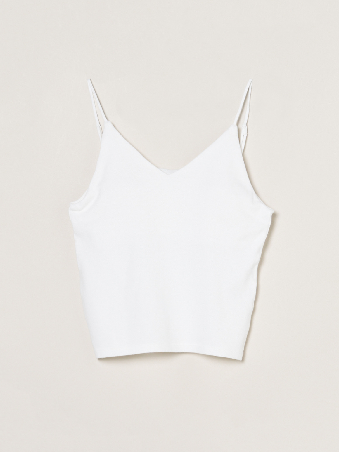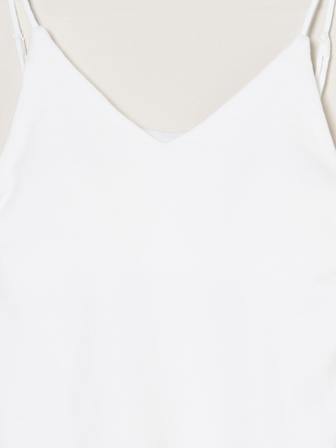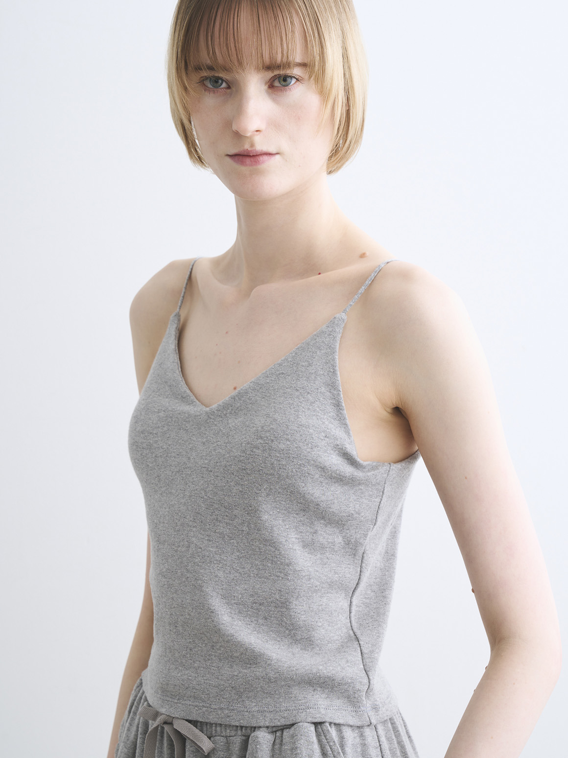 アンダーバストのゴムが直接肌に当たらないよう、身生地でくるんだ設計のブラトップキャミソールです。
