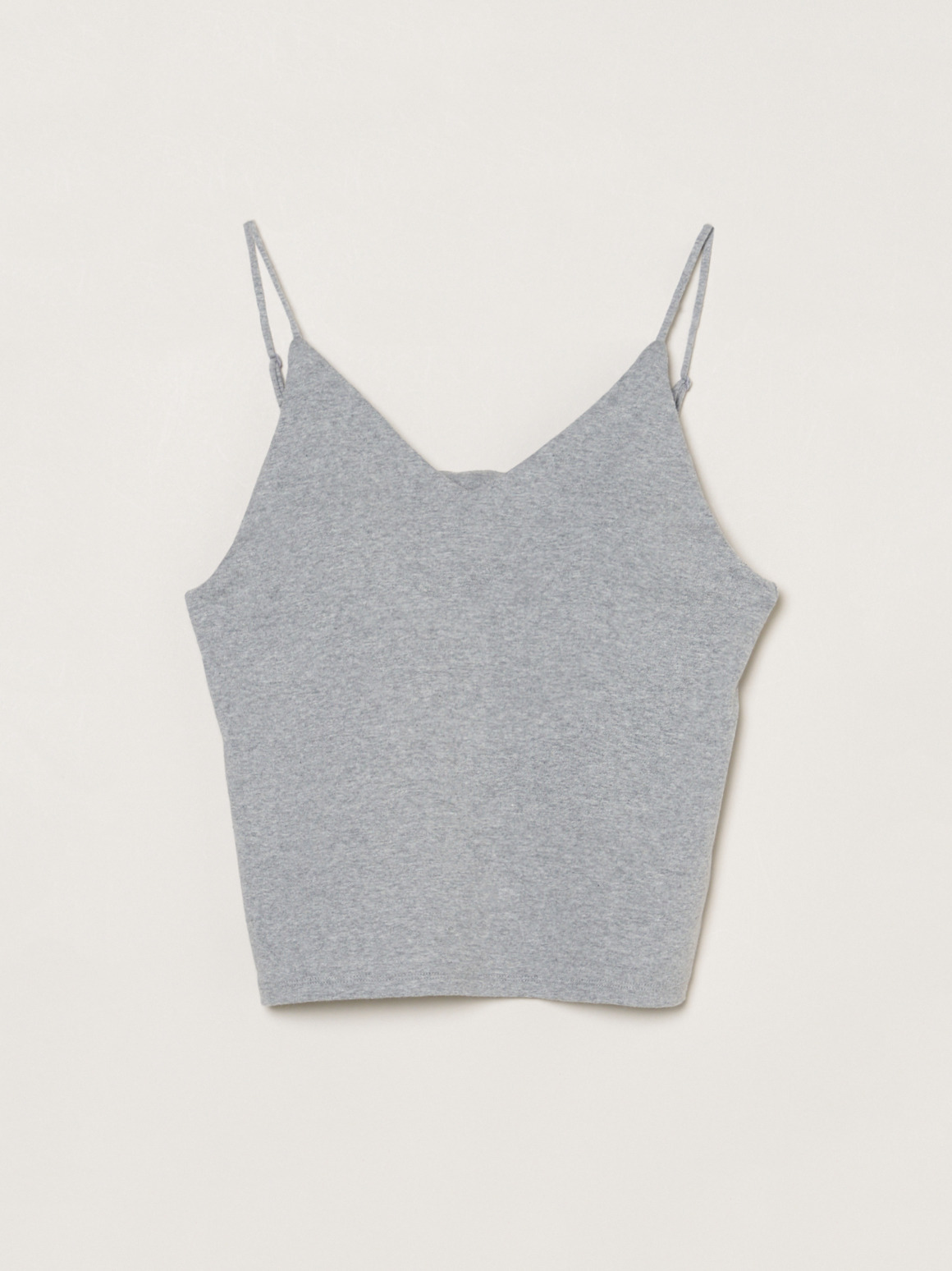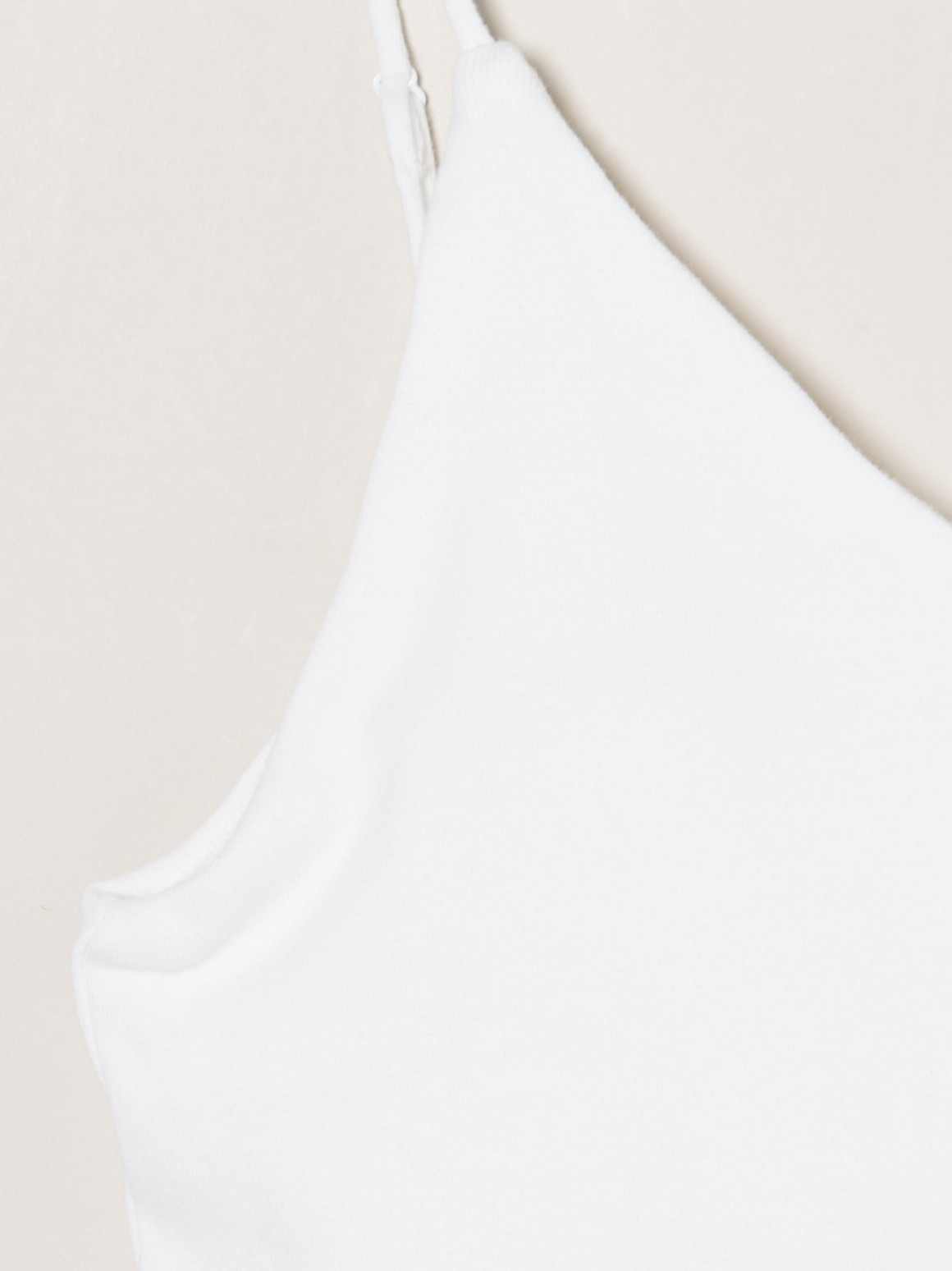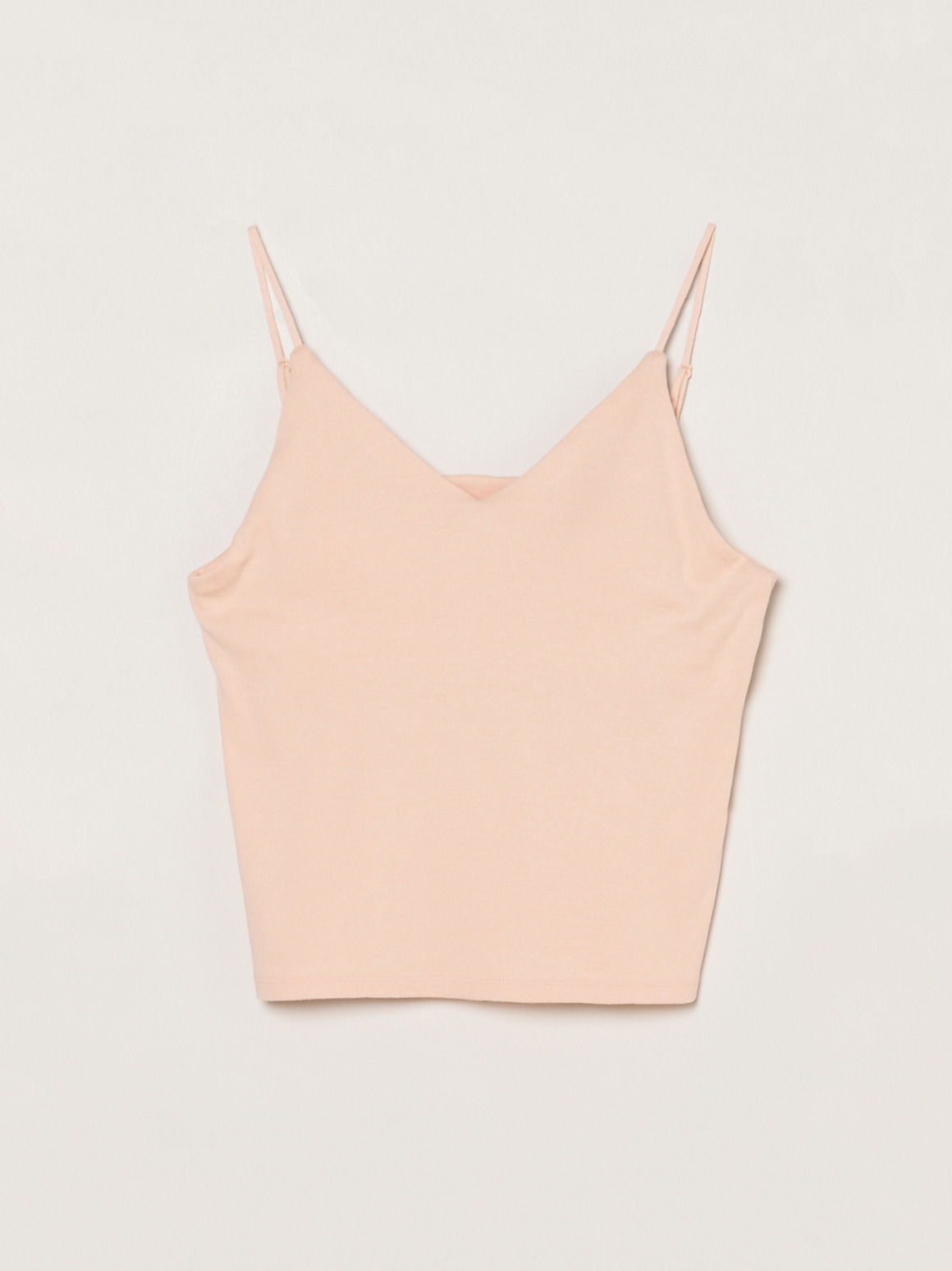 アンダーバストのゴムが直接肌に当たらないよう、身生地でくるんだ設計のブラトップキャミソールです。