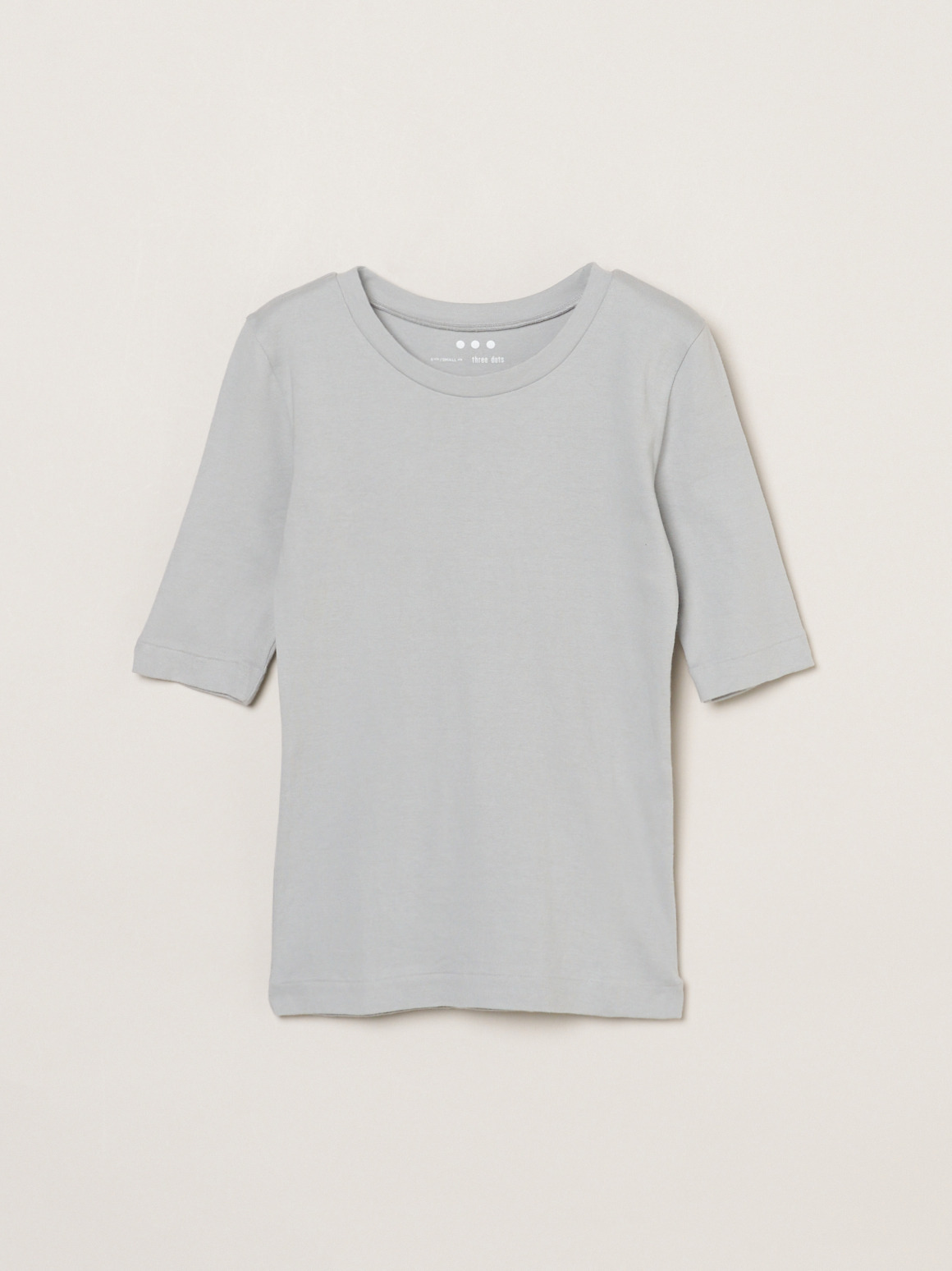 ベーシックに着られるコットンTシャツ。肘に届く5分袖カットソーです。 インナーとして活躍するのはもちろん、やや太目の襟なので1枚でもきちんと見えるのが特徴です。 quality:綿100% country:日本