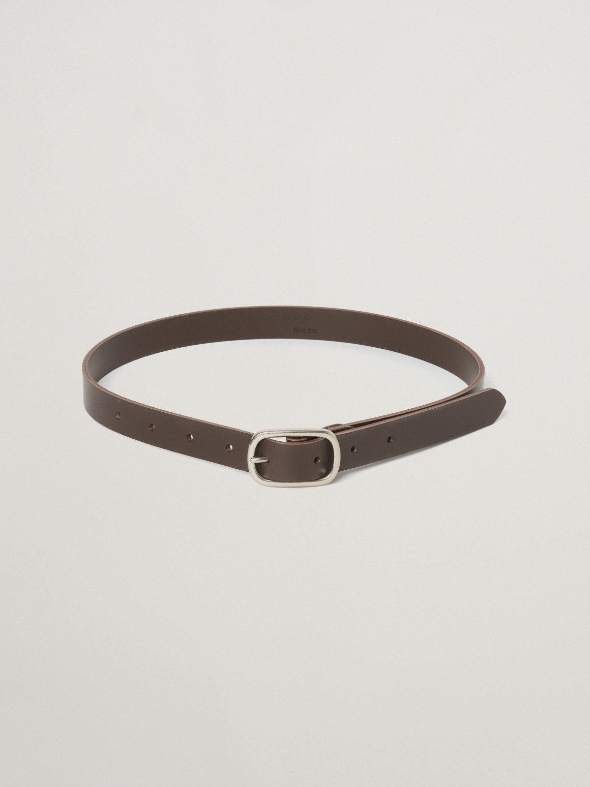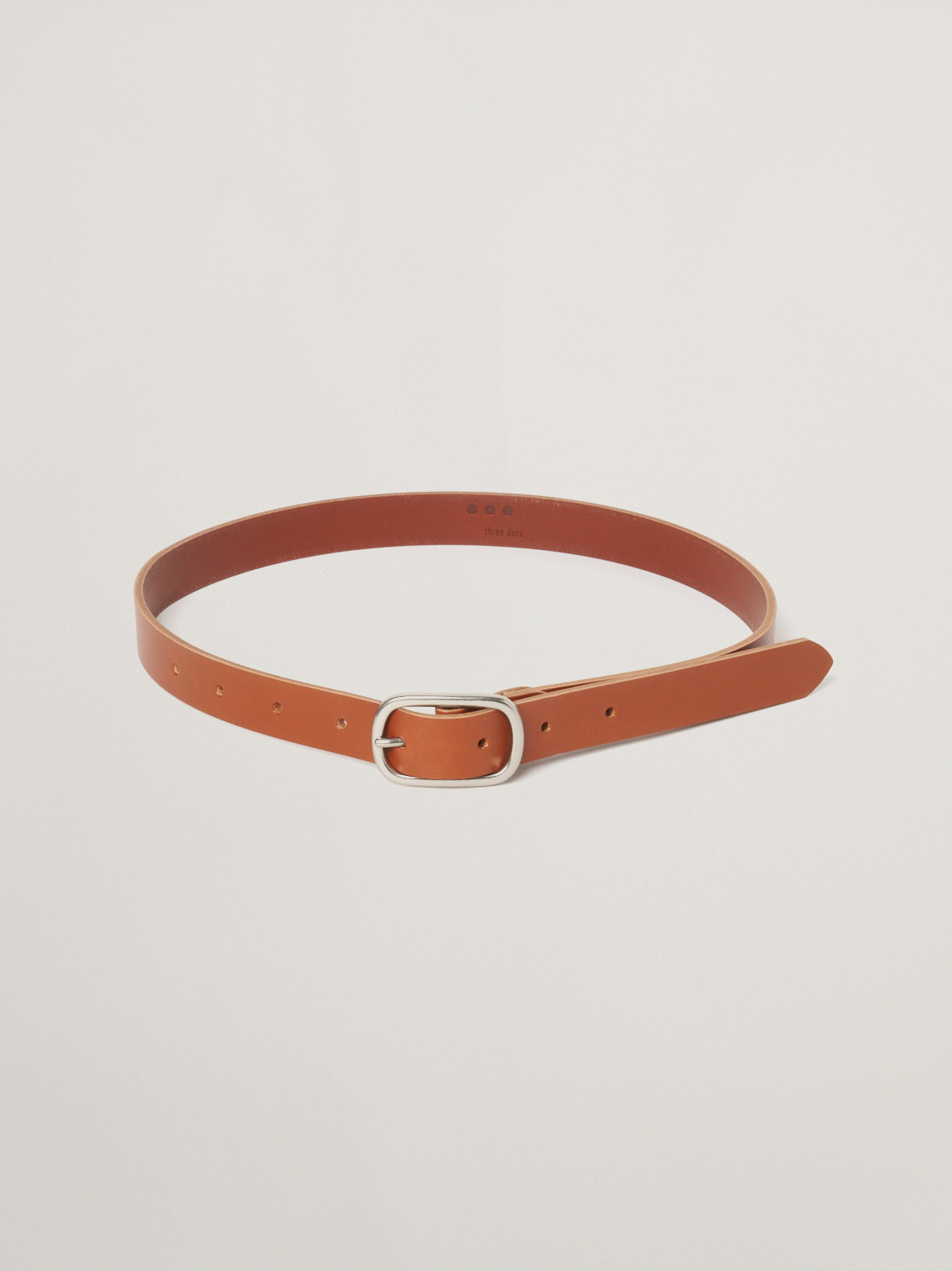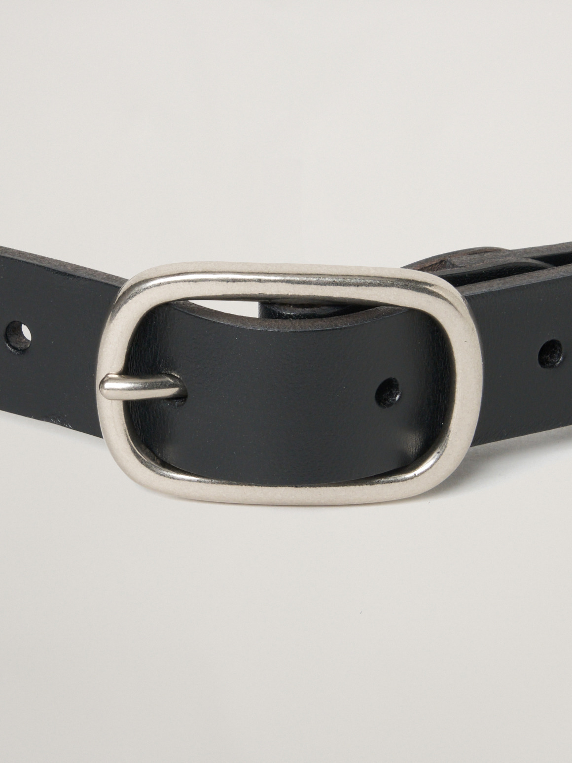 使うほどに馴染み、こなれていく革の魅力をお楽しみいただける革ベルト。太すぎず、細すぎない、女性のスタイリングに合わせやすいナローデザイン。マットな金具は癖が無く、アクセサリー感覚でポイントになりながらも強調しすぎないほどよいバランスで着用できます。ウエストの調整だけでなく、1点投入でぐっと雰囲気が出るため、Tシャツとパンツのシンプルコーディネートの際におすすめ。ホール数が多いので、ウエストマークしてボトムスをぎゅっと引き上げたいたいときにも、緩めに締めて腰で履くスタイルにも対応。