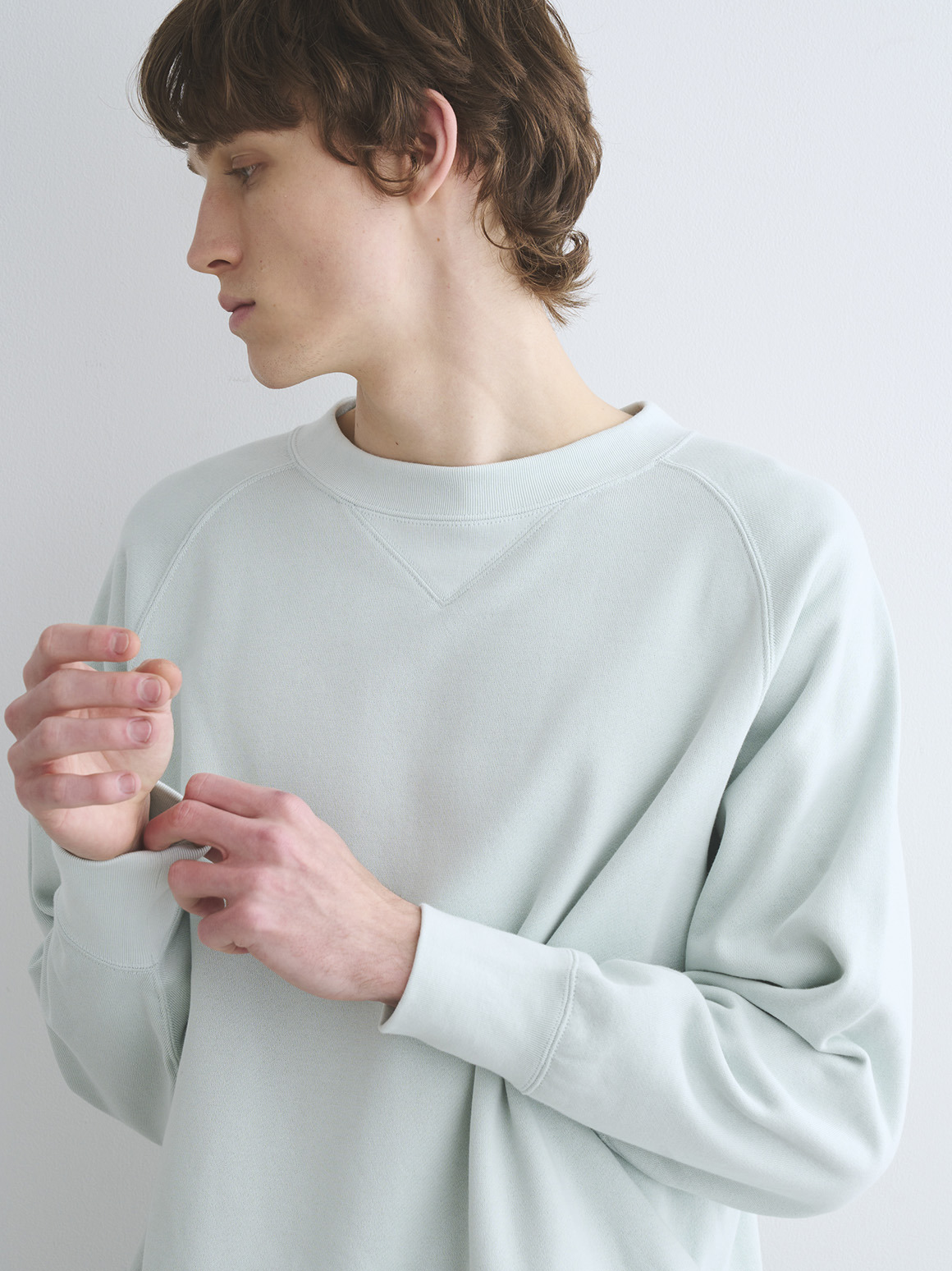 リブ巾を広く、ガゼットを大き目にした50年代のヴィンテージスウェットをイメージ。袖の仕様はフリーダムスリーブで、自然な立体感をもたらし美しいラインを演出します。