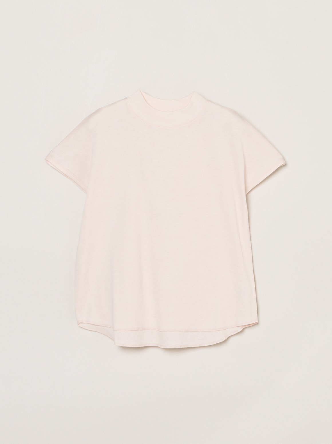 非常に薄い2枚のガーゼを2枚接結した柔らかな素材です。モックネックなので柔らかな生地でもきちんとした表情に。