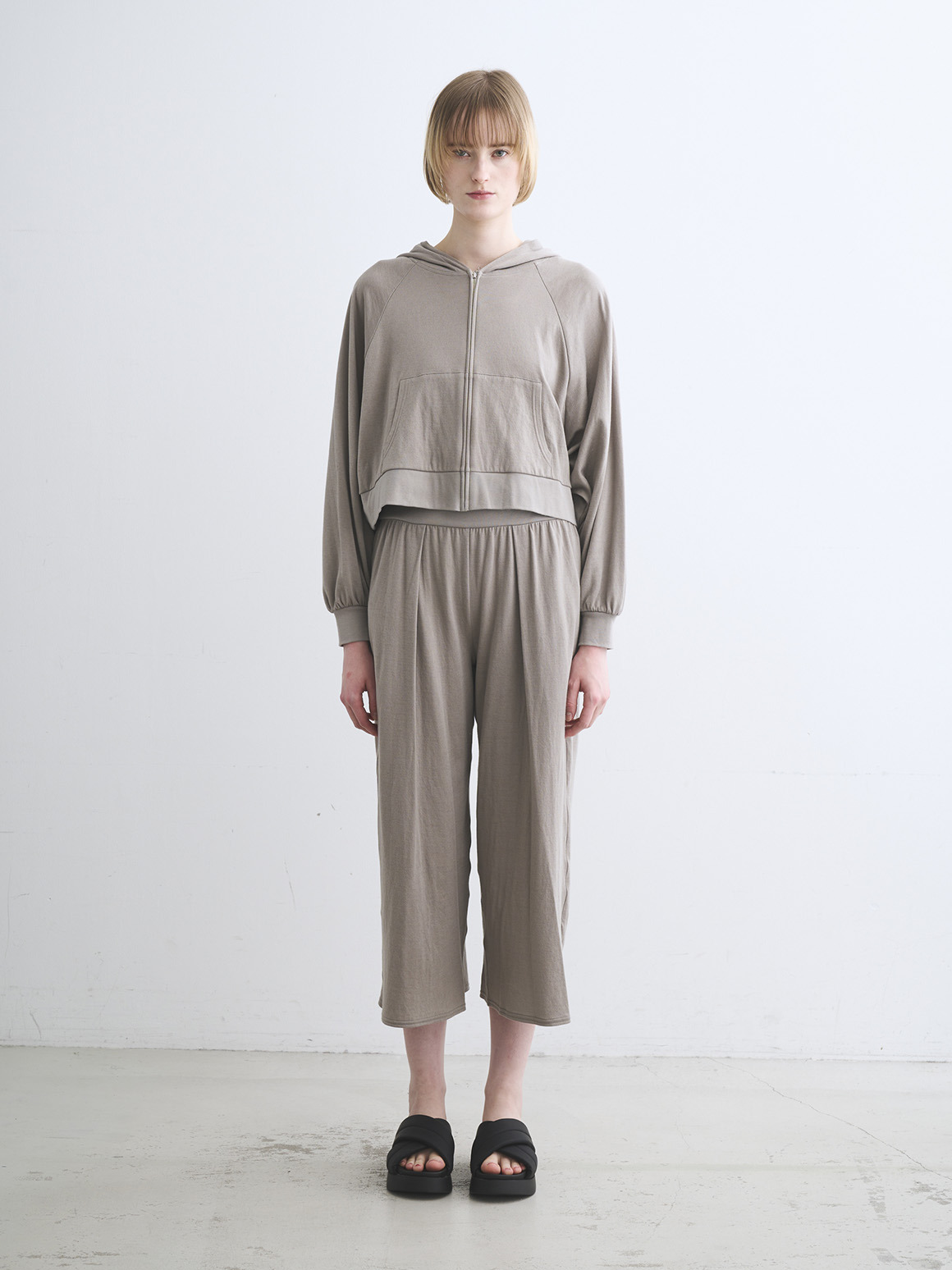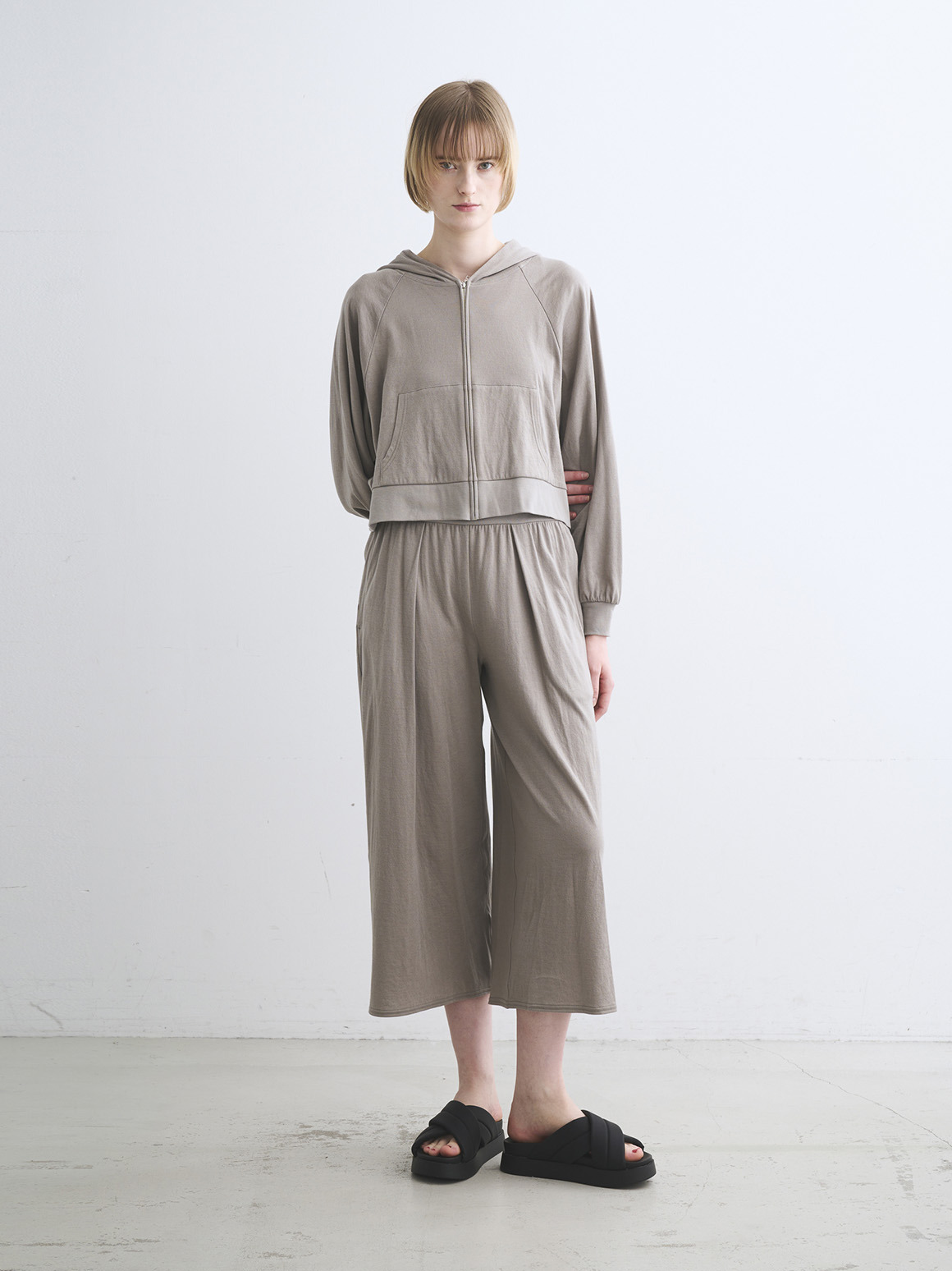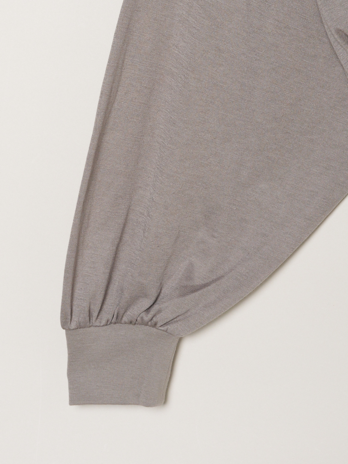 非常に薄い2枚のガーゼを2枚接結した柔らかな素材です。接結仕立てなのでホワイト以外は透け感も気にならずに着用可能。やや短めの着丈でドレスやボリュームの出るボトムス、ワイドパンツとも好相性。