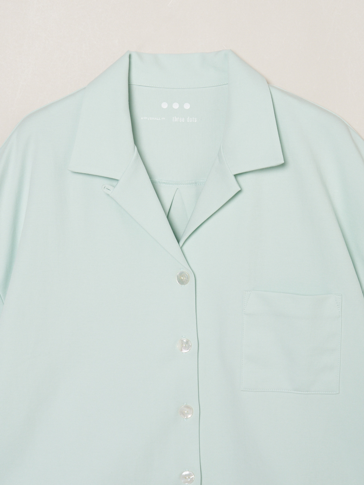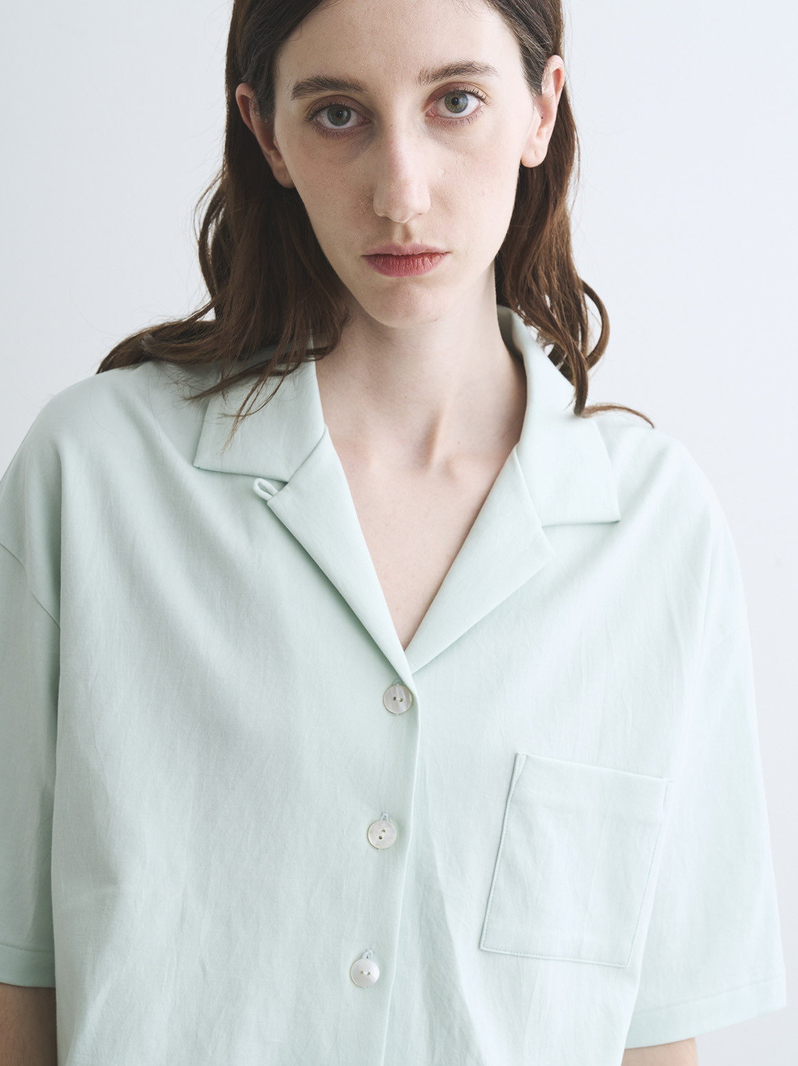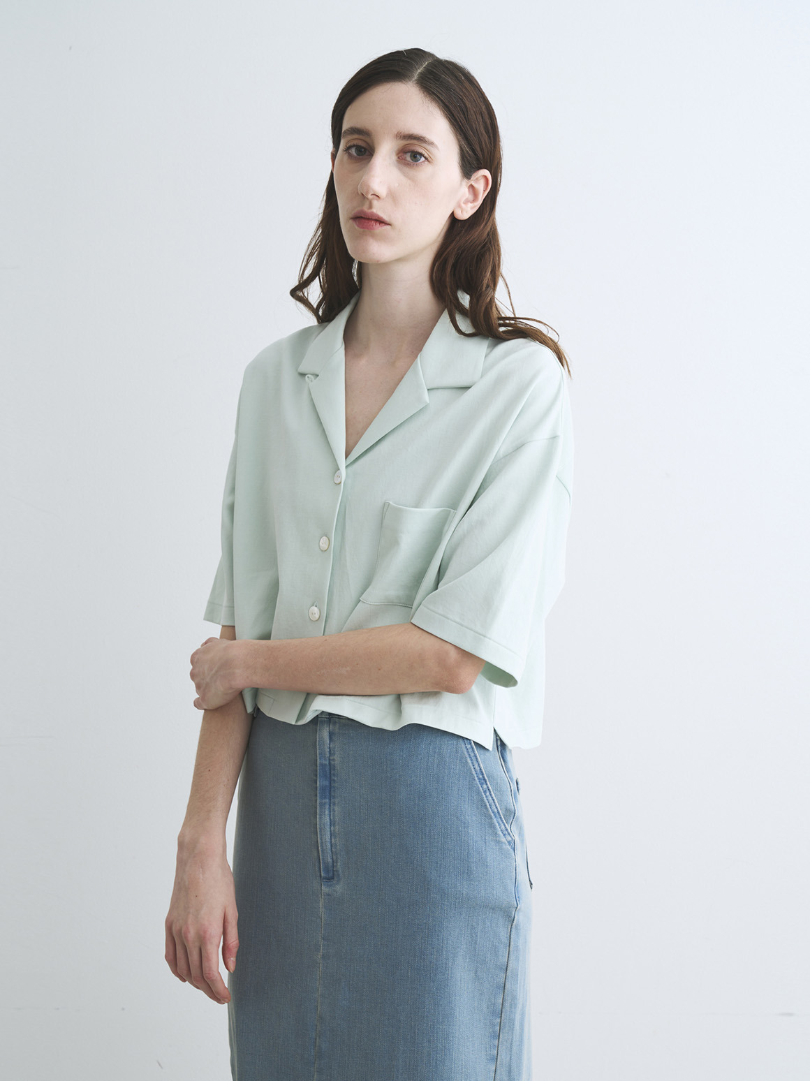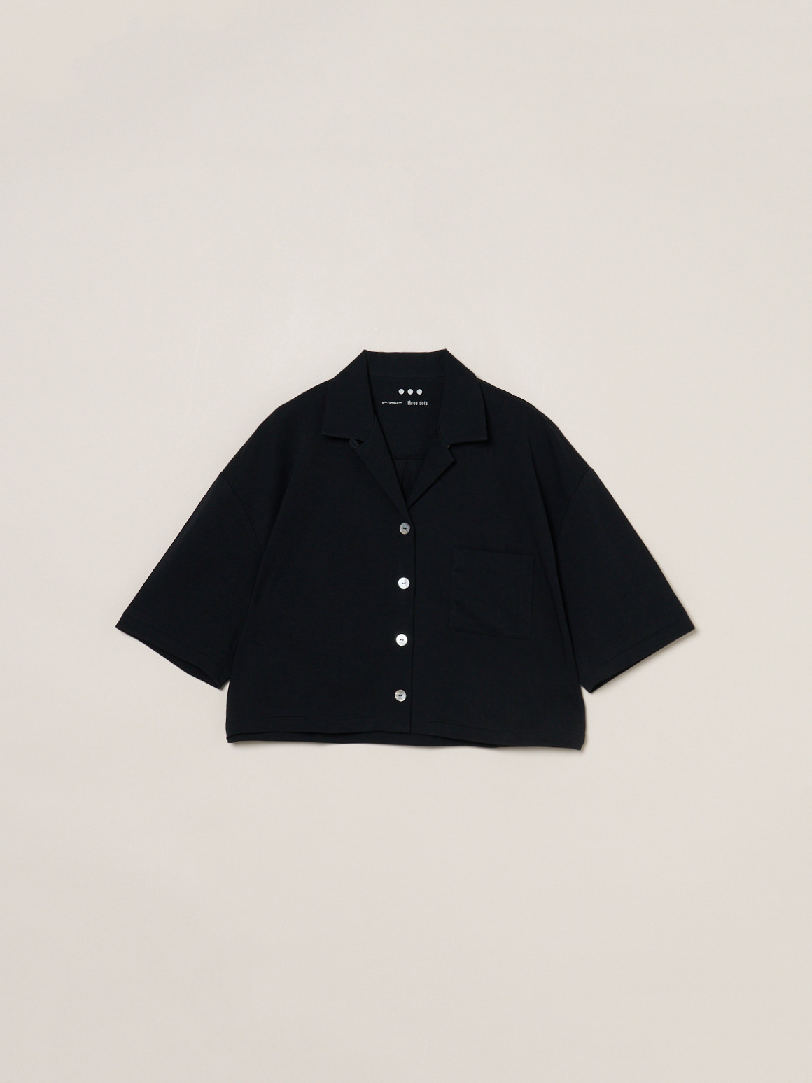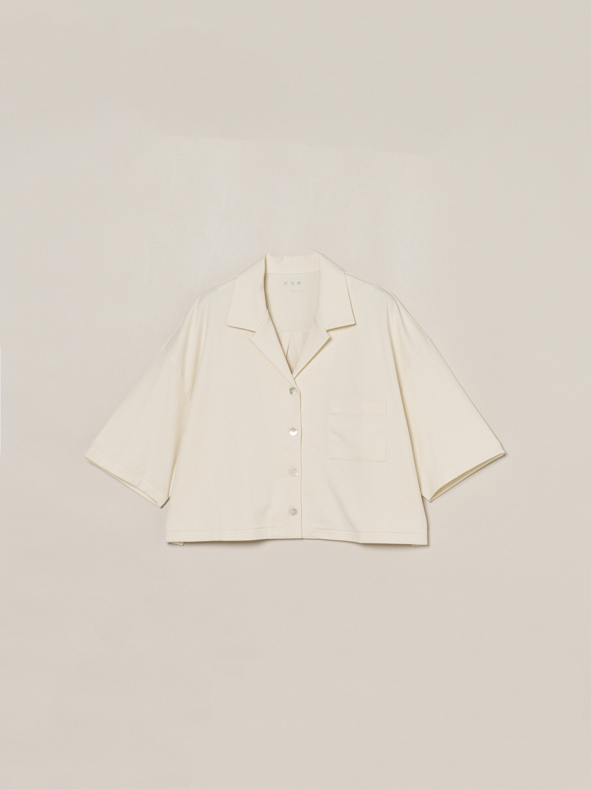 超長綿のスーピマコットンを使用したハイクラスなジャージー素材を使用。滑らかな肌触りに、ダンボールよりもしなやかで、ボディラインに沿いすぎないややしっかりした肉感。透けも気になりにくく、まさに春夏に欲しかったバランスの素材です。ボクシーな形のオープンシャツは計算されたデザインで1枚でも主役級。パンツとベルトを合わせればこなれた着こなしが完成します。ポケットやステッチのディテールにこだわりを感じる一枚。フロントを開けて半袖の羽織としても活躍します。