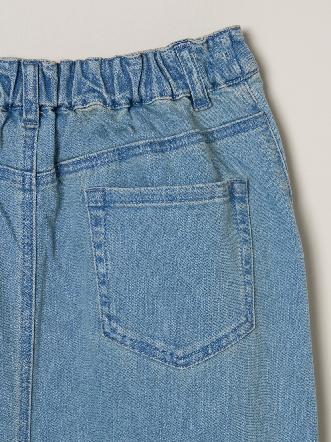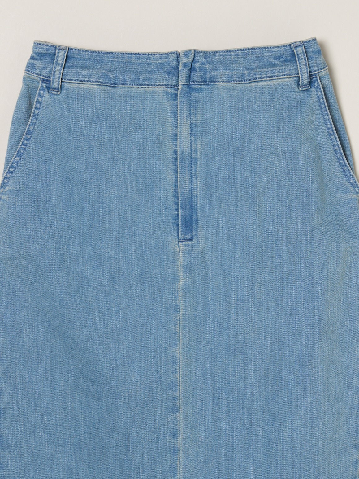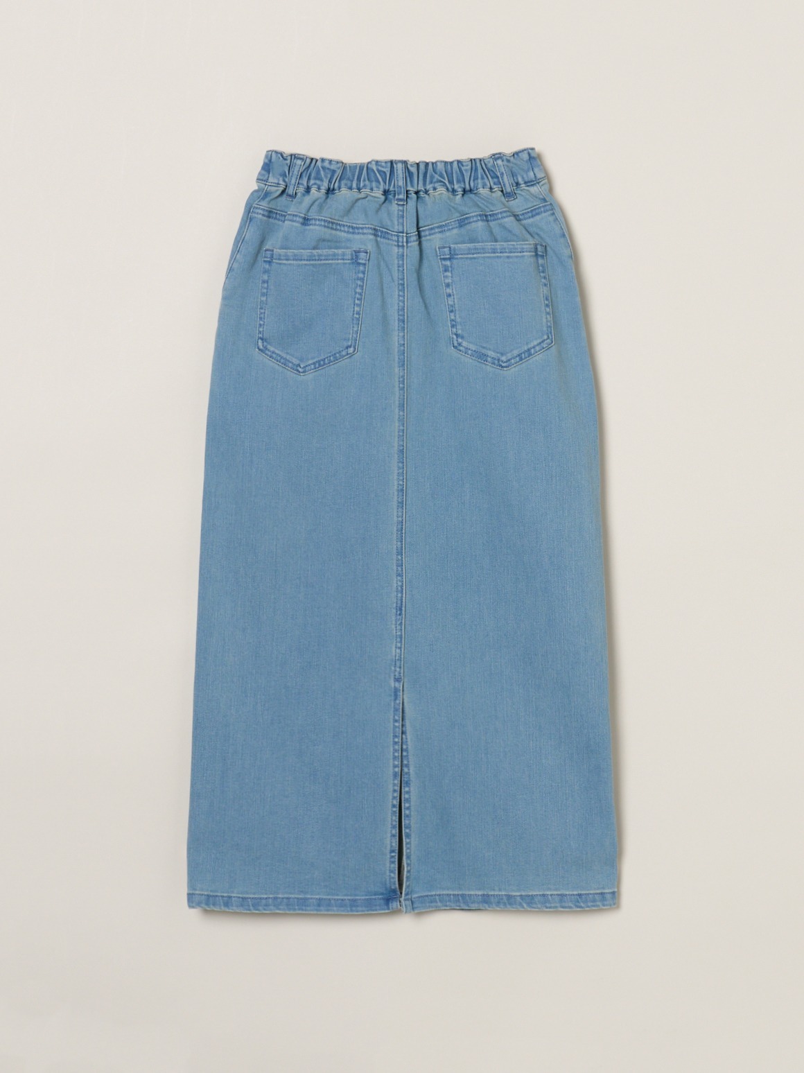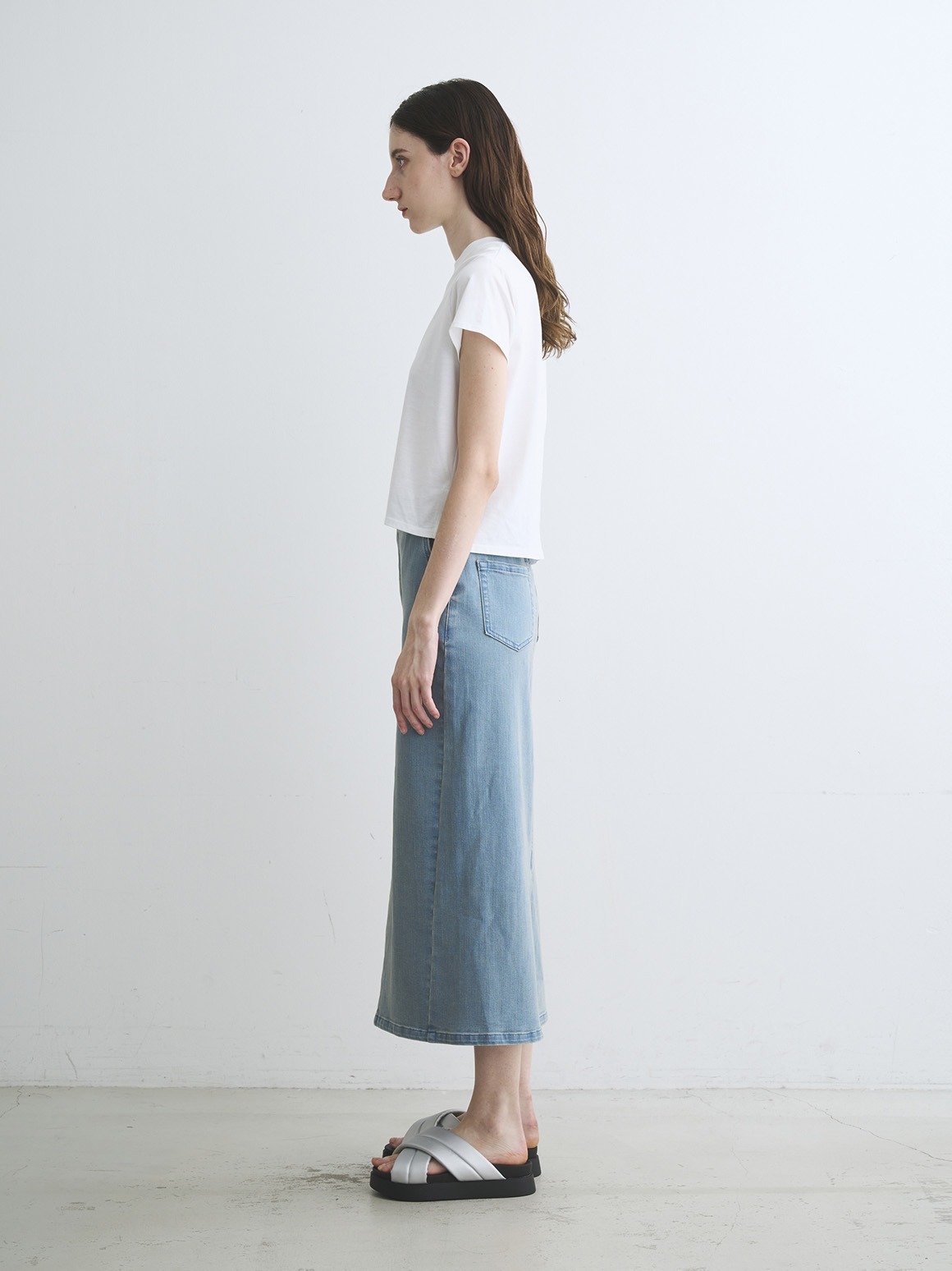 ストレッチデニムを使用したストレートシルエットのペンシルスカート。