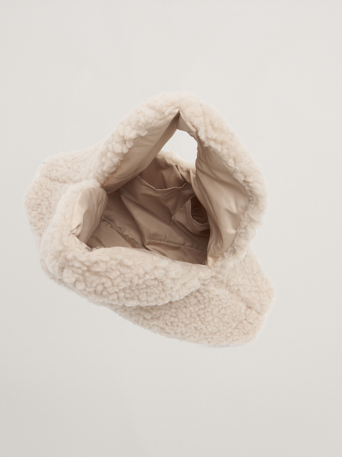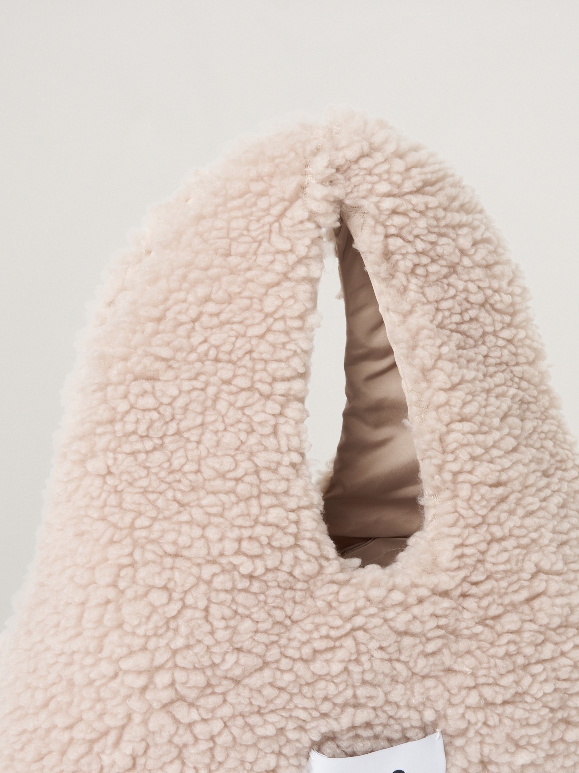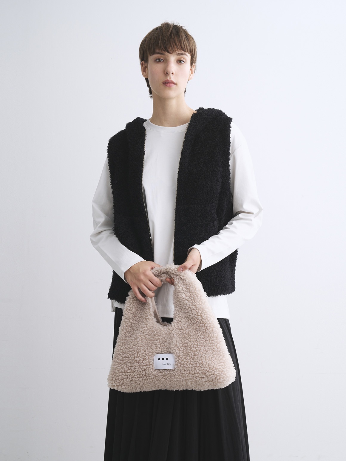 ECOPEL社のボア素材を使用したトライアングルバッグ。キャッチーな形にふわふわとした質感は持つだけで秋冬ムードが盛り上がりそう。ホリデーシーズンのギフトにも最適です。