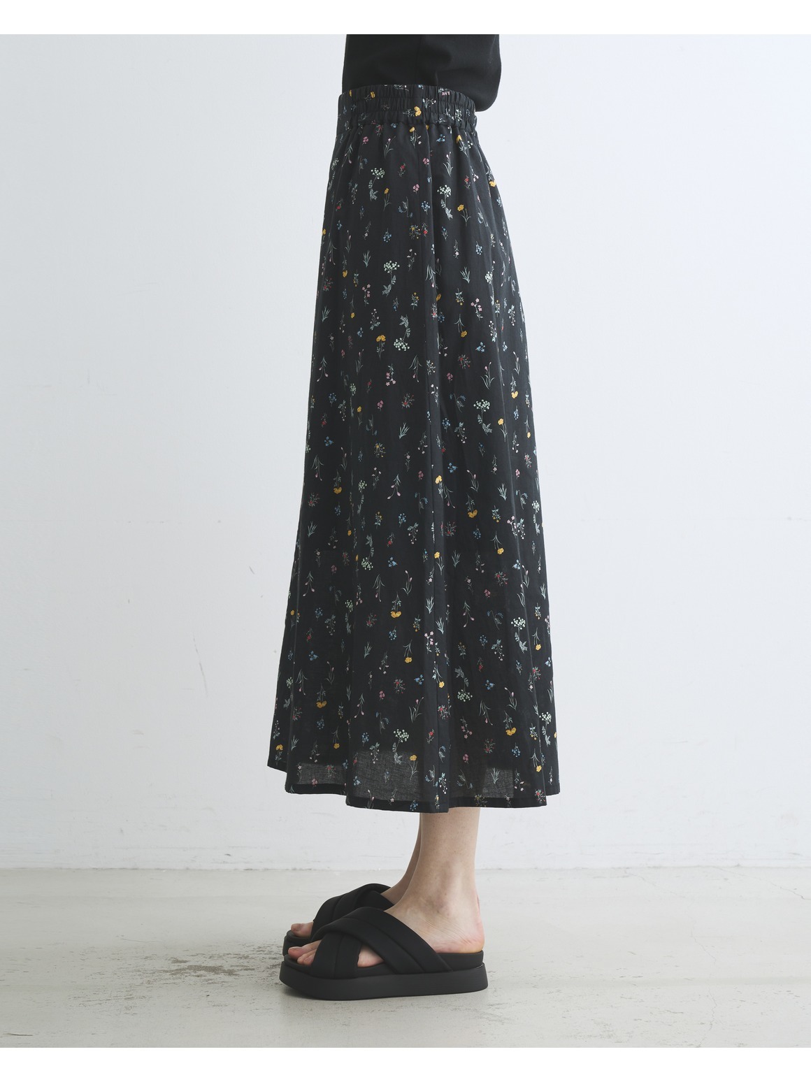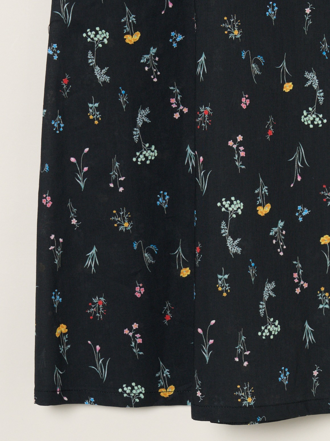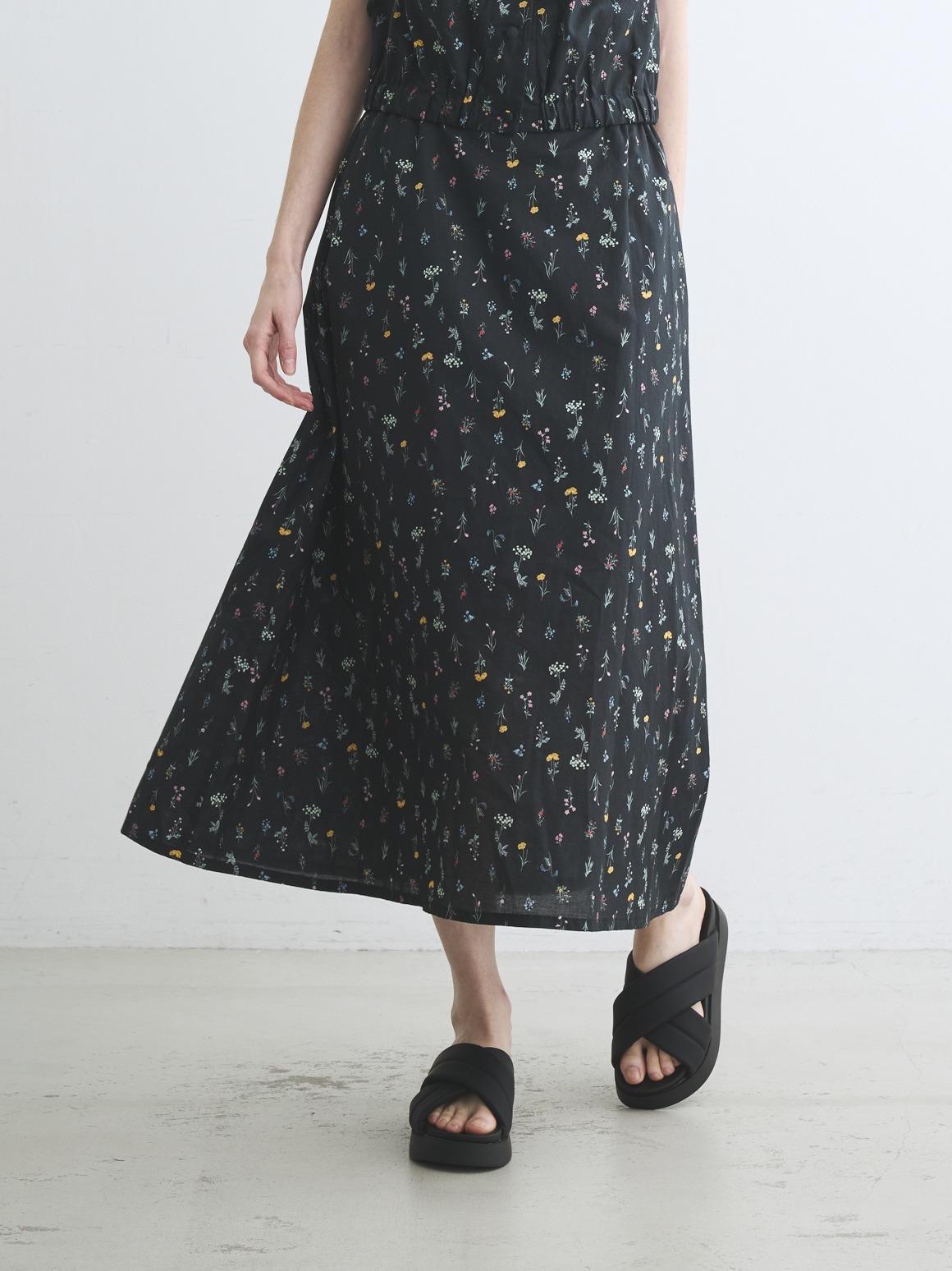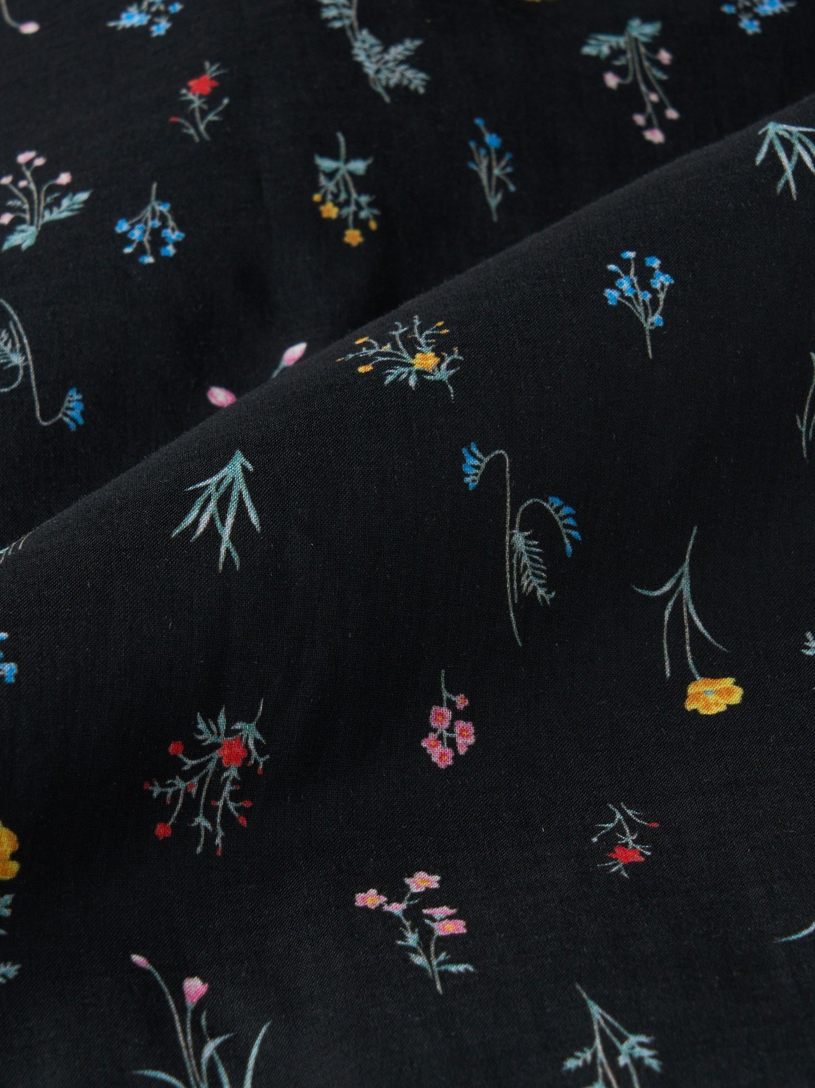 ブラック地に小花をあしらったプリントは、