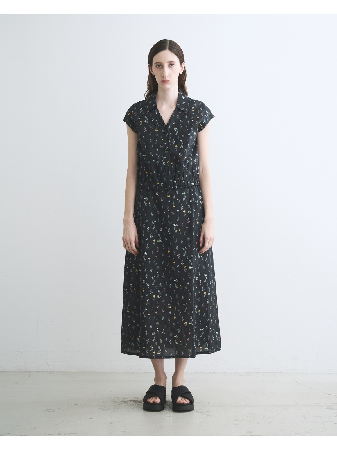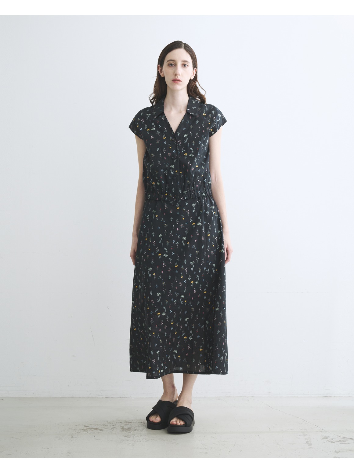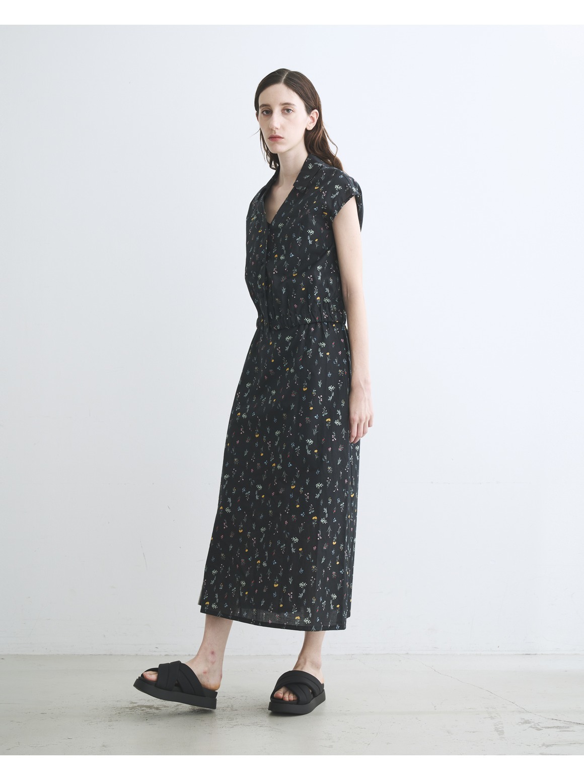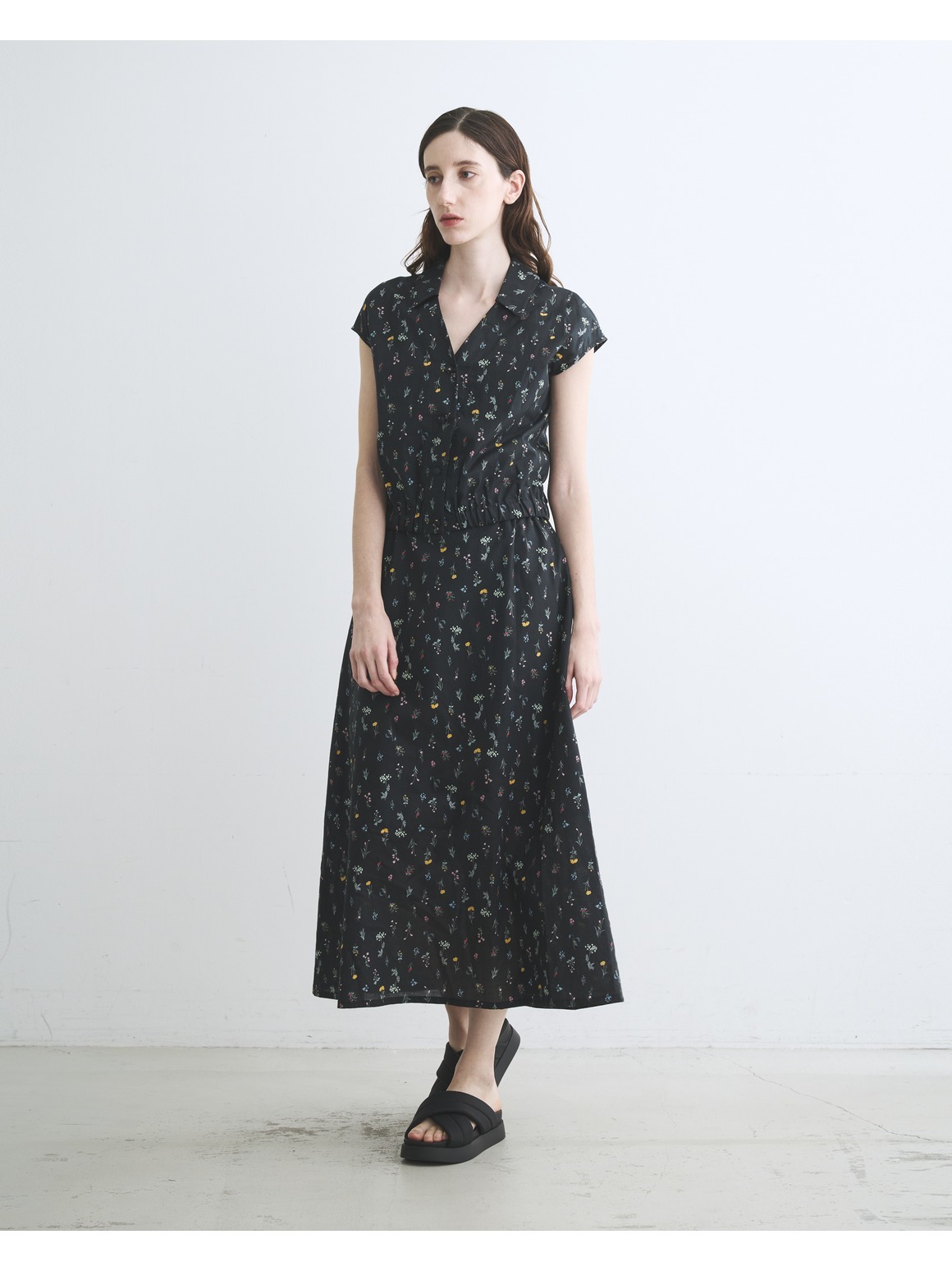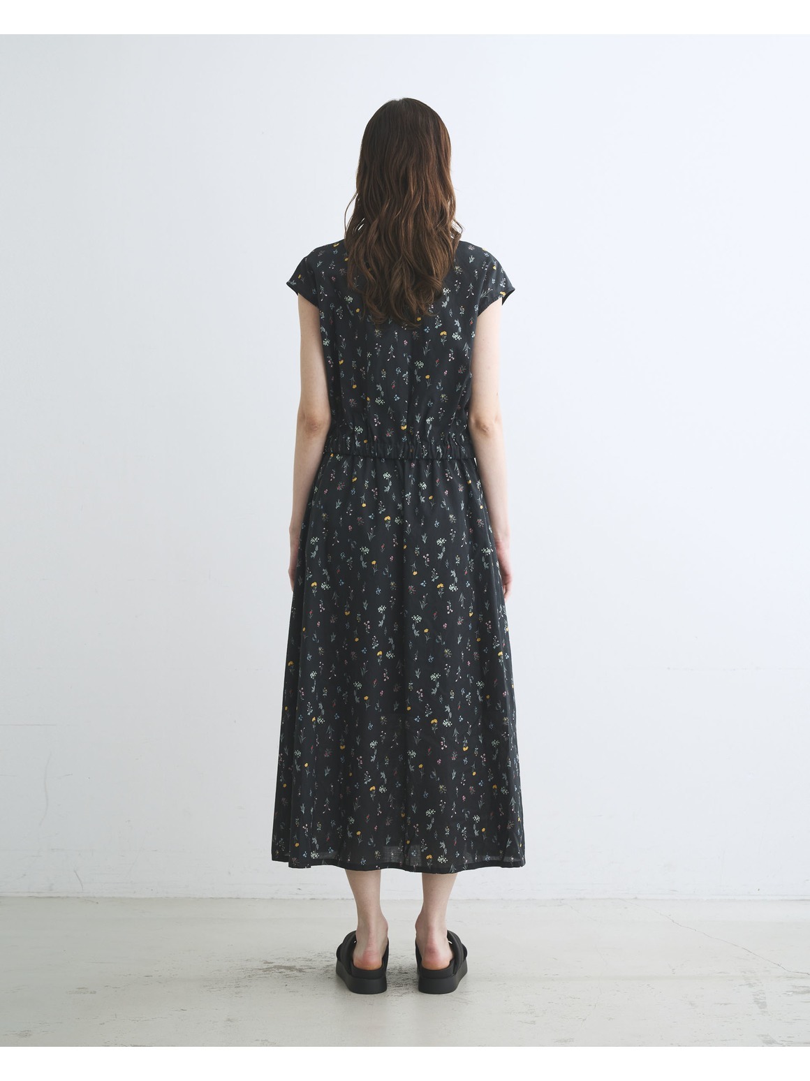 ブラック地に小花をあしらったプリントは、