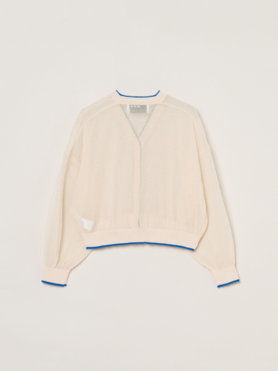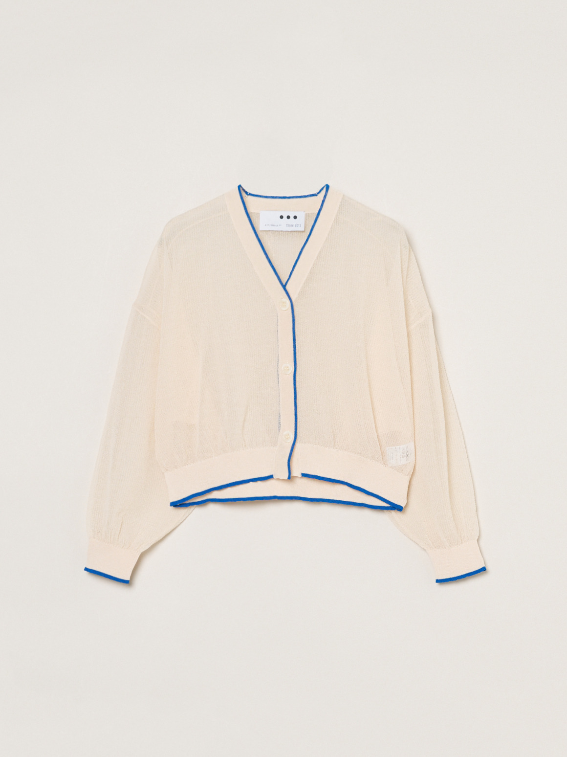 シャリ感のあるニットで仕立てた、表情豊かなカーディガン。