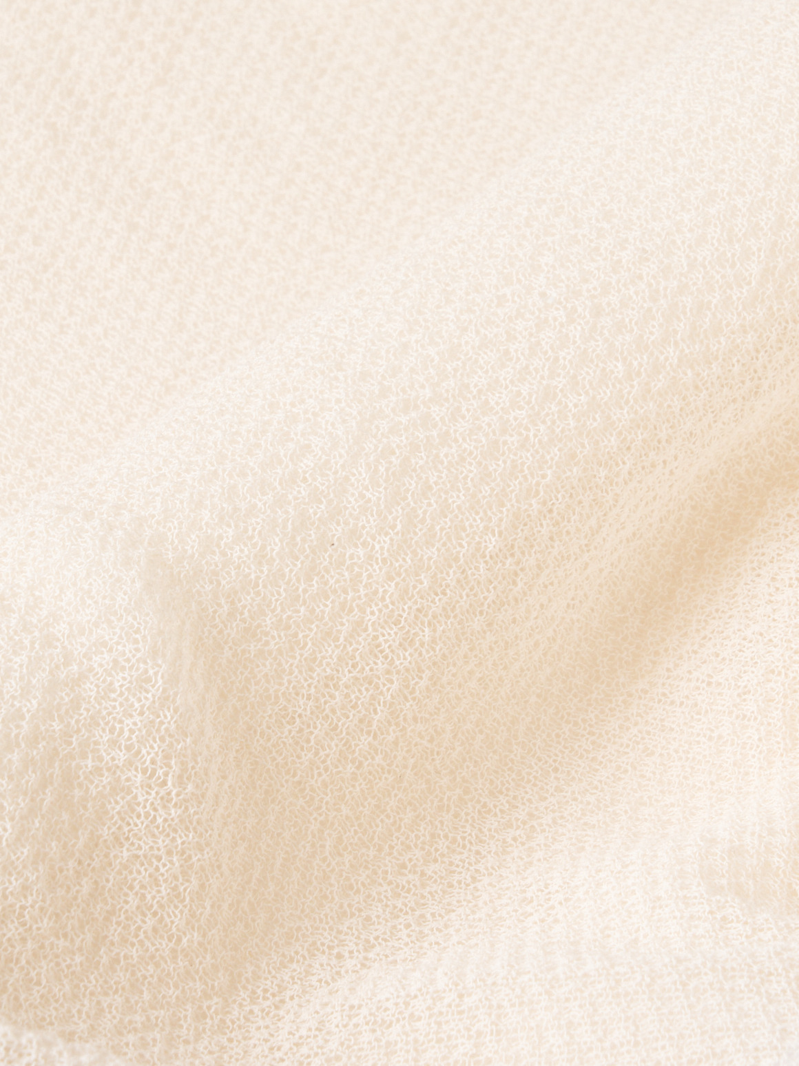 鹿の子編みによる凹凸感が、カジュアルな中にレースのような繊細さを感じさせる一枚です。