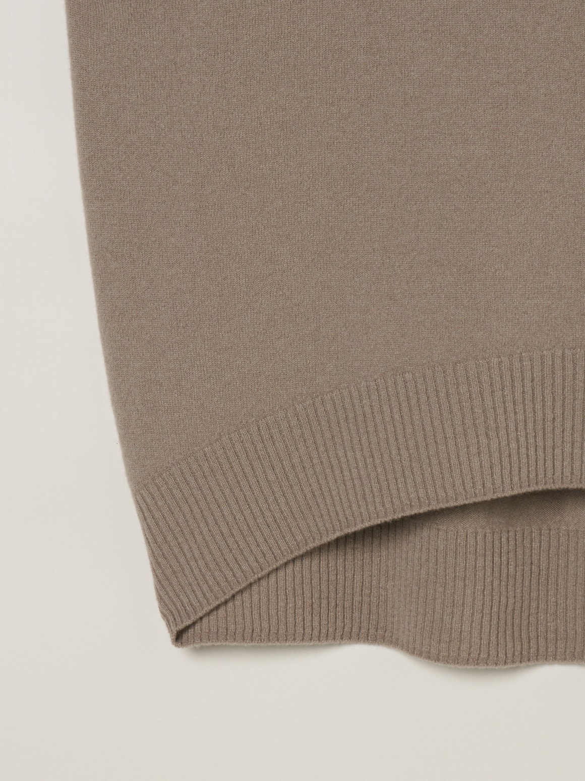 ふんわり軽いカシミヤライクなウールは、チクチクしづらく心地よい着心地です。