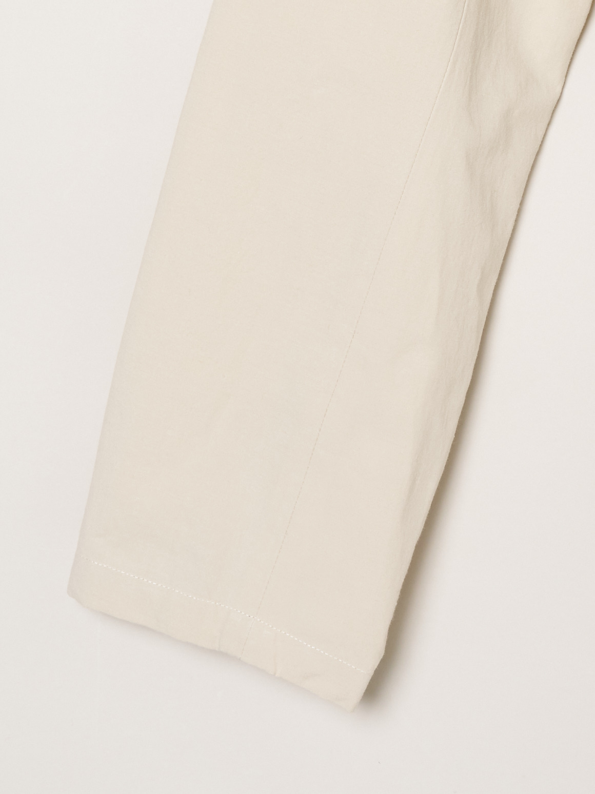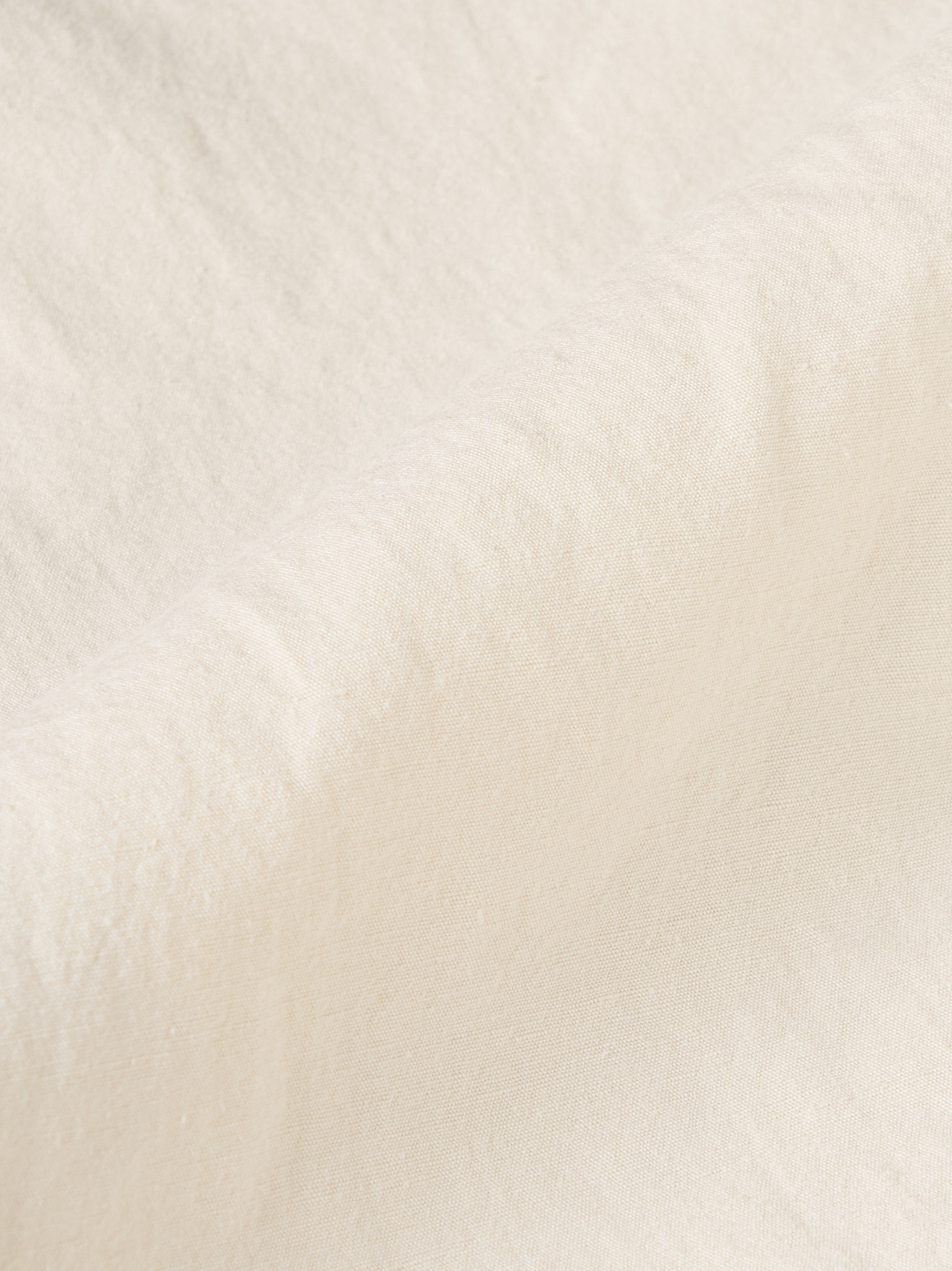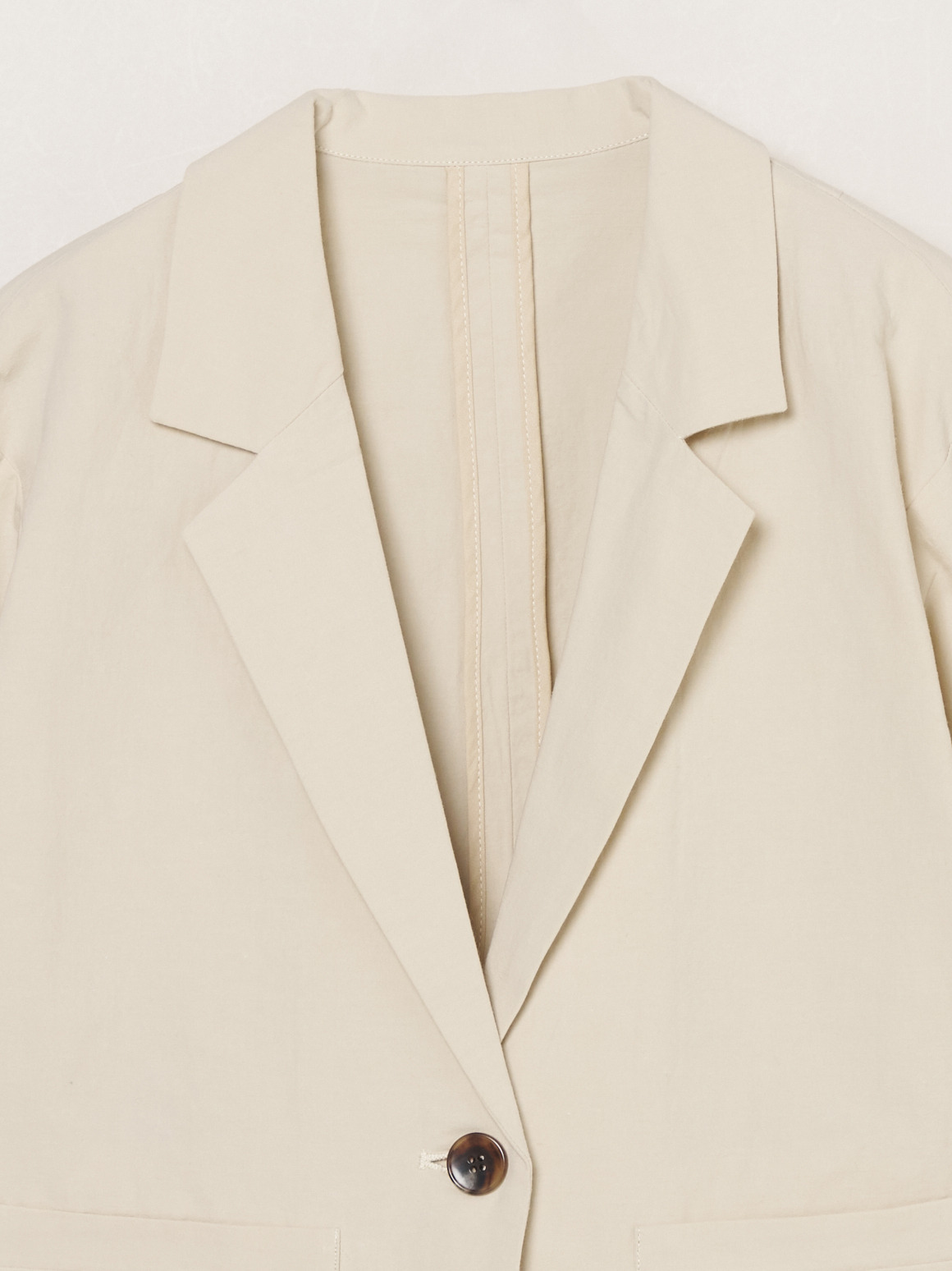 コットンリネンのウェザー生地に細かなシワ加工を施し、表情豊かに仕上げた一着。