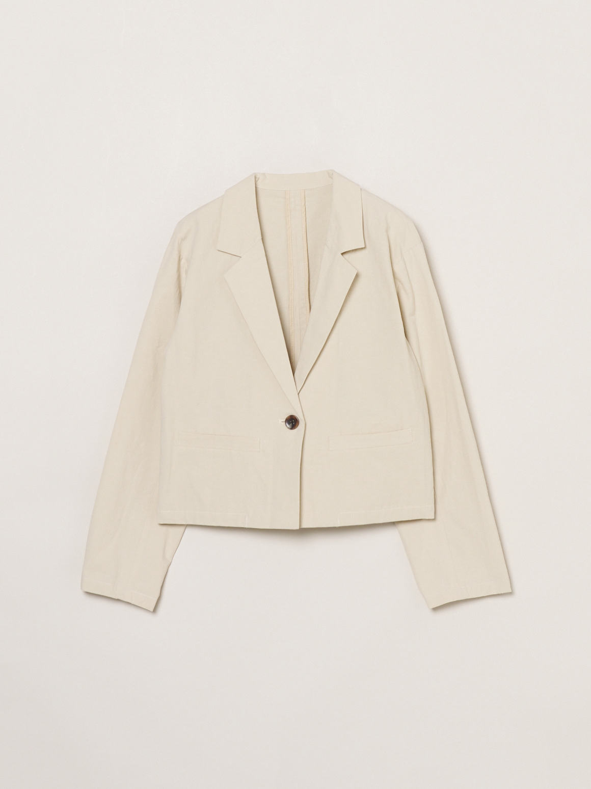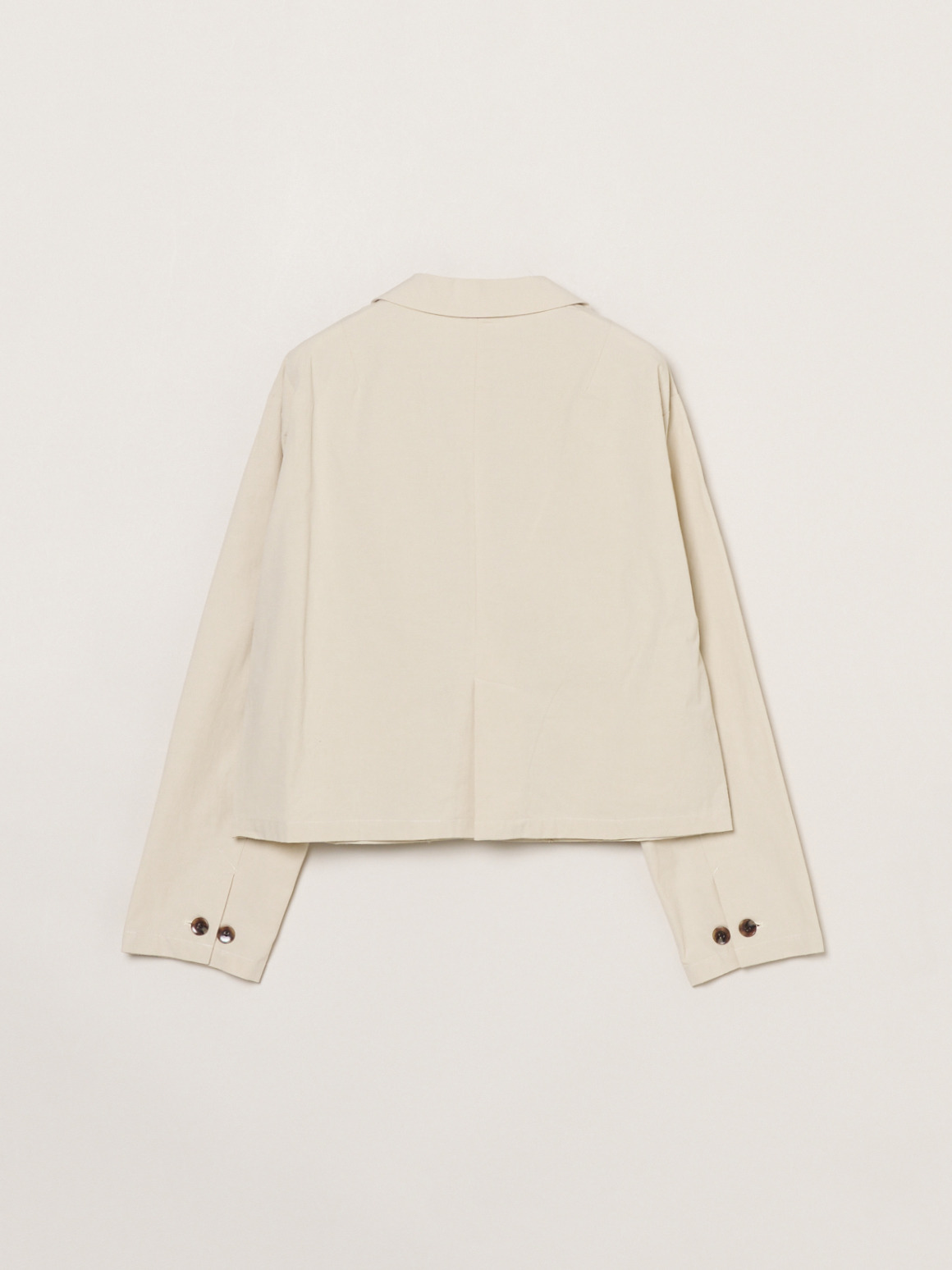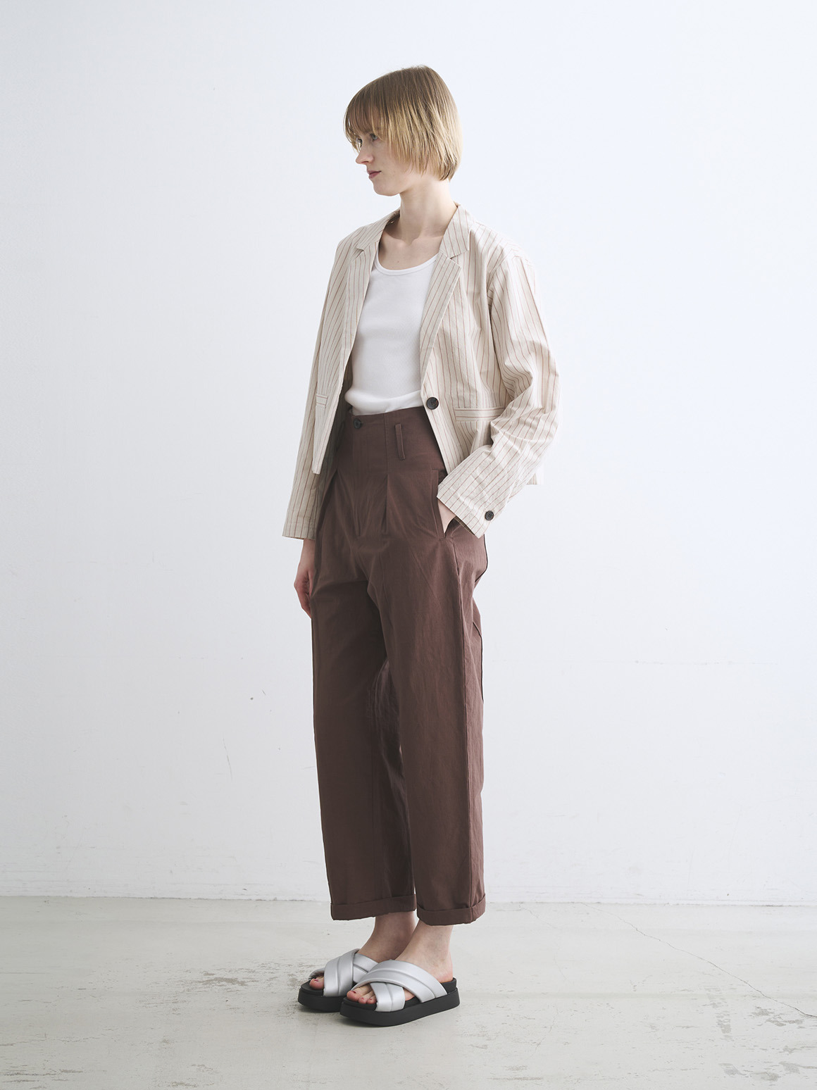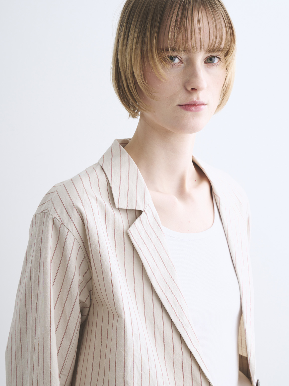 コットンリネンのウェザー生地に細かなシワ加工を施し、表情豊かに仕上げた一着。