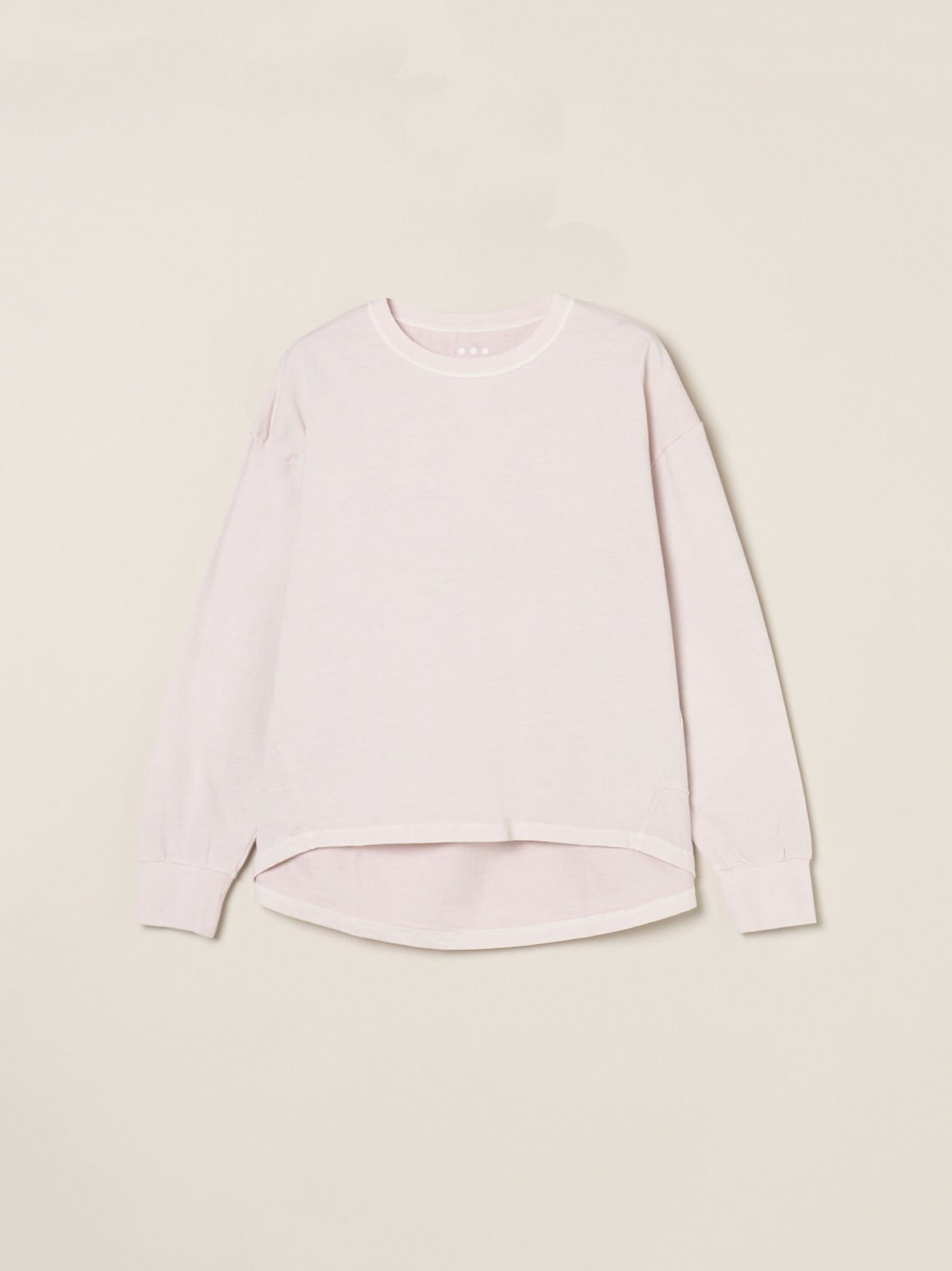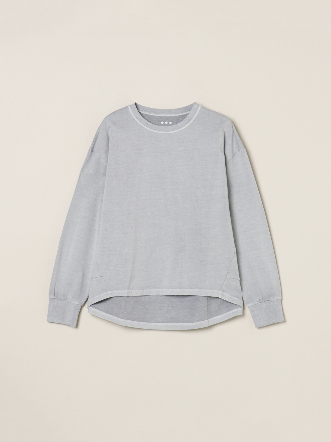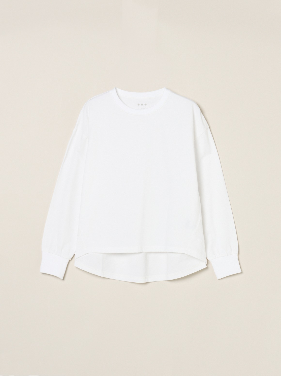 丸みのあるバックスタイルで立体感を持たせたロンTは程よい厚みで、軽やかさと安心感を両立。