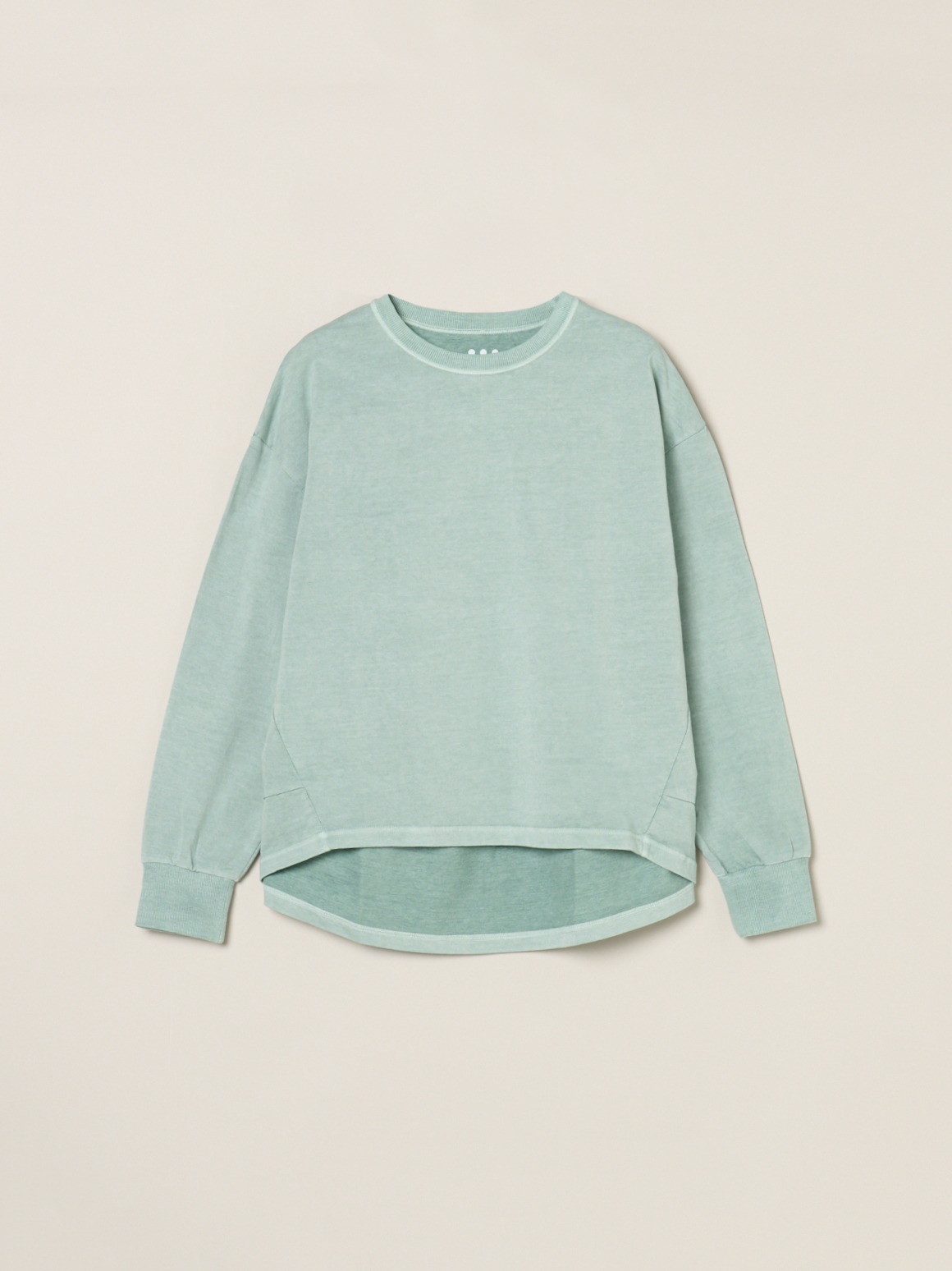 ピグメントダイ加工を施した、ミニ裏毛素材のラグランロンT。