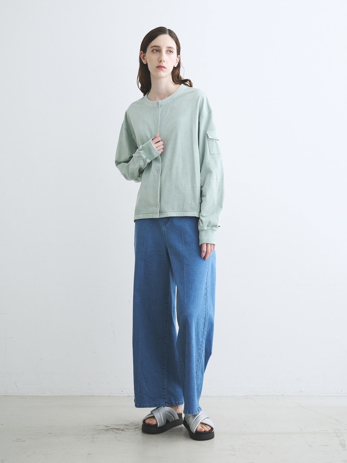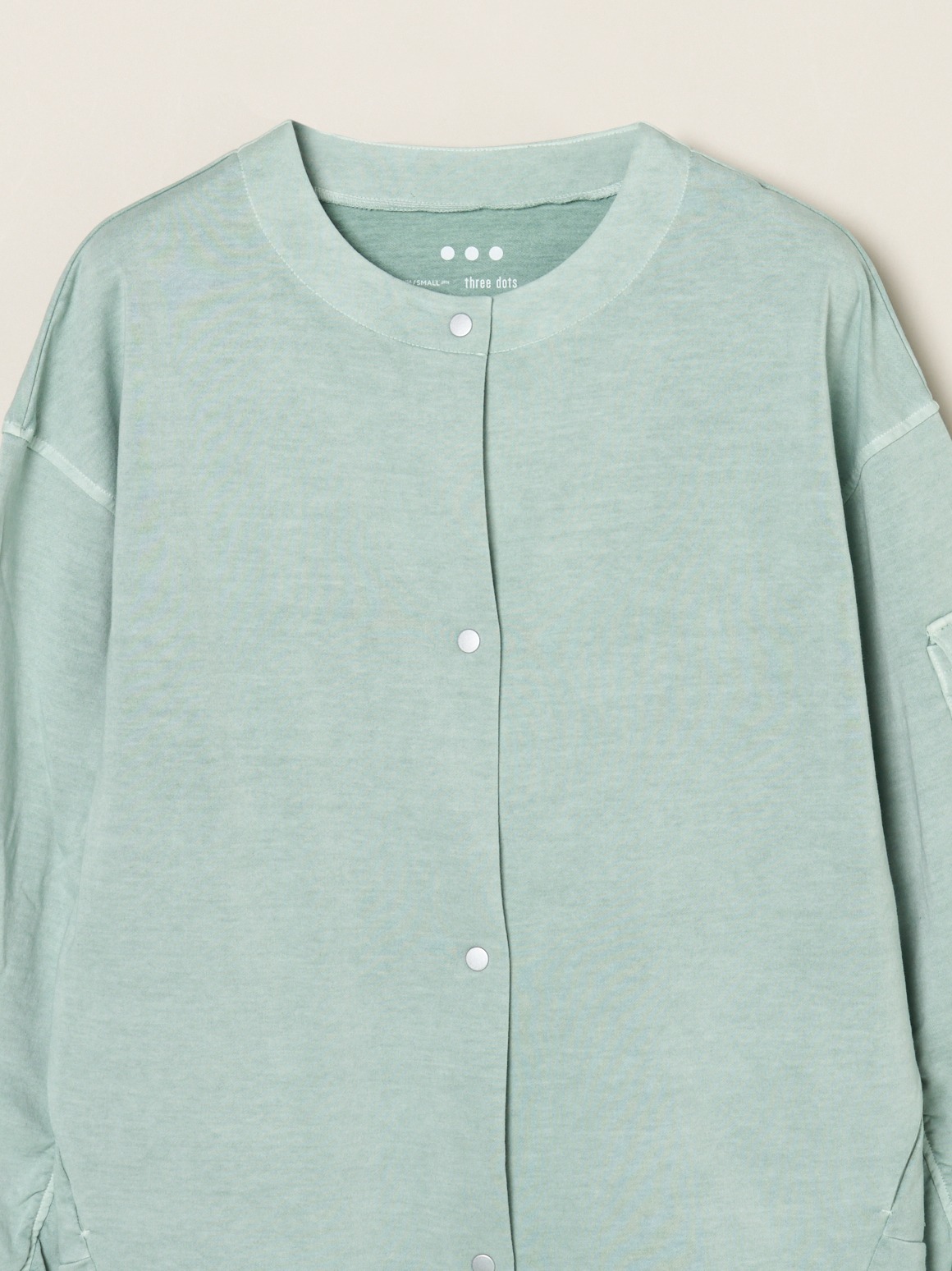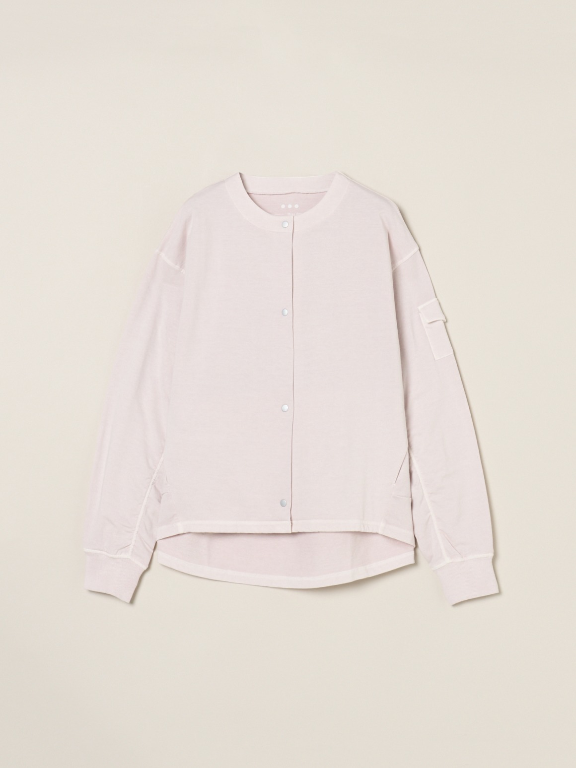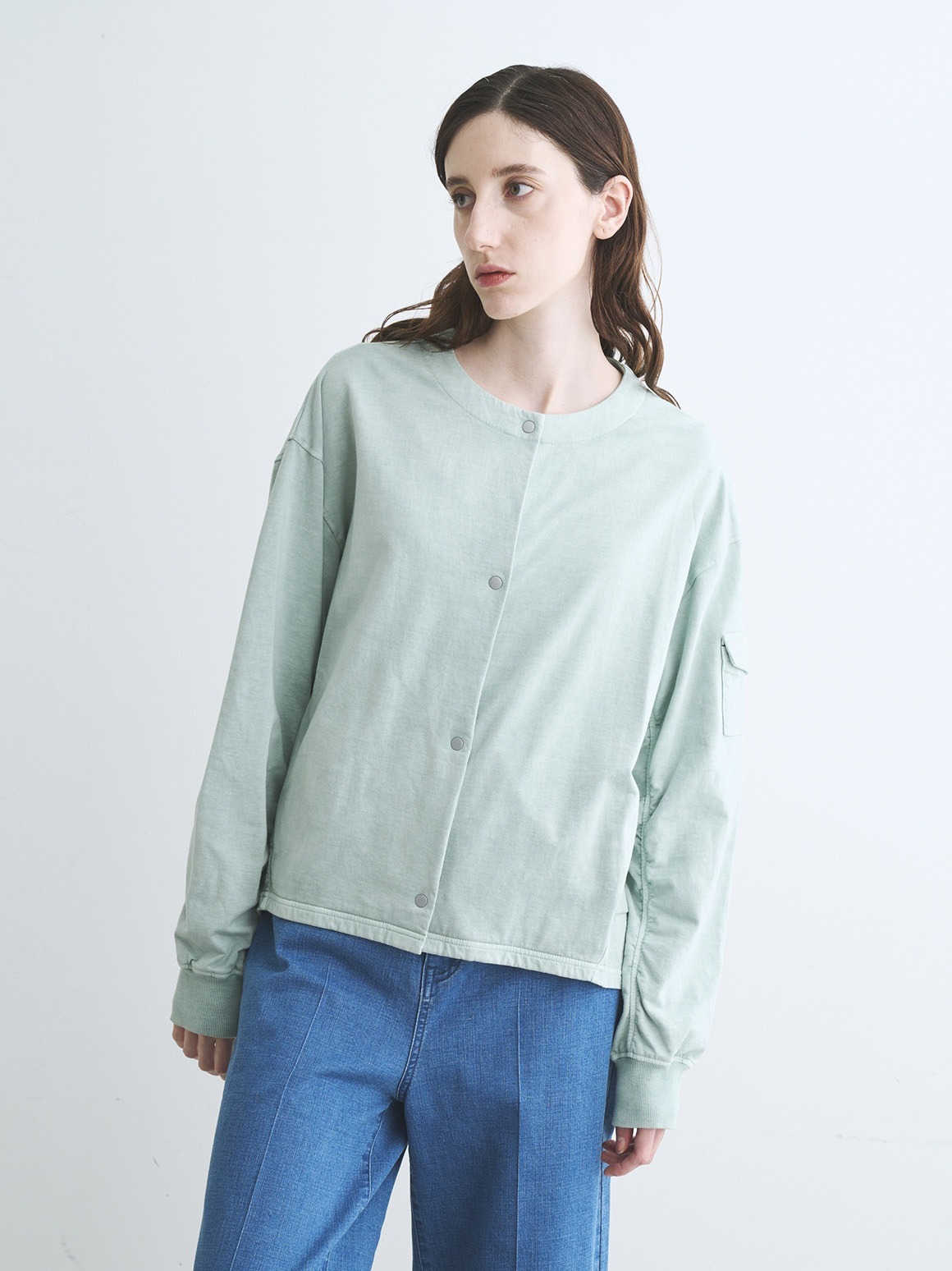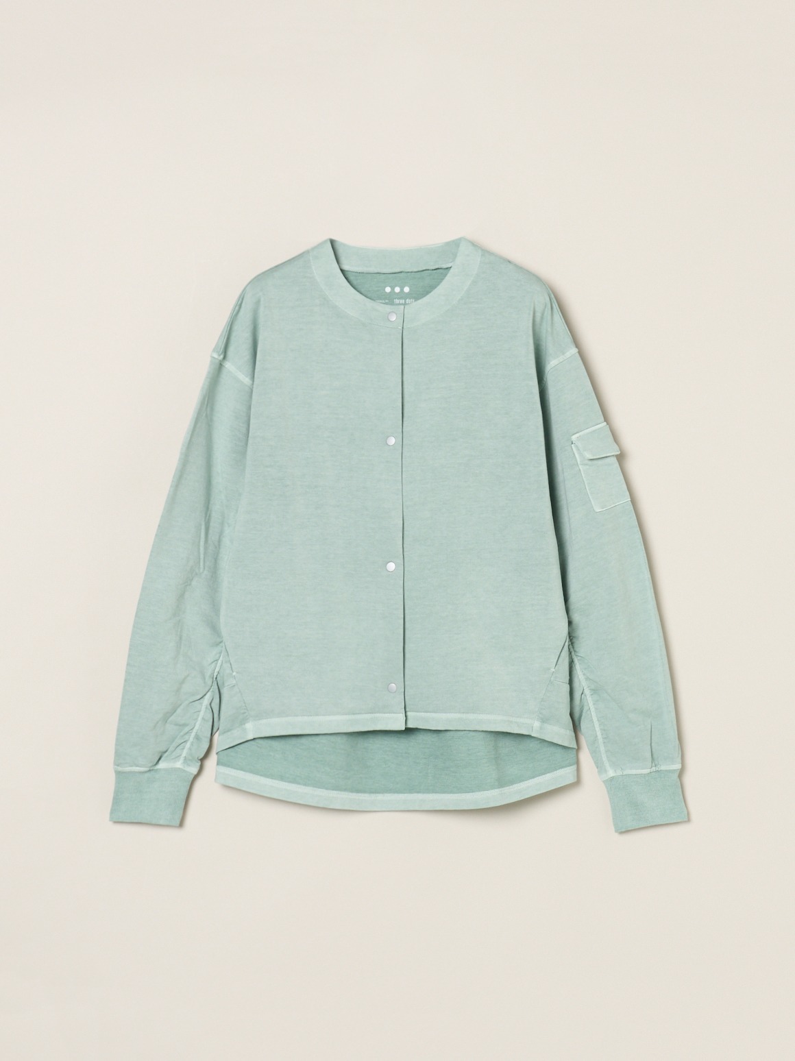 ピグメントダイ加工を施した、ミニ裏毛素材のブルゾン風カーディガン。