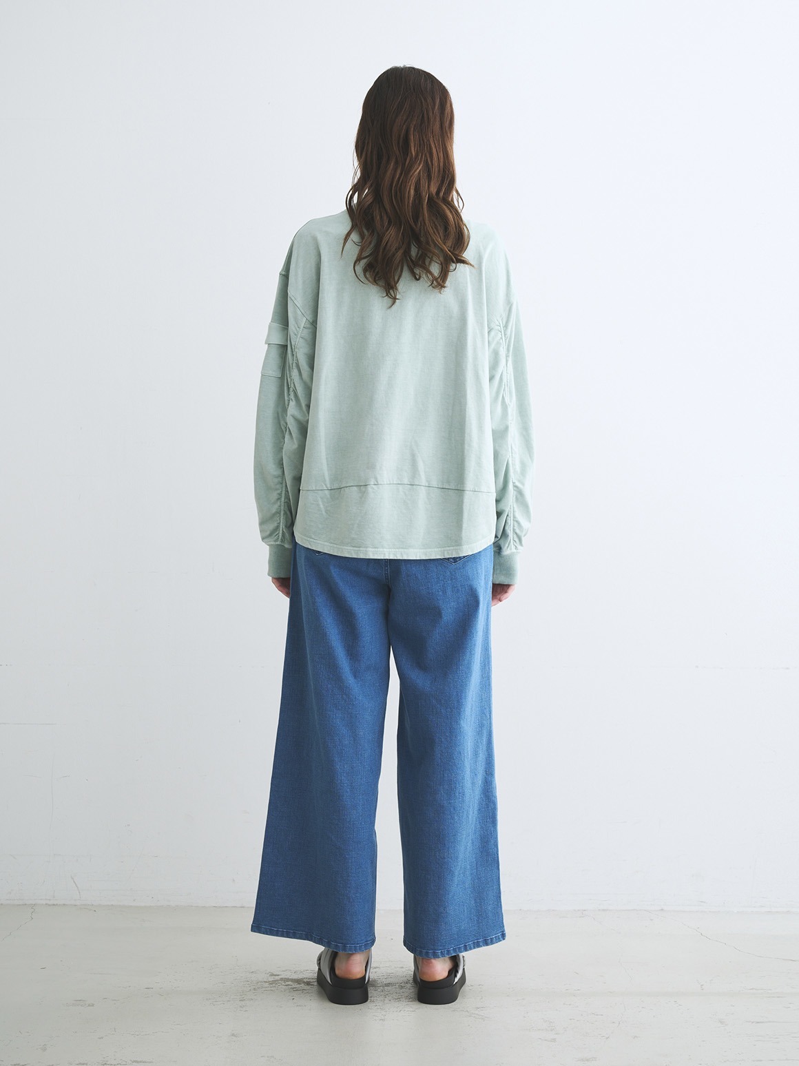 *ホワイトは無染色です。その他のカラーのピグメントダイはデニム同様使用やお手入れで徐々に色が褪せていきます。ヴィンテージライクな風合いをお楽しみいただけますが、アテンションタグや洗濯ラベルを良くご確認のうえお手入れお願いいたします。