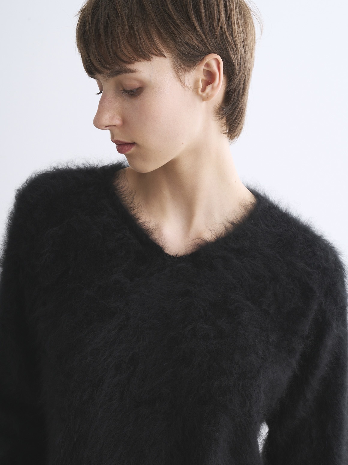 秋冬の人気素材、カシミヤニットを特殊加工で毛吹かせた「FUR CASHMERE」シリーズ。着る宝石とも言われるカシミヤをさらにリュクスに。繊細なファーは肌に触れても心地よく、どこまでも贅沢な気分をもたらす1枚です。誰にでも喜ばれるカシミヤ素材はギフトにも最適。同素材でベストも展開。 quality:カシミヤ100% country:日本