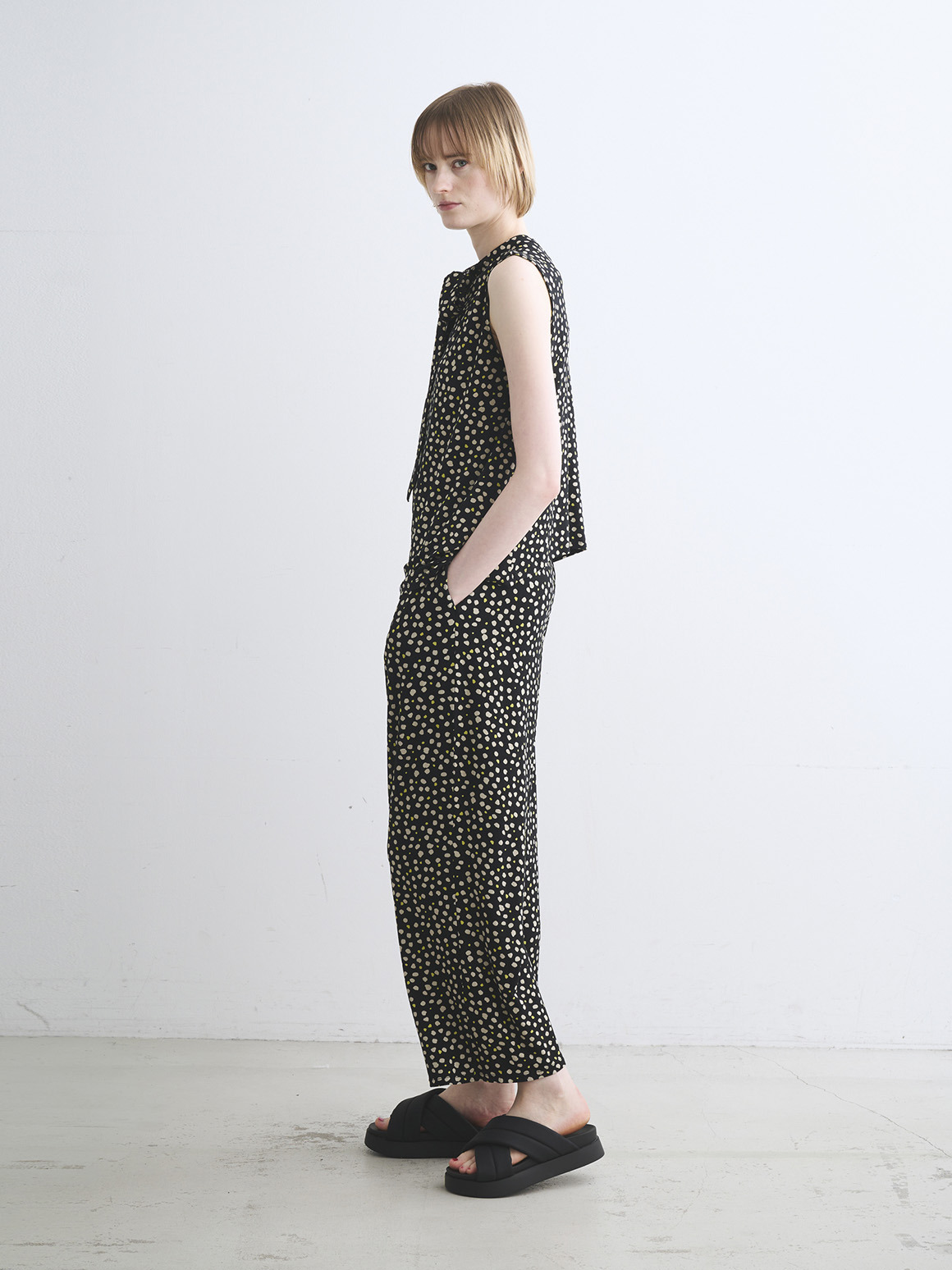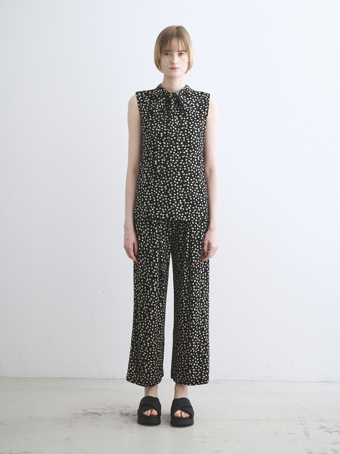 カラーバリエーションは、シトラスイエローxベージュのドット柄に定番のブラック、しっとり重厚な色合いの新しいネイビー、DARK NAVY(無地展開は関連商品欄からご覧ください)。
