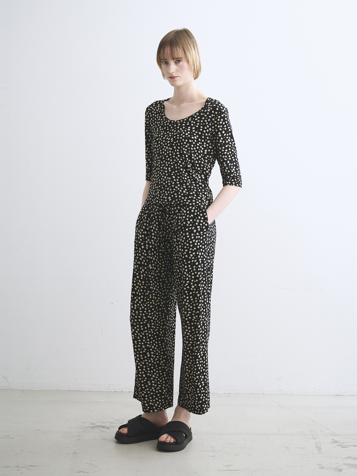 ストレスフリーな着心地、プリント、無地との組み合わせでできる自在なスタイリング。アイテムを絞りたい旅行時の、あらゆるわがままを叶えるシリーズです。