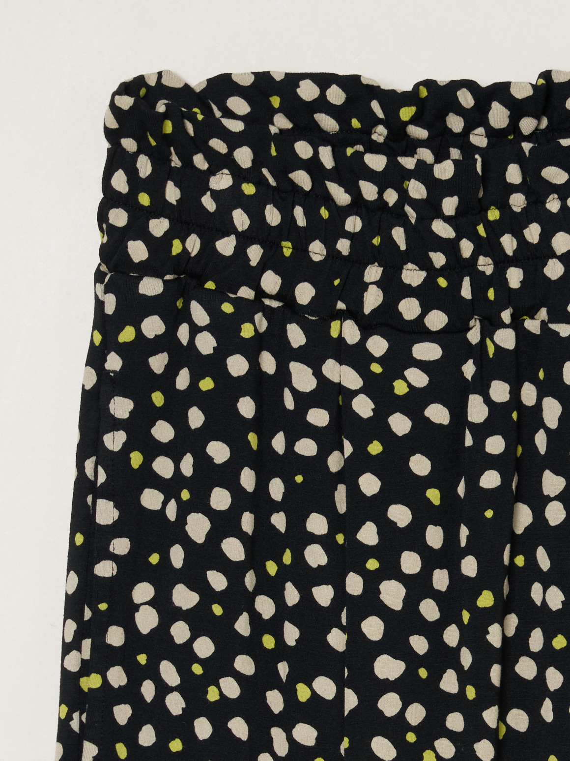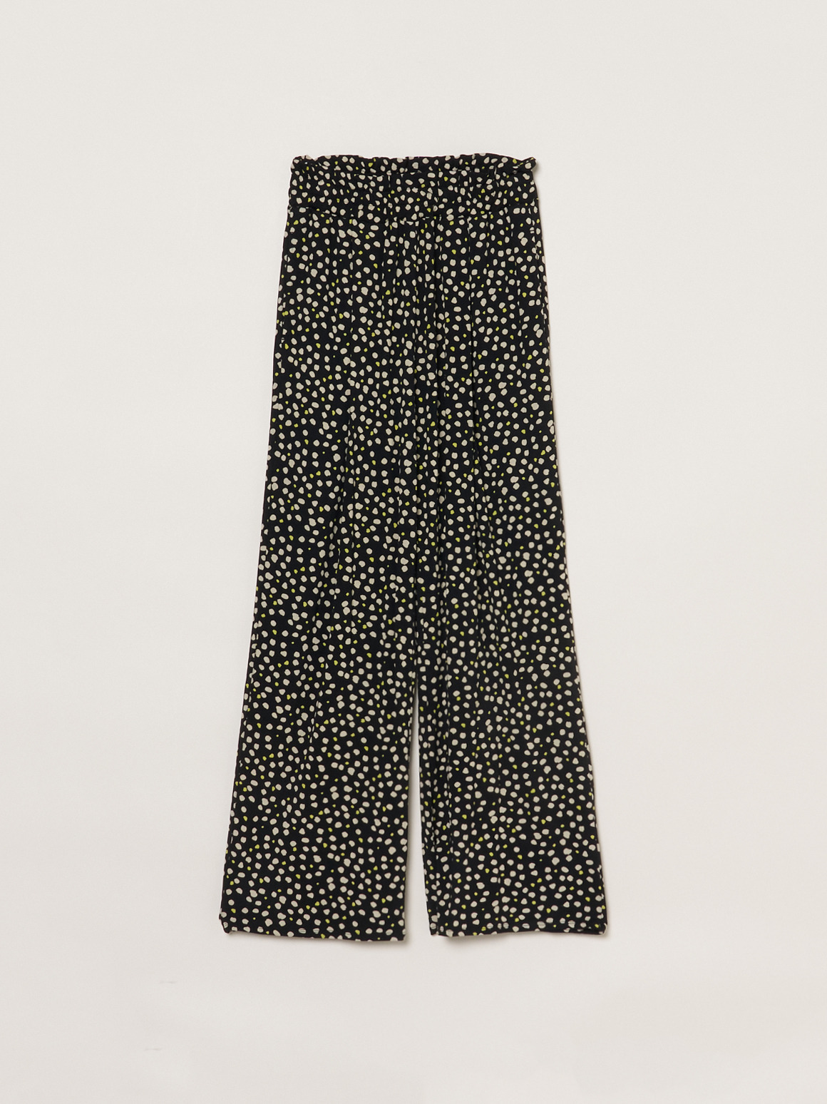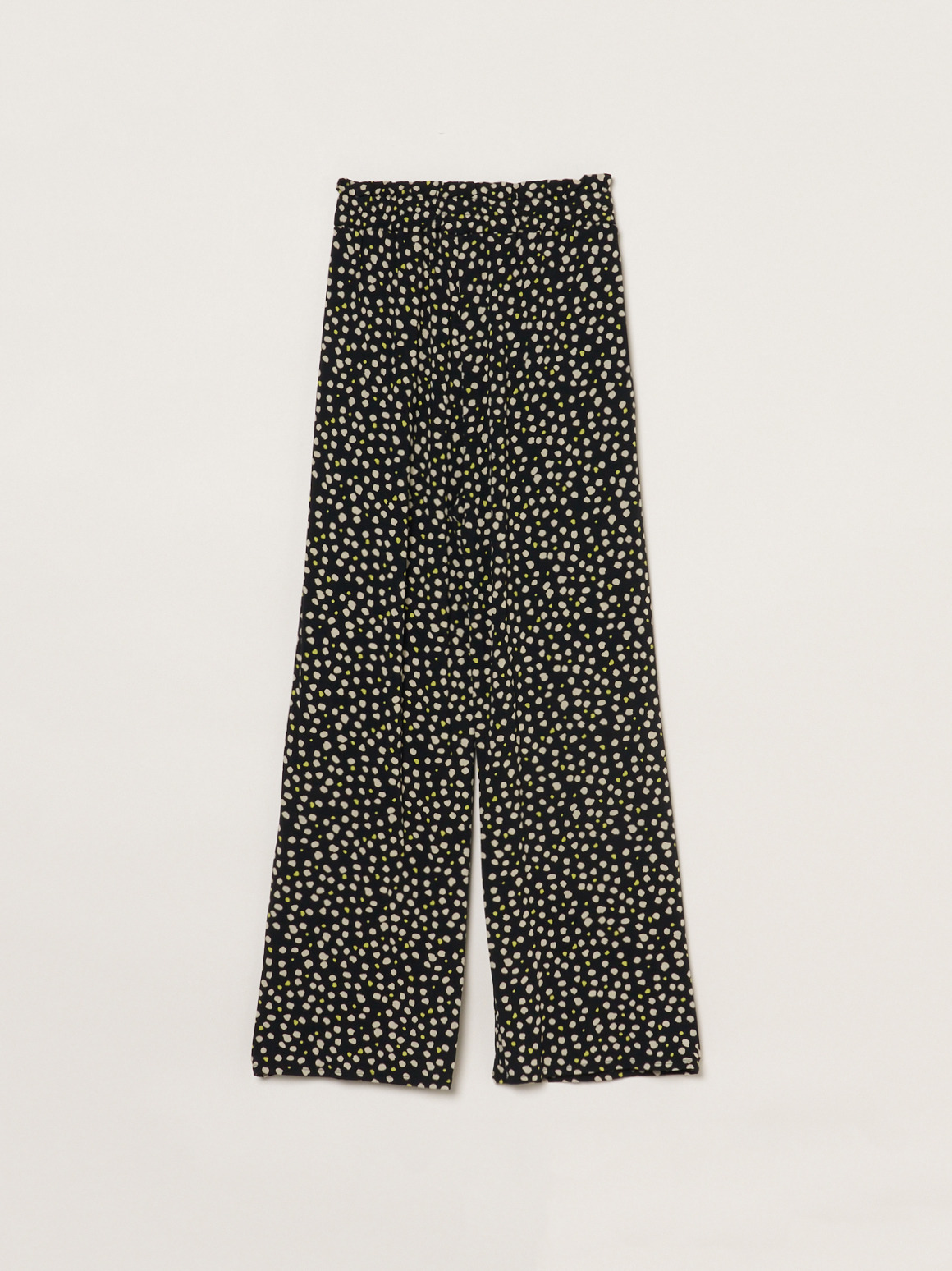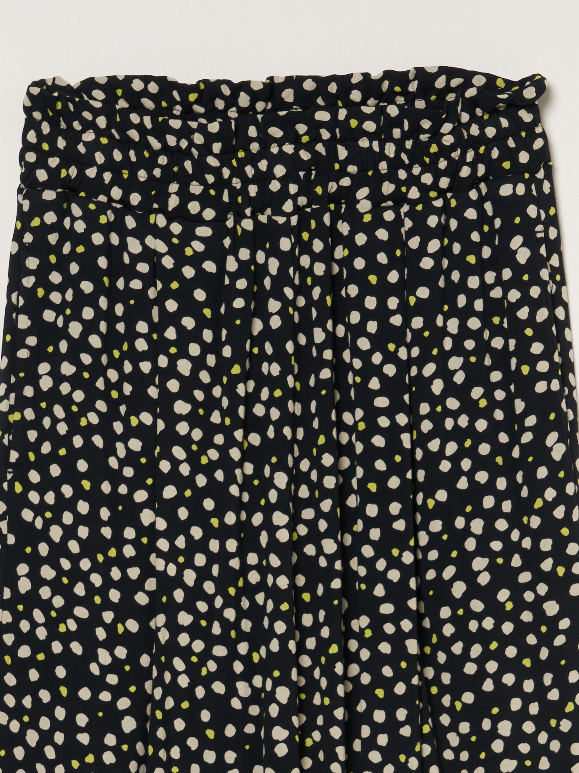 ウエストギャザーのパンツはすとんと落ちる美シルエット。ほどよいボリュームがあるのでトップスをインして決まるデザインです。