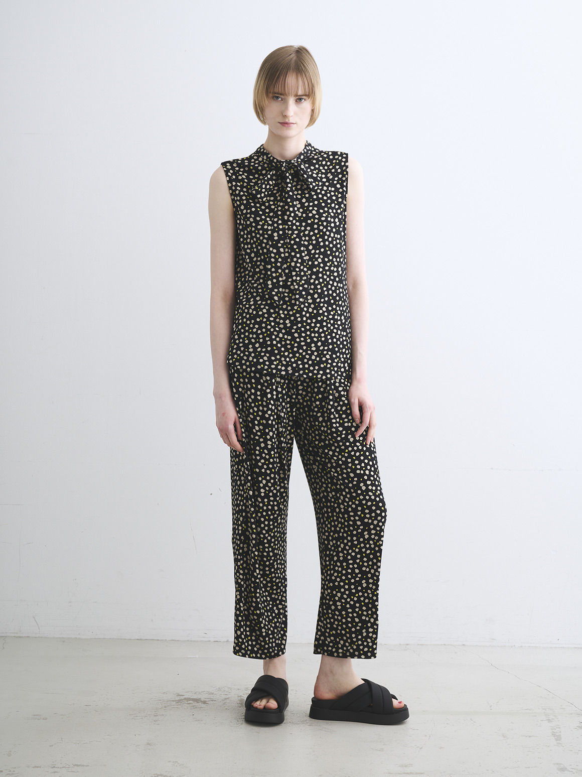 カラーバリエーションは、シトラスイエローxベージュのドット柄に定番のブラック、しっとり重厚な色合いの新しいネイビー、DARK NAVY(無地展開は関連商品欄からご覧ください)。