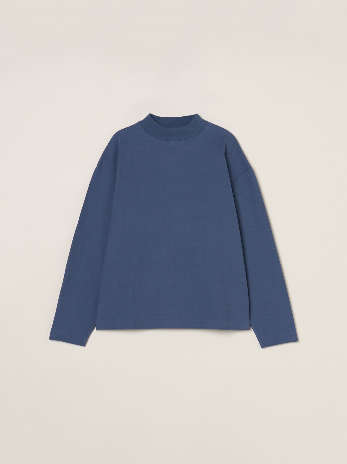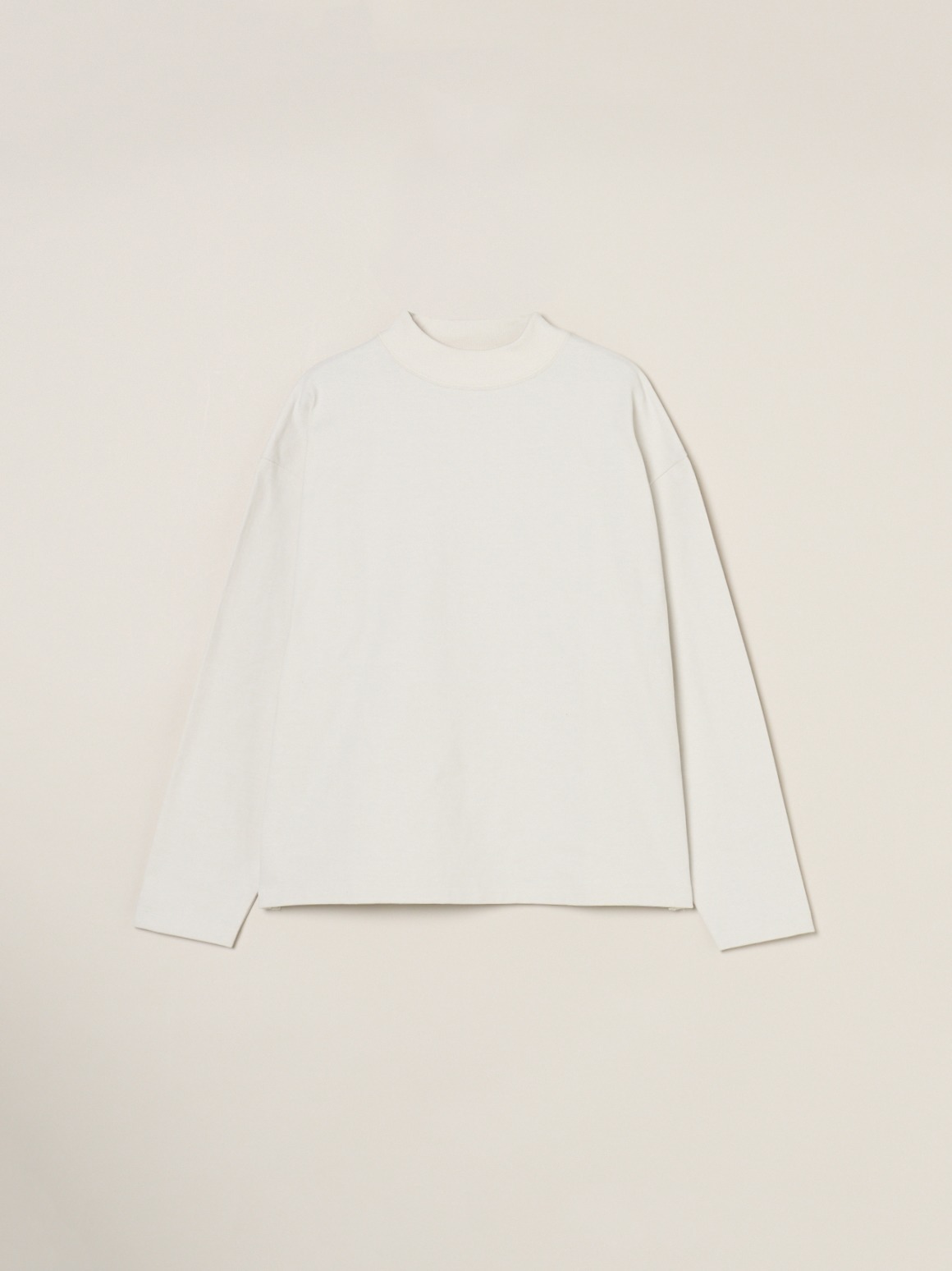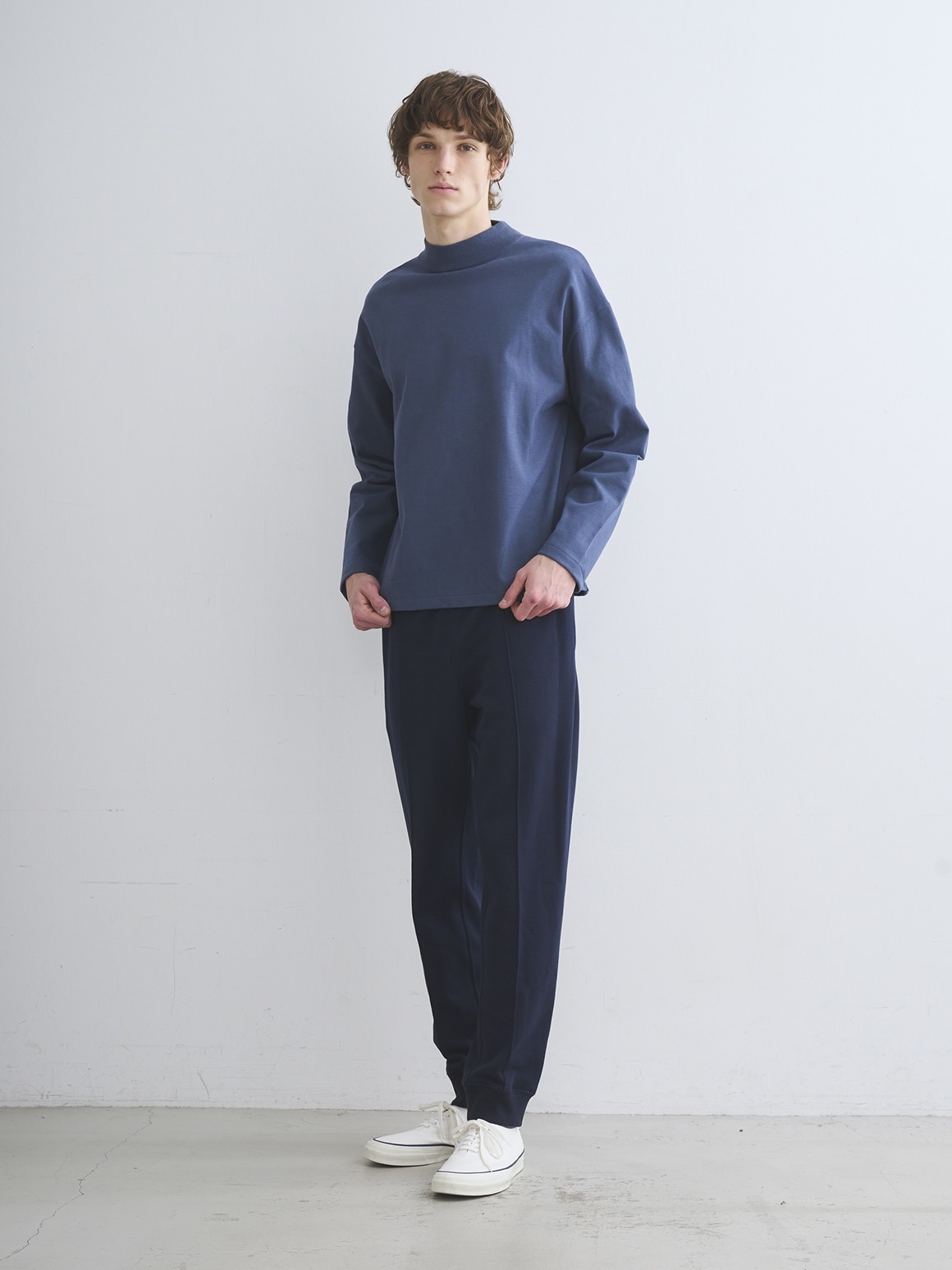モックネックの程よい高さがカジュアルに寄りすぎない印象に。