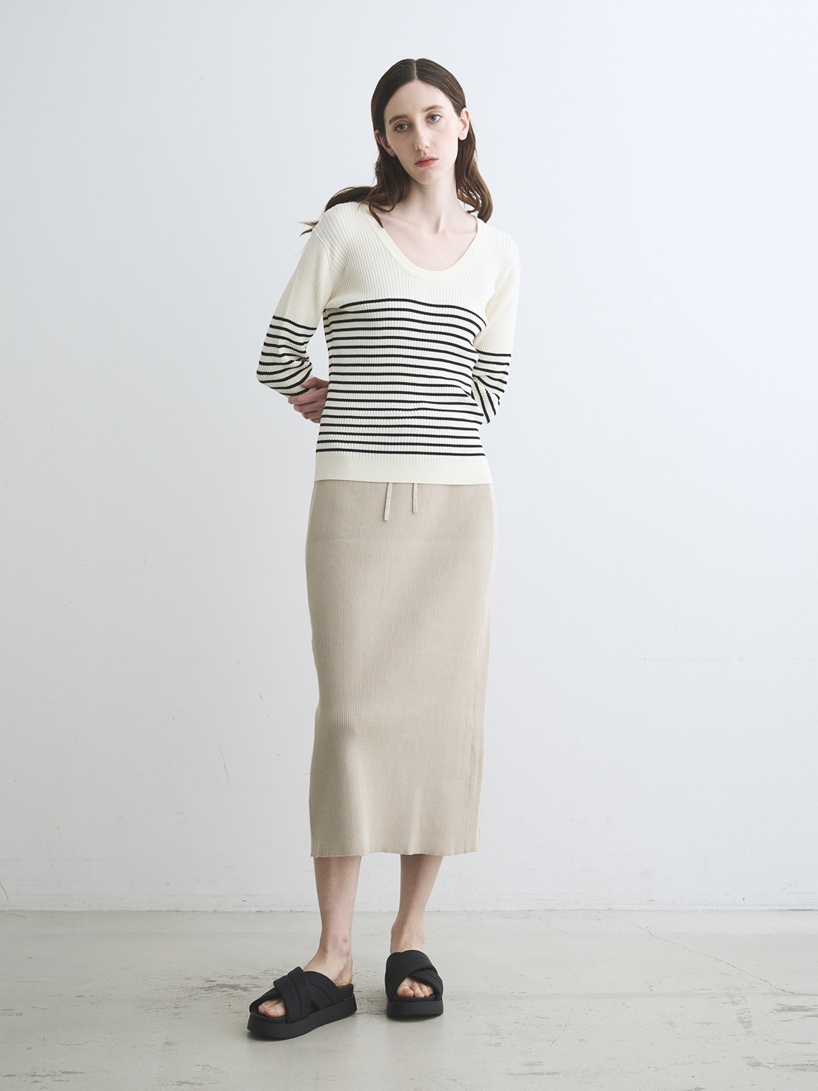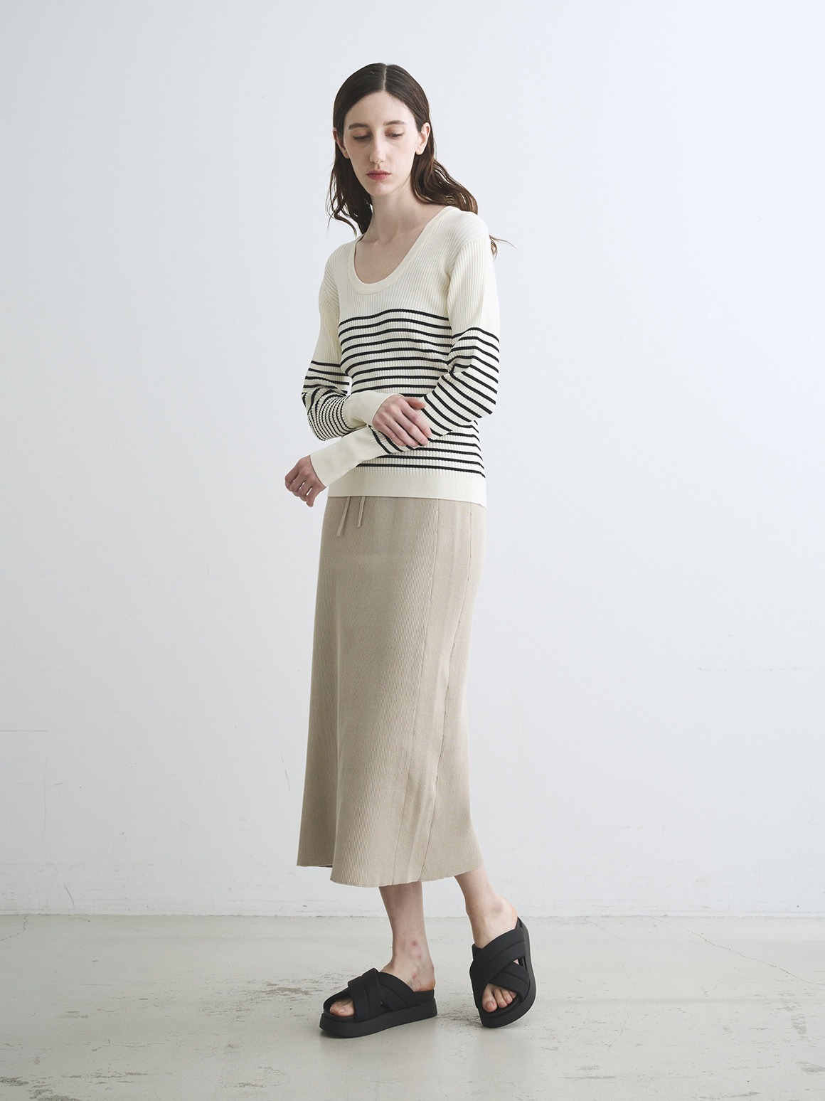 人気のニットセットアップ、「リュクスレーヨン」シリーズと同じ糸を使用した、JESSICAネックのニットプルオーバー。ニットジャケット(JK701Y)とアンサンブルでも着用できます。カットソー感覚で春も秋冬も、ロングスパン活躍。