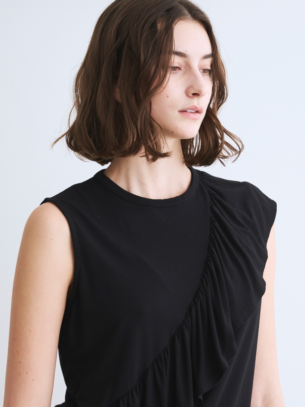 小さく畳め、ハンガーにかけておくだけでシワが伸びやすいとろみのあるレーヨンジャージー素材。なめらかさやリュクス感があるためドレスアップしたいときにも最適です。