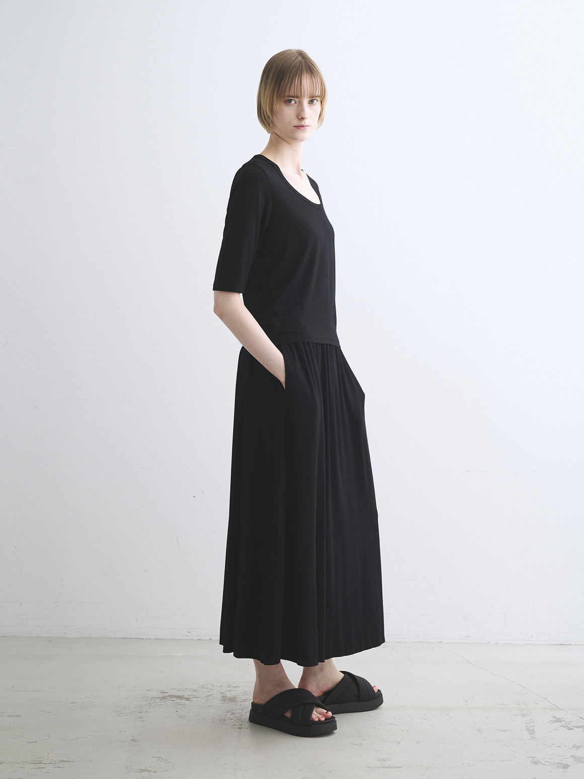 ストレスフリーな着心地、プリント、無地との組み合わせでできる自在なスタイリング。アイテムを絞りたい旅行時の、あらゆるわがままを叶えるシリーズです。