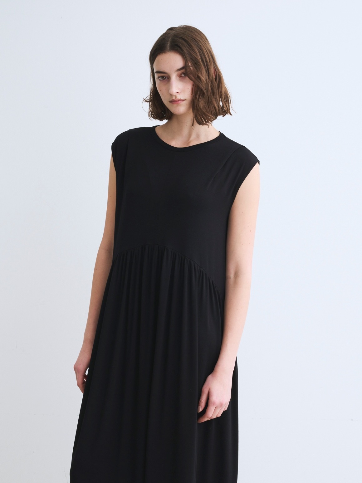小さく畳め、ハンガーにかけておくだけでシワが伸びやすいとろみのあるレーヨンジャージー素材。なめらかさやリュクス感があるためドレスアップしたいときにも最適です。