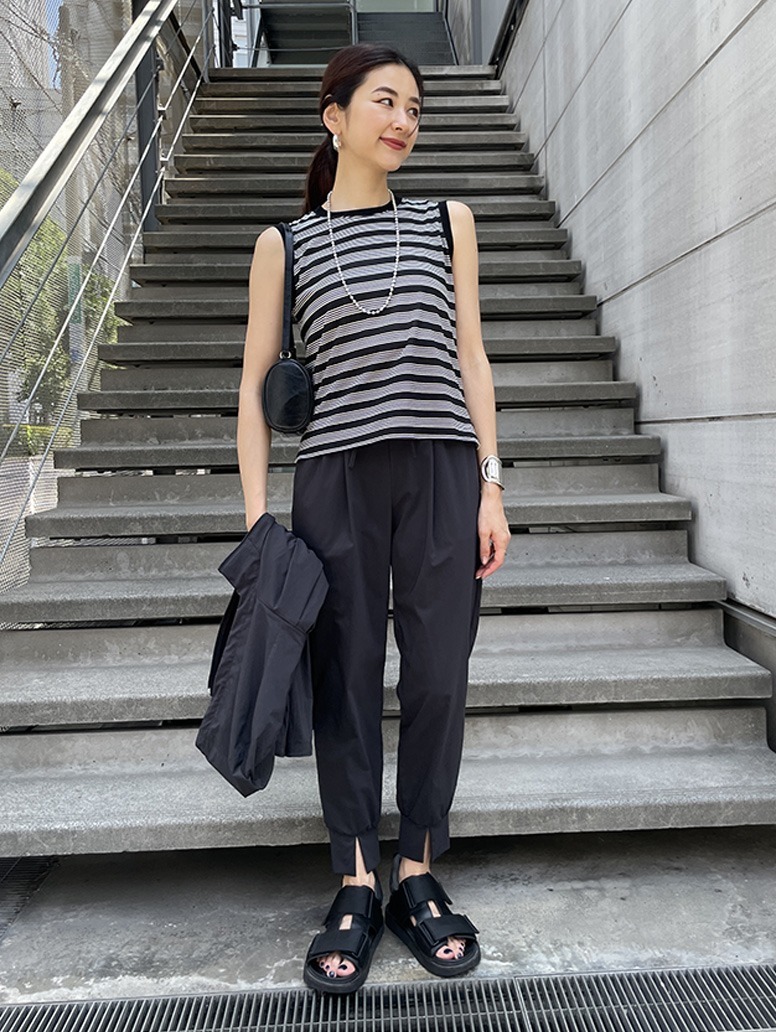 着用サイズ:Mスッキリとしたパンツで足のラインをきれいに見せてくれます。