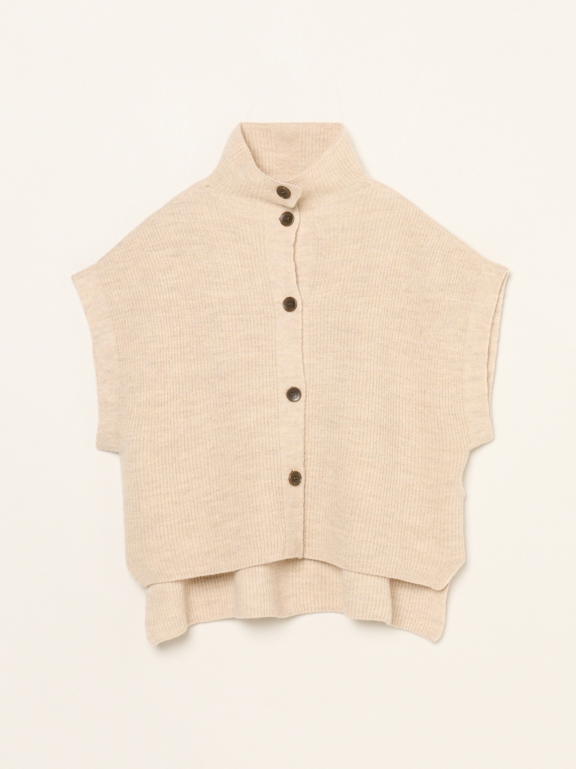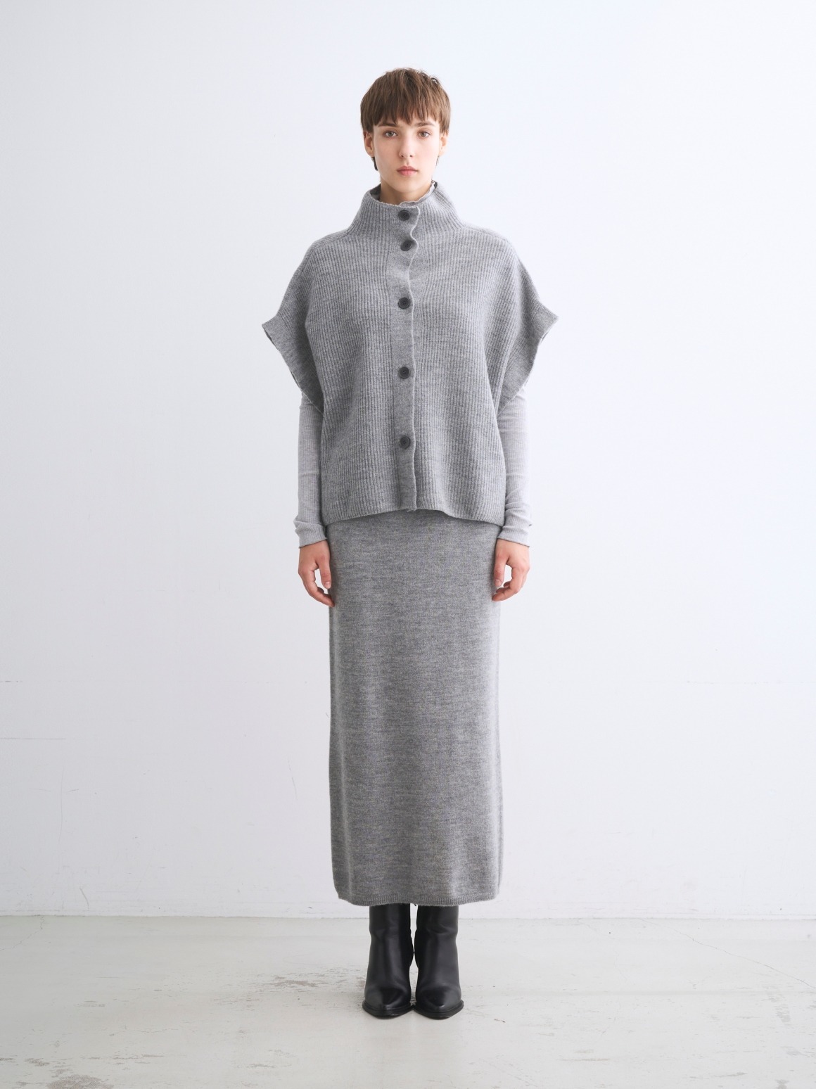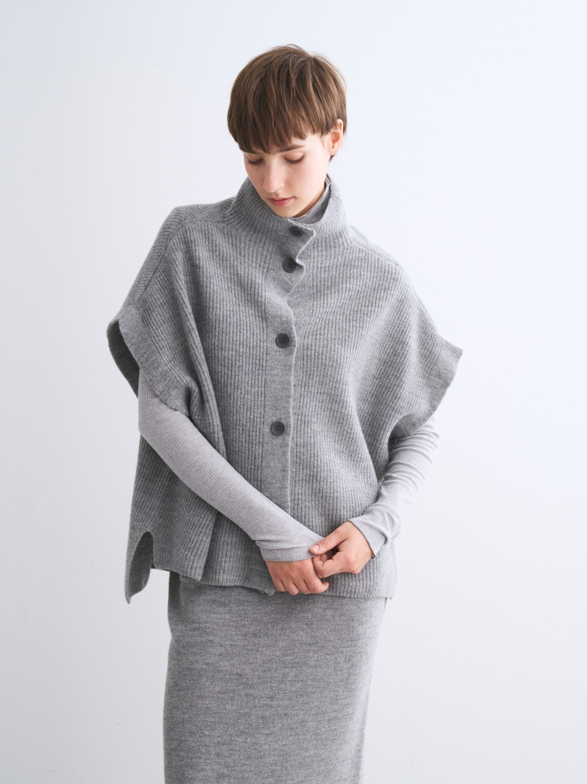 ウールカシミヤの贅沢な着心地を全身で味わえる、ニットセットアップのシリーズです。ふんわり軽やかな編地のニットベストはフロントのボタンを開けて羽織りにも、第2ボタンまで開けて襟付き風にとアレンジ自在。ホールガーメントと言われる筒状に編む製法により、余分な接ぎ目が無く、ストレスフリーな着心地です。半袖と合わせて暖かいうちからも着られ、インをニットやタートルカットソーなどにすればきっちり防寒も叶います。同素材のセットアップ可能なパンツ、スカートも展開しているので関連商品欄からご覧ください。