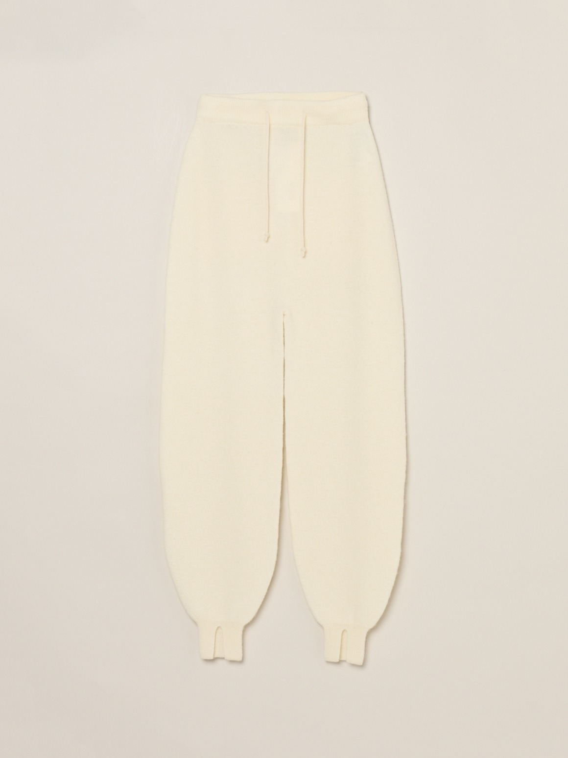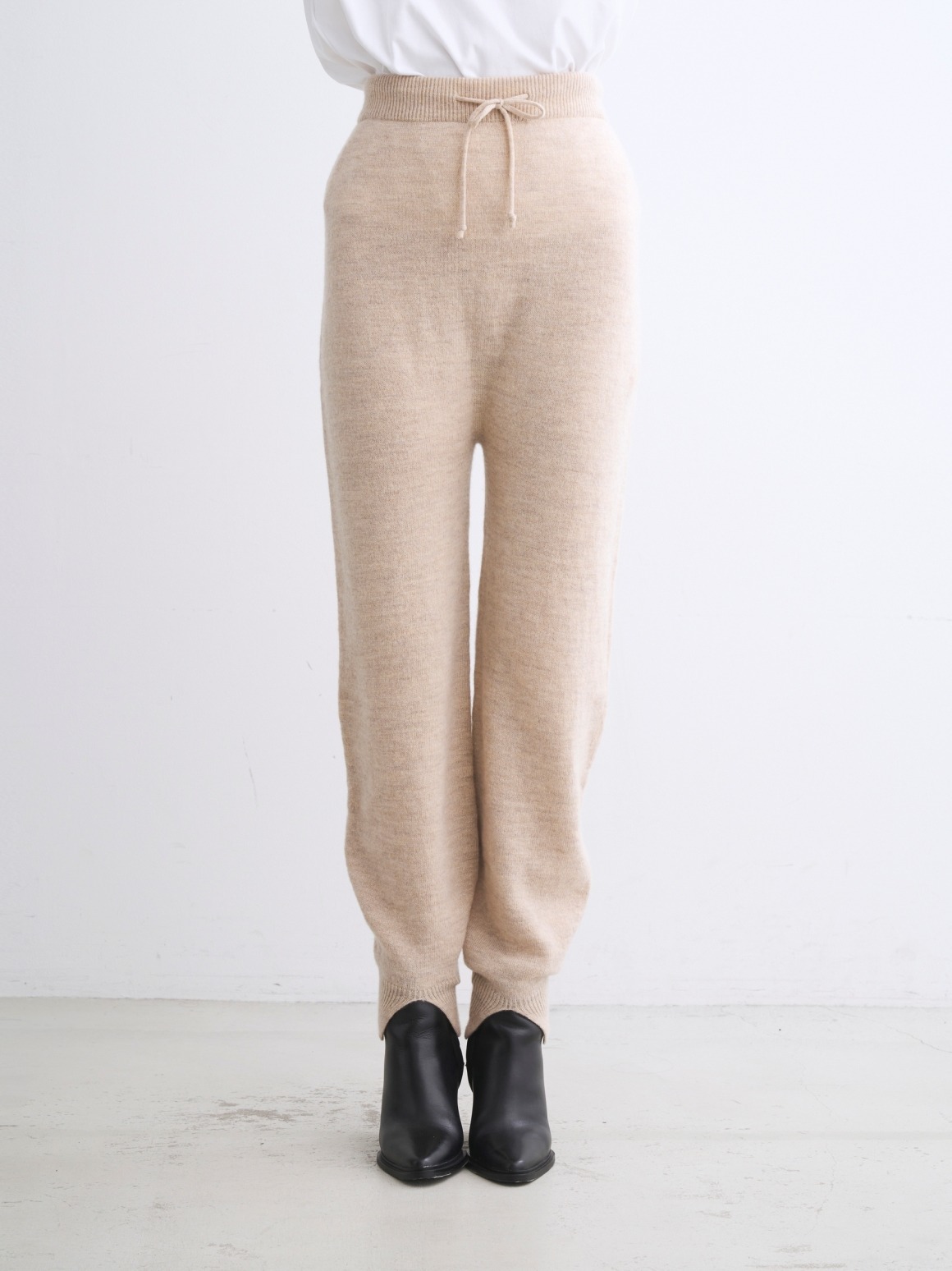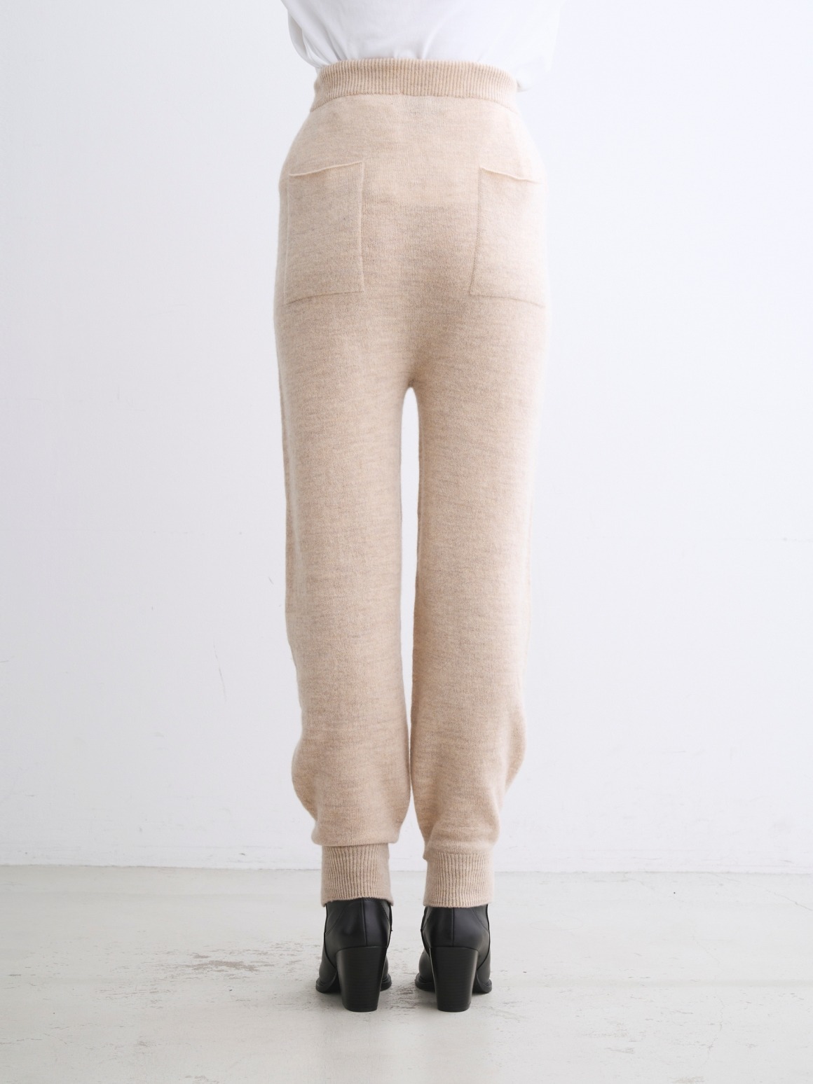 ウールカシミヤの贅沢な着心地を全身で味わえる、ニットセットアップのシリーズです。ふんわり軽やかな編地のニットパンツは丸みのあるジョガー型。ホールガーメントと言われる筒状に編む製法により、余分な接ぎ目が無く、ストレスフリーな着心地です。ペタンとしがちな脇のラインも立体的に丸くなり、細かいディテールながらに違いを感じられる1枚。裾のフロントスリットは足元の抜け感UPがかなうポイントに。同素材のセットアップ可能なベスト、スカートも展開しているので関連商品欄からご覧ください。