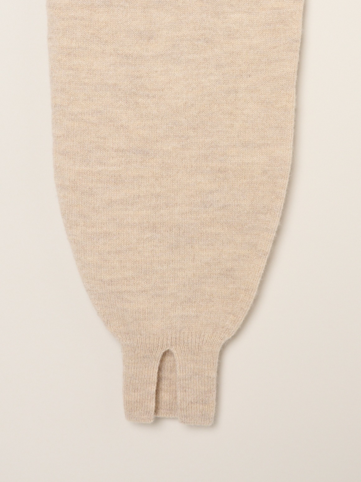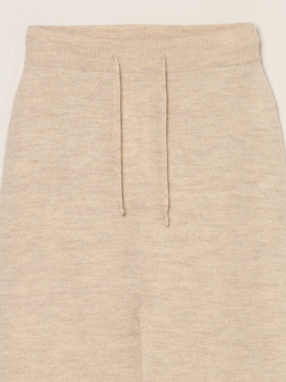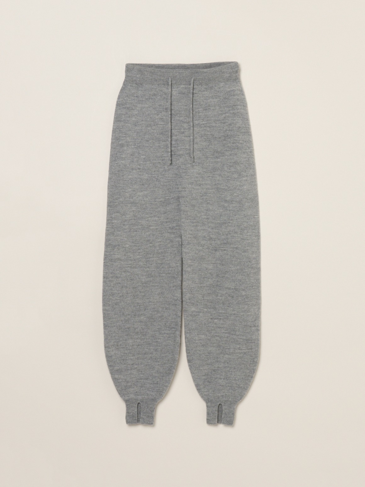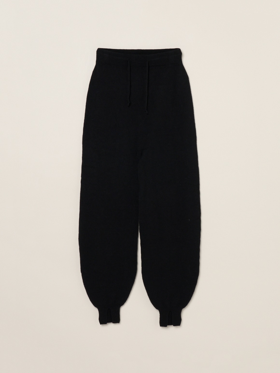 ウールカシミヤの贅沢な着心地を全身で味わえる、ニットセットアップのシリーズです。ふんわり軽やかな編地のニットパンツは丸みのあるジョガー型。ホールガーメントと言われる筒状に編む製法により、余分な接ぎ目が無く、ストレスフリーな着心地です。ペタンとしがちな脇のラインも立体的に丸くなり、細かいディテールながらに違いを感じられる1枚。裾のフロントスリットは足元の抜け感UPがかなうポイントに。同素材のセットアップ可能なベスト、スカートも展開しているので関連商品欄からご覧ください。