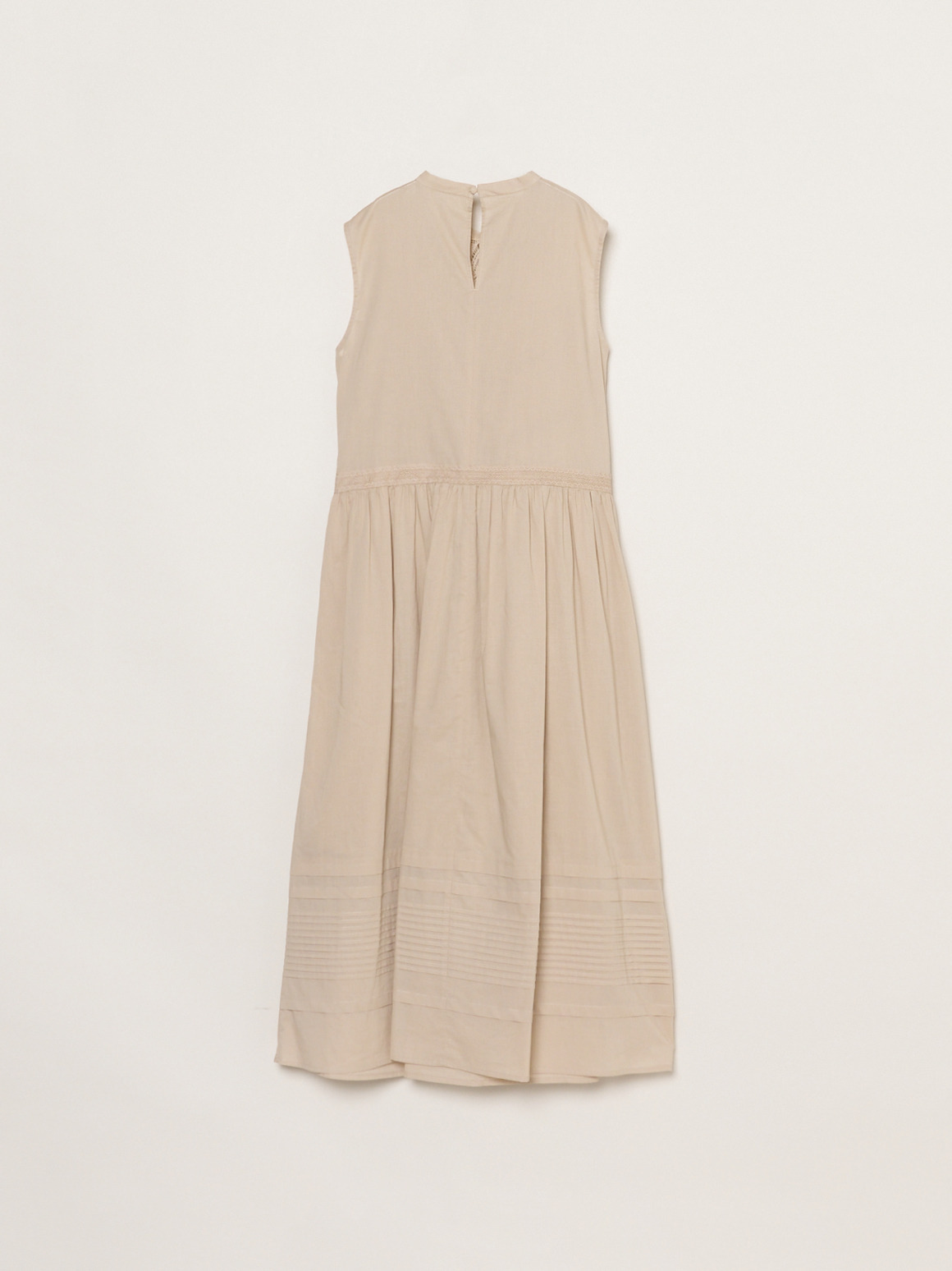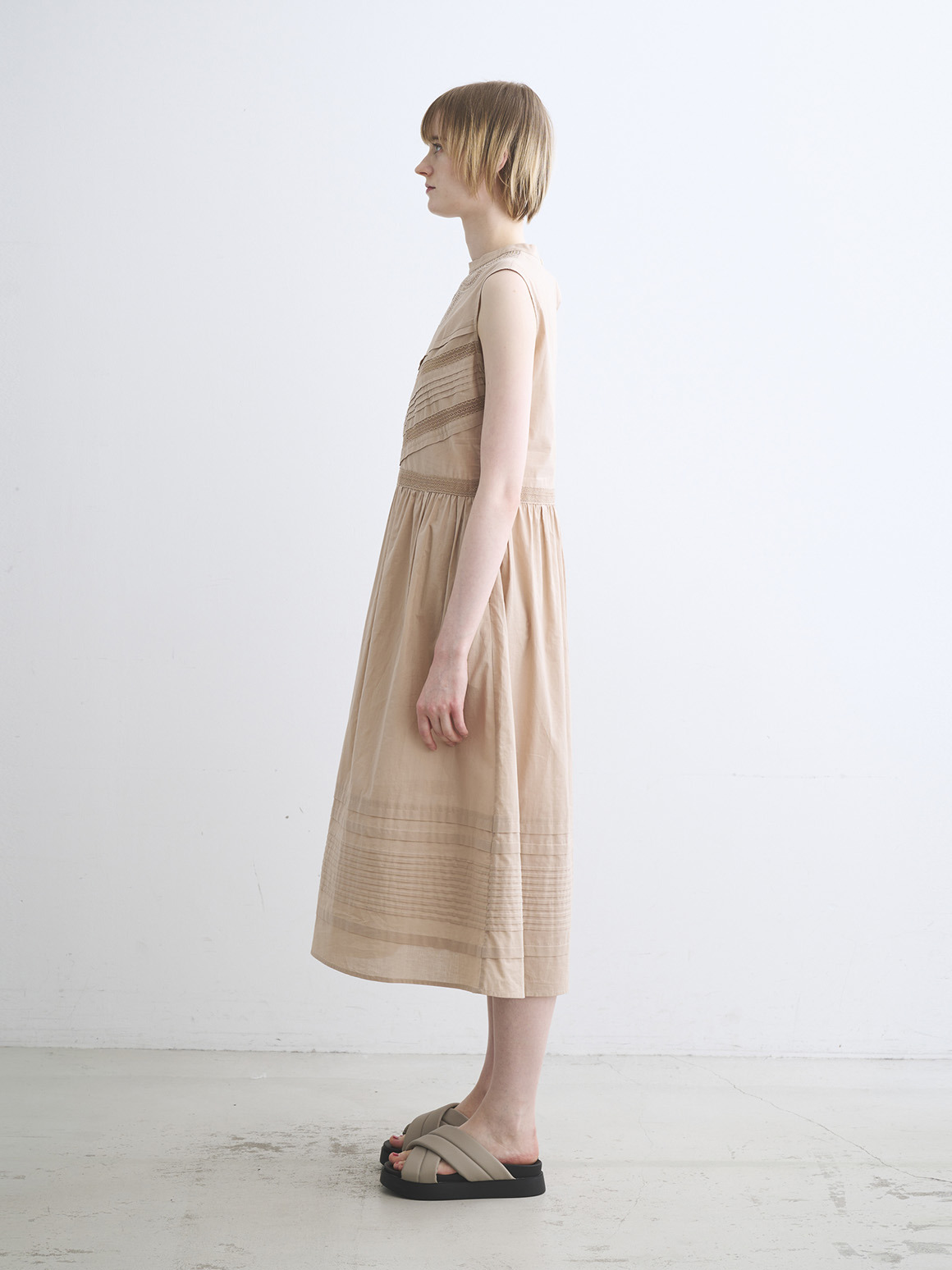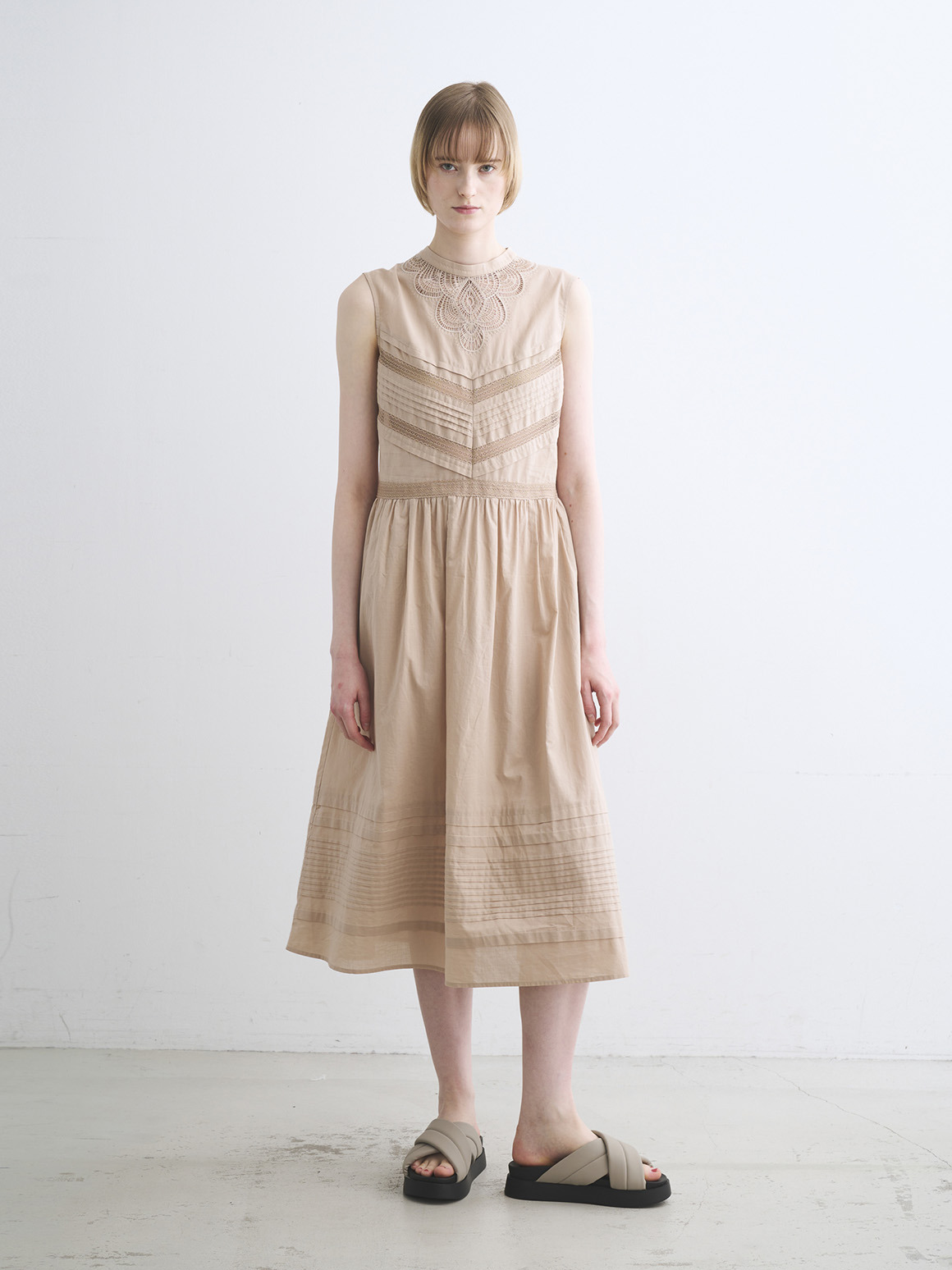 やわらかなコットン素材に、部分的にレースやタックをあしらったドレス。
