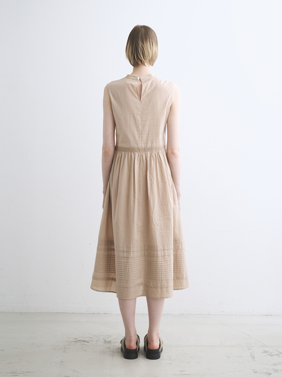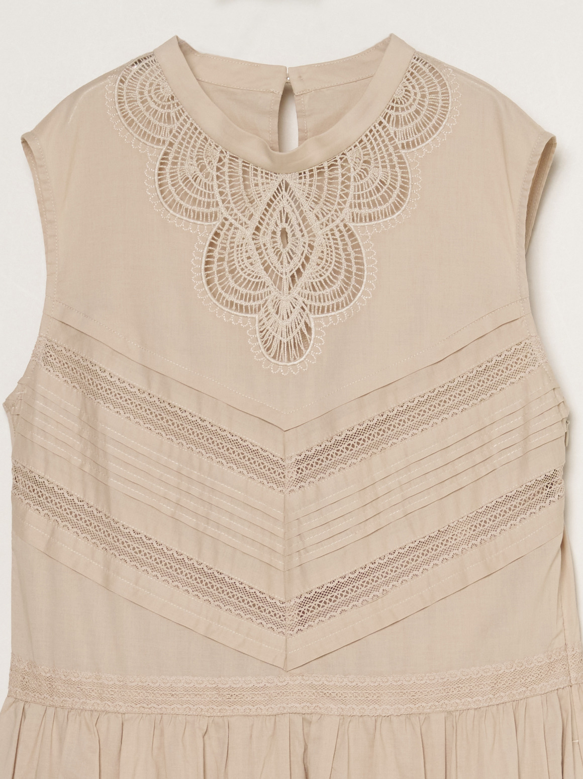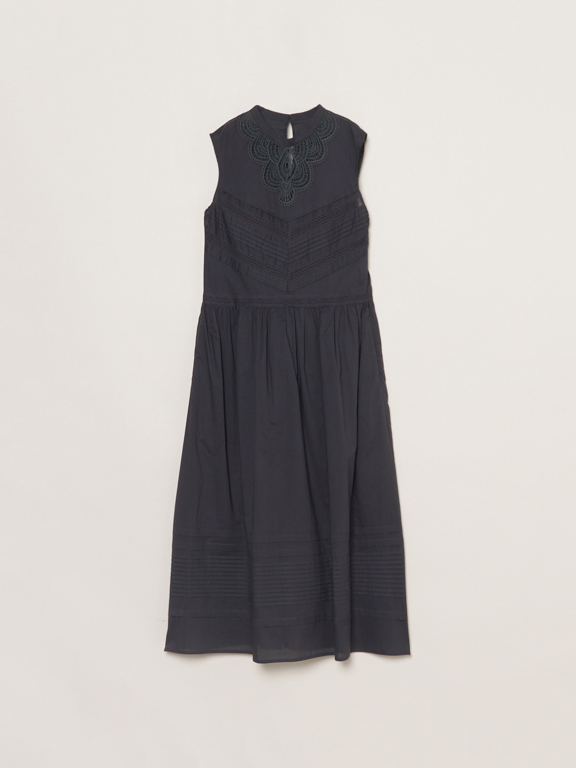 やわらかなコットン素材に、部分的にレースやタックをあしらったドレス。