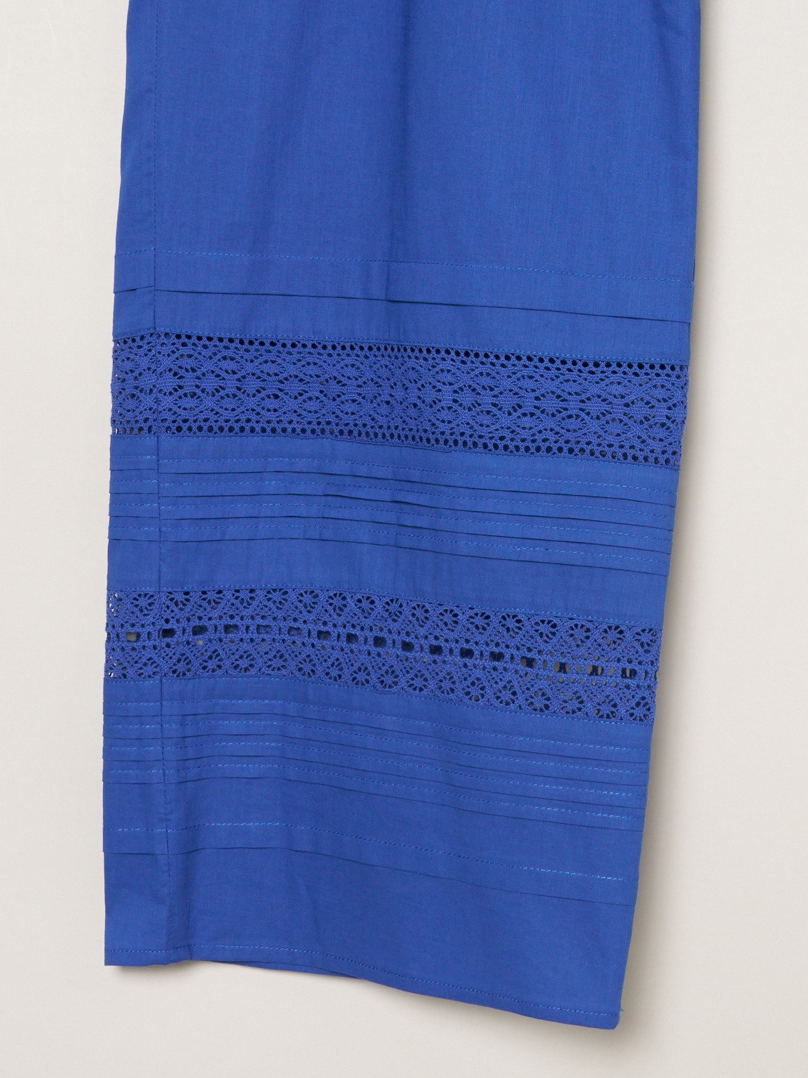 裾にあしらったレースが、さりげない華やかさをプラスします。