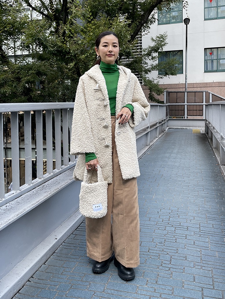 もこもこで可愛らしい印象のダッフルコート。