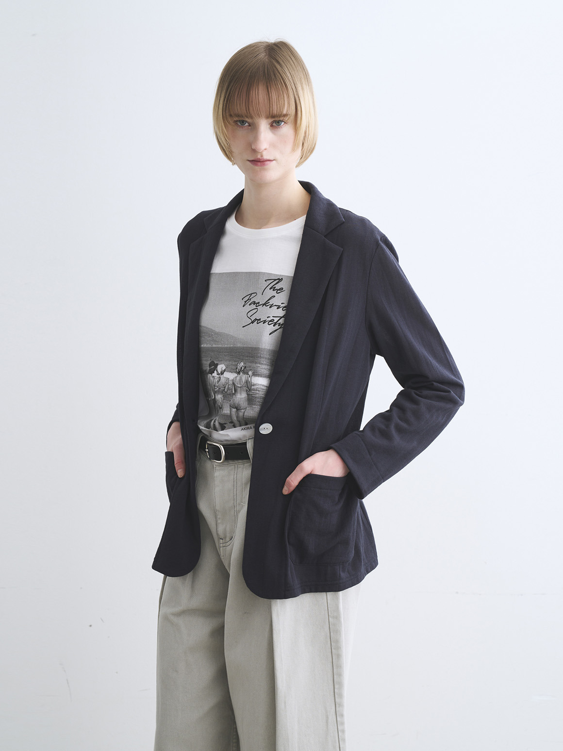 シアーなフレンチテリー素材を使用した、軽やかな着心地のテーラードジャケット。