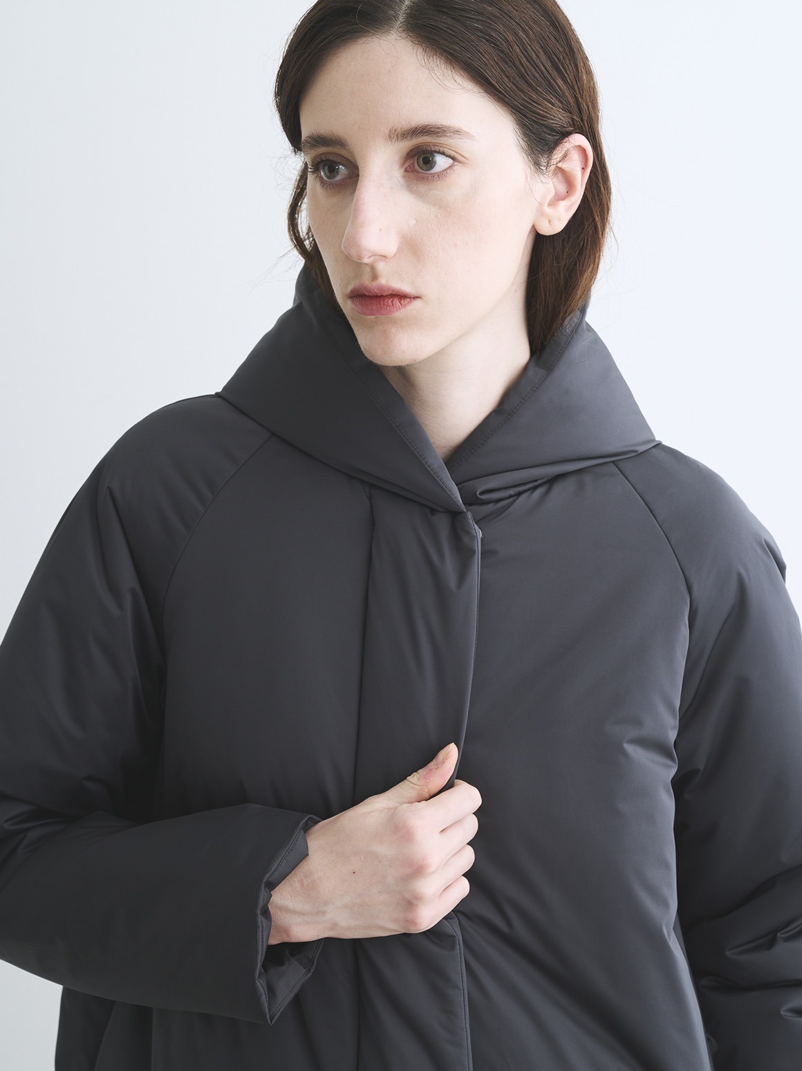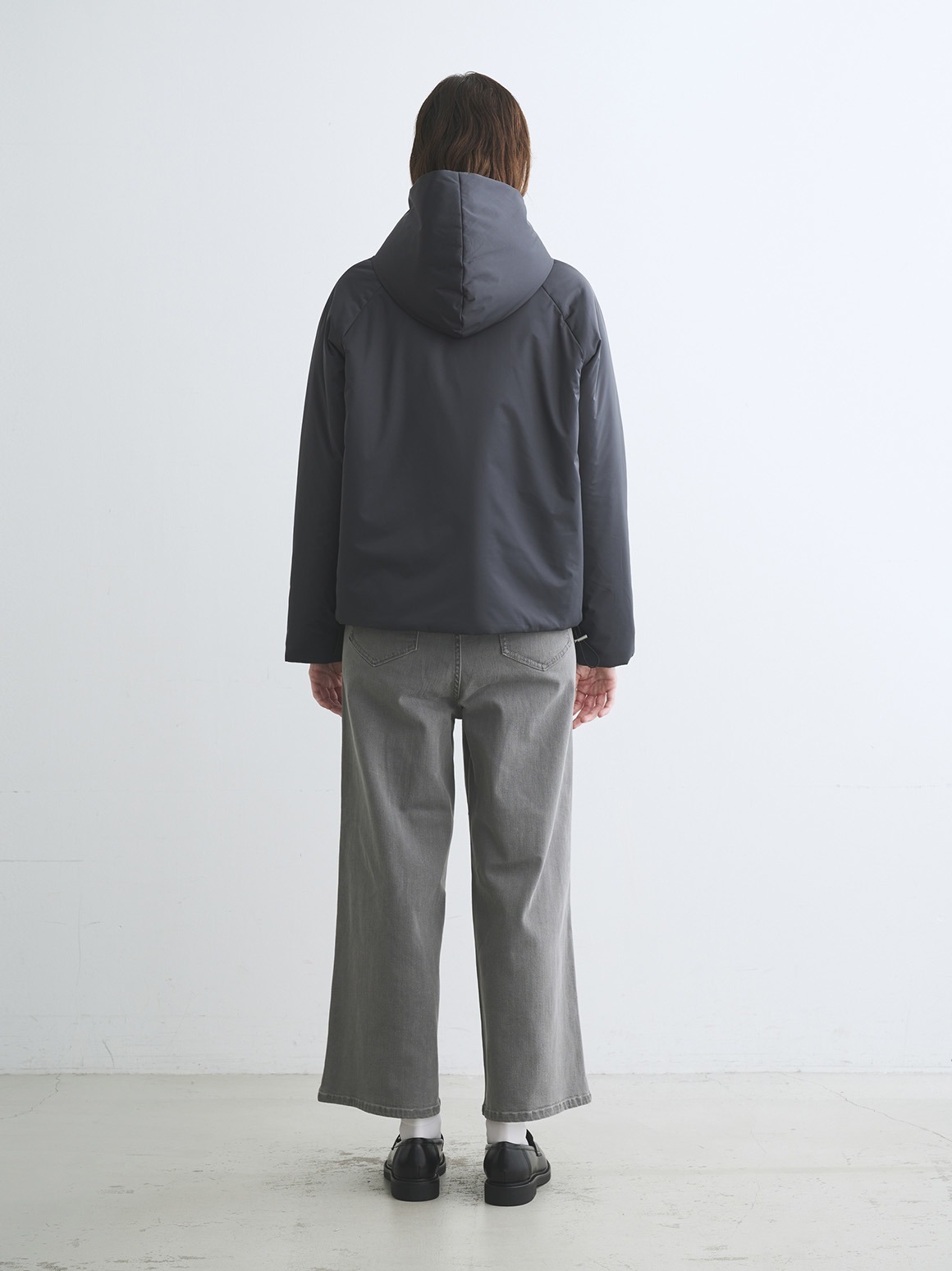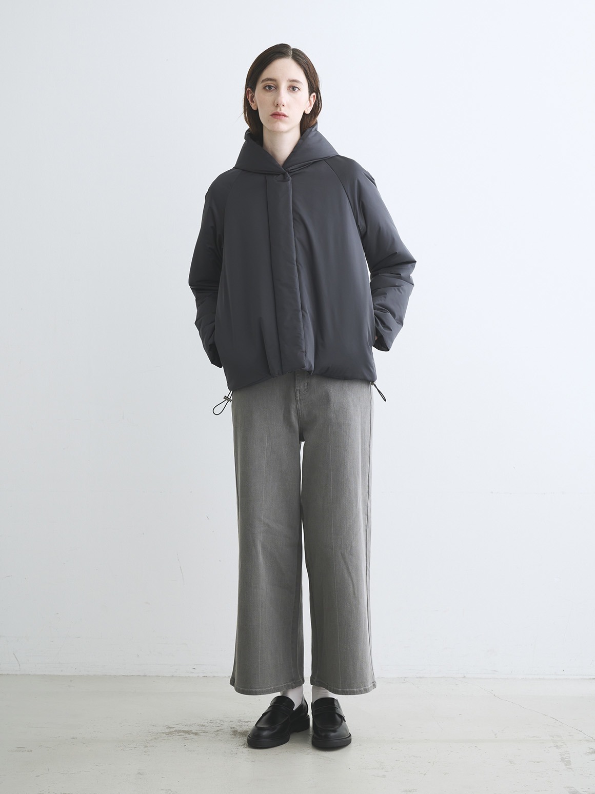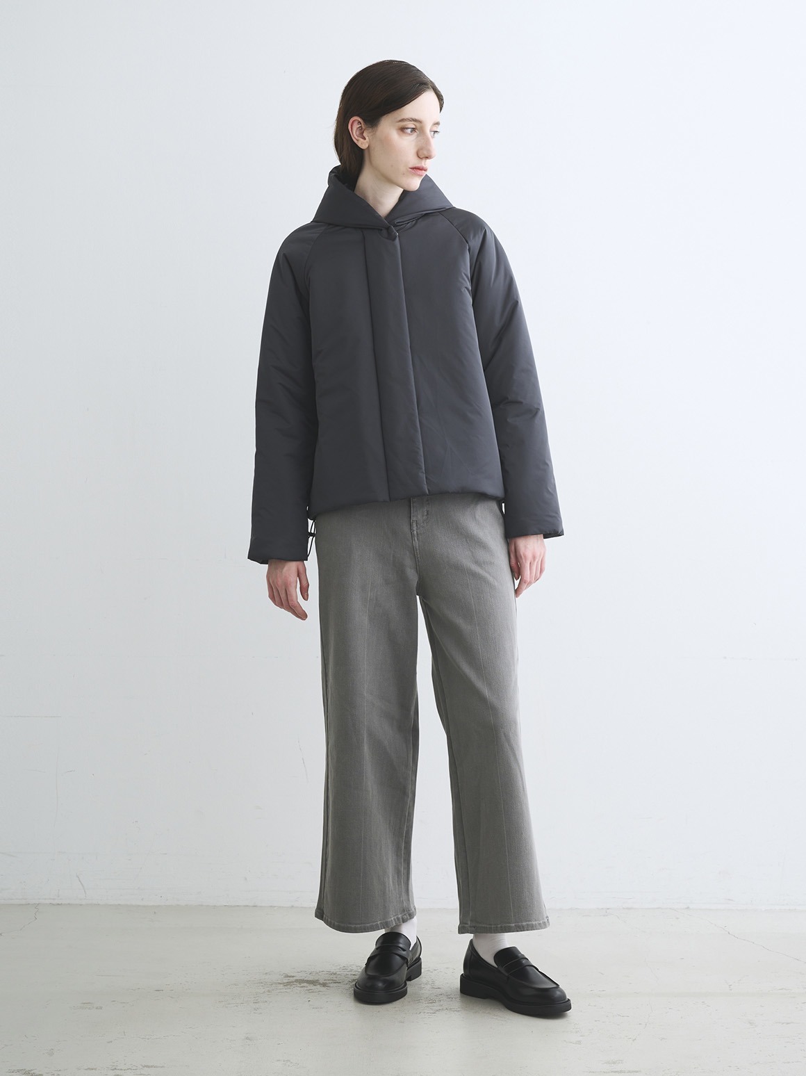 暖かさは重視したいけれど、できたら春先まで使える軽さのものがいい、そんなわがままをかなえてくれる非常にライトな中綿ジャケットが登場しました。カラーレスタイプよりゆったりと着られるフード付きジャケット。中にも着こめるゆとりを持たせたデザインながら、軽い中綿の特性ゆえに上からベストやアウターを合わせることも可能です。同素材のノーカラータイプはよりインナーにも適したデザイン。