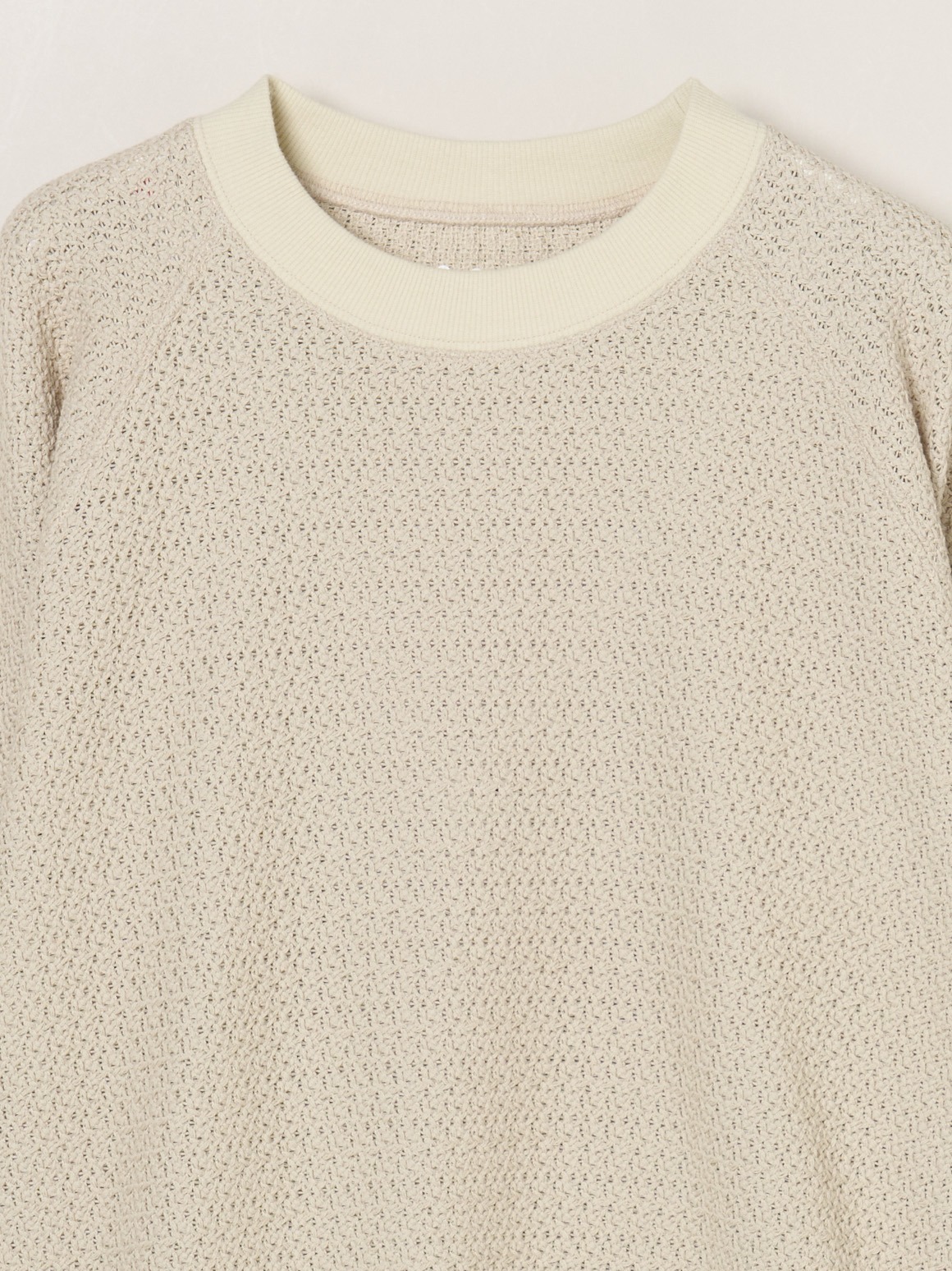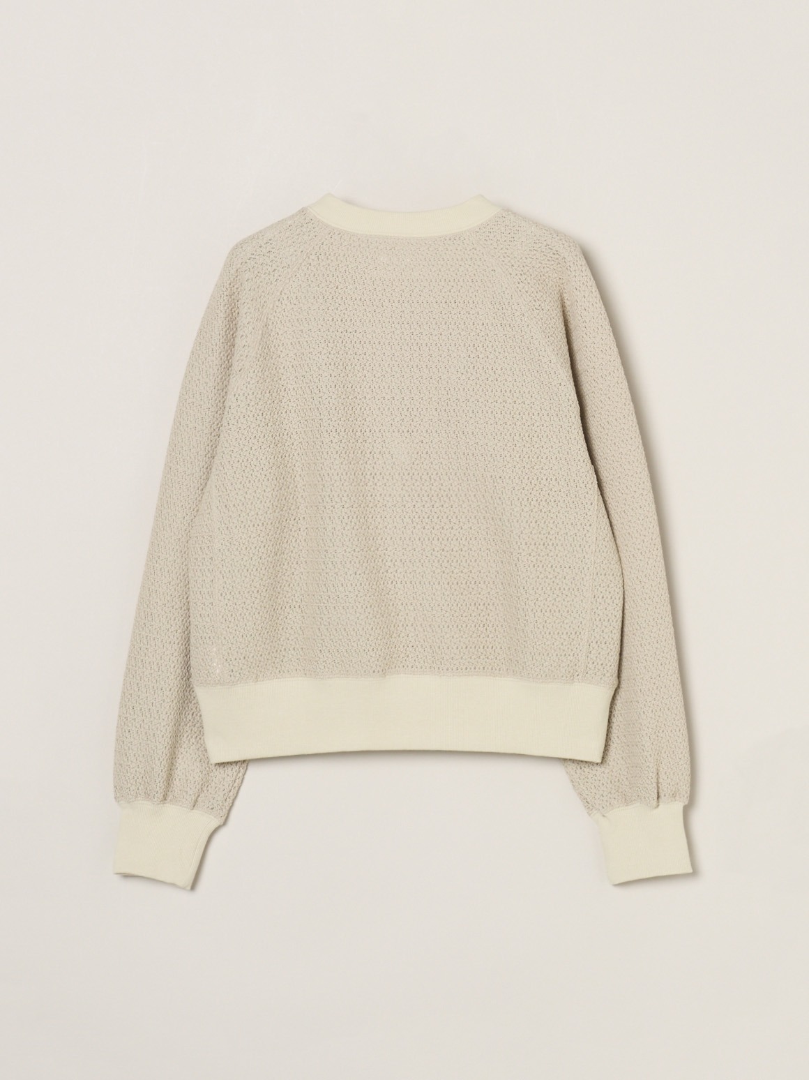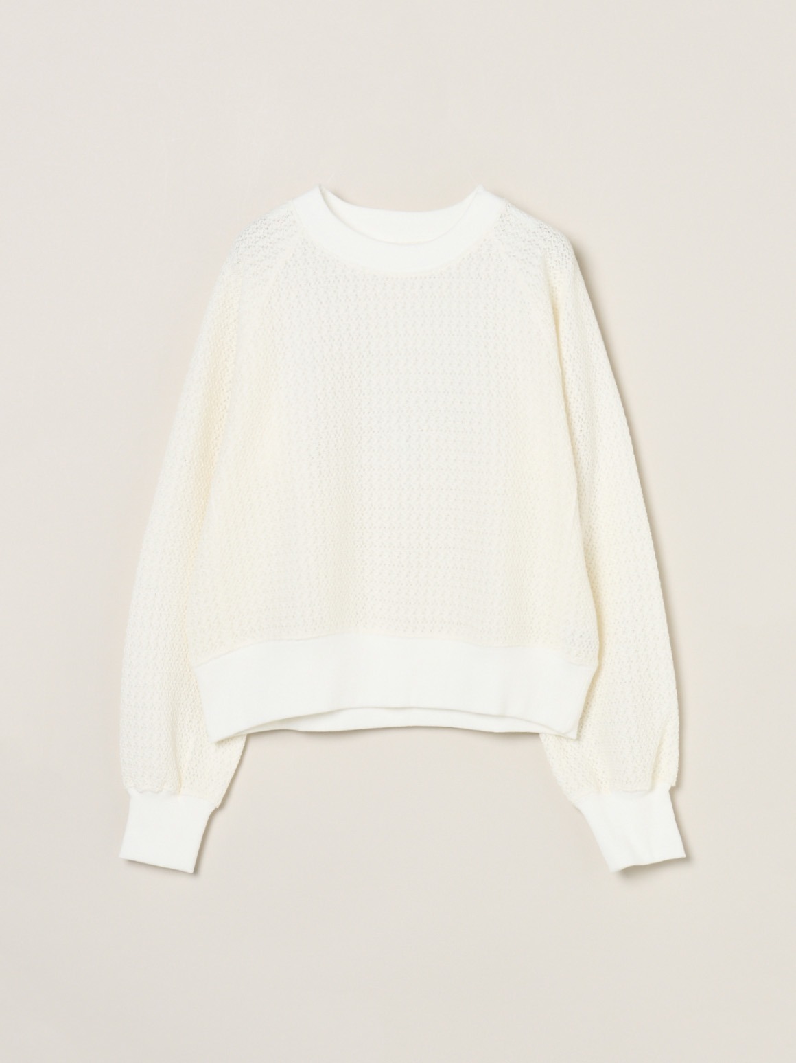 ラッセル機と呼ばれる機械で編んだレースのようなカットソー。軽やかでトレンド感がありながら、透けすぎないためスウェット感覚で着用可能。ハイネックカットソーなどを合わせれば季節をまたいで活躍します。同素材でバックリボンのデザイントップスも展開。