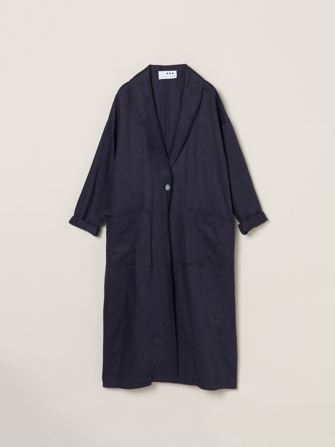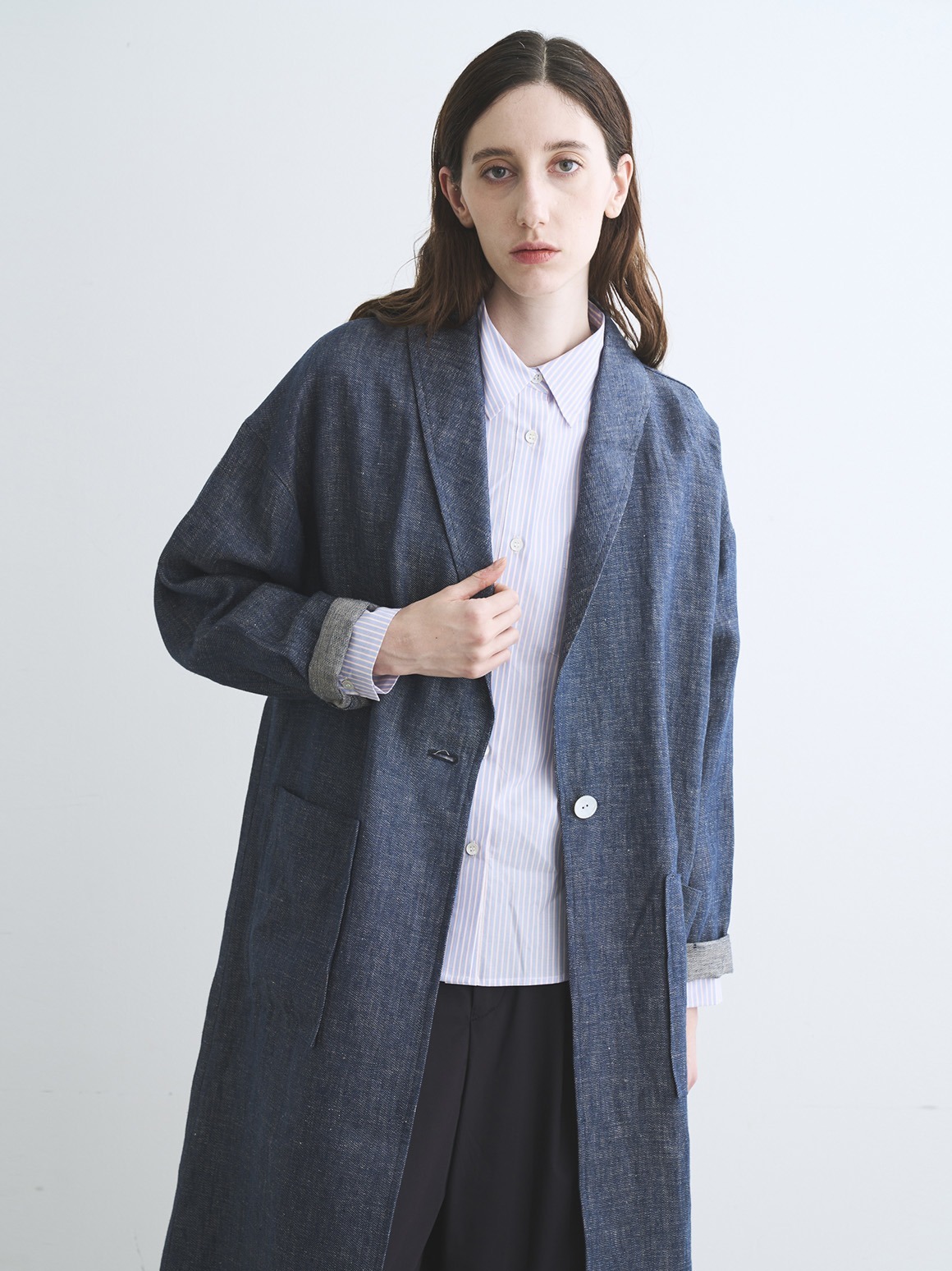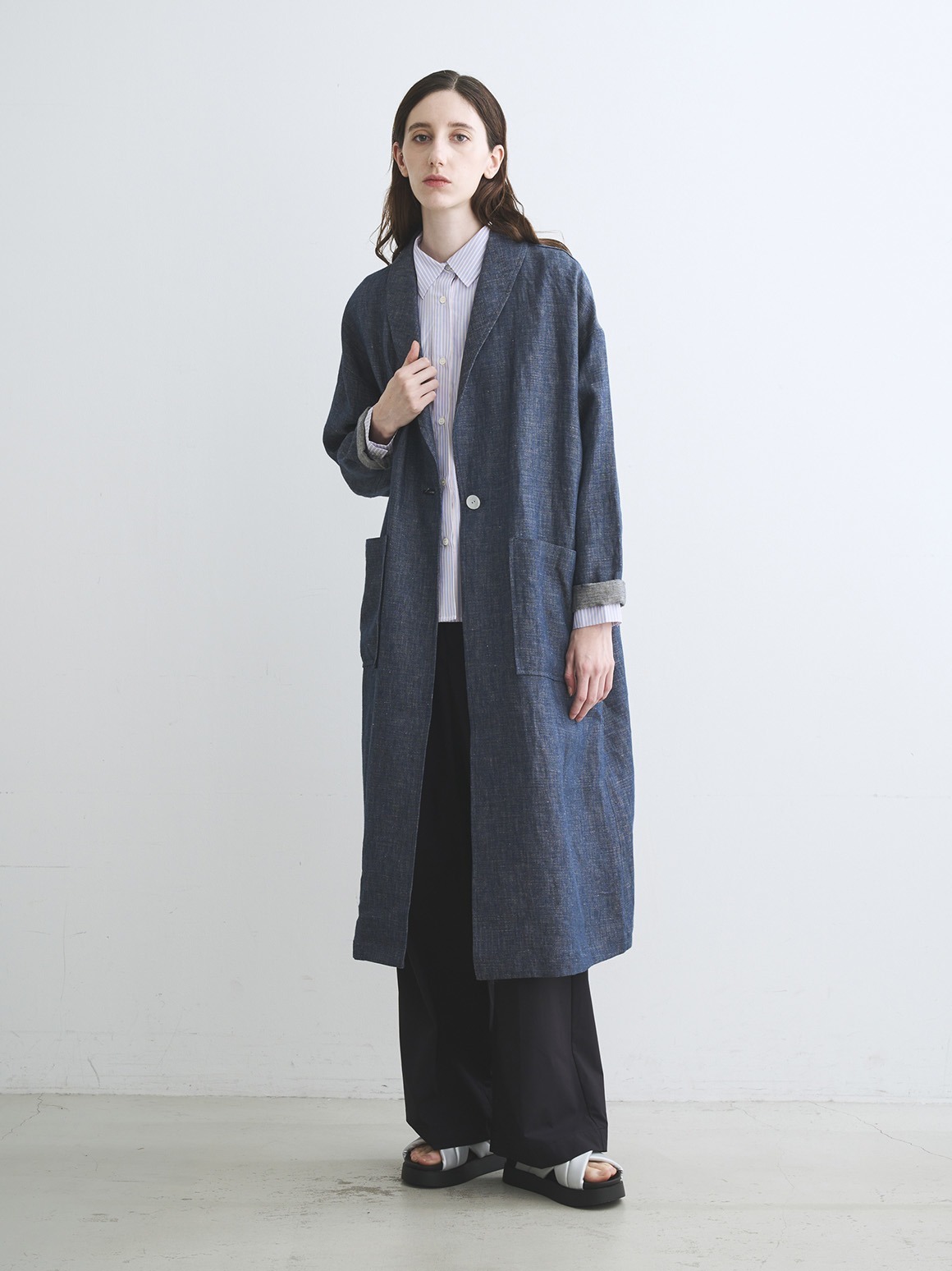 リネンのロングコートはこなれ感がありながら、がさつきを抑えたなめらかな生地で上質さを感じられる一枚。