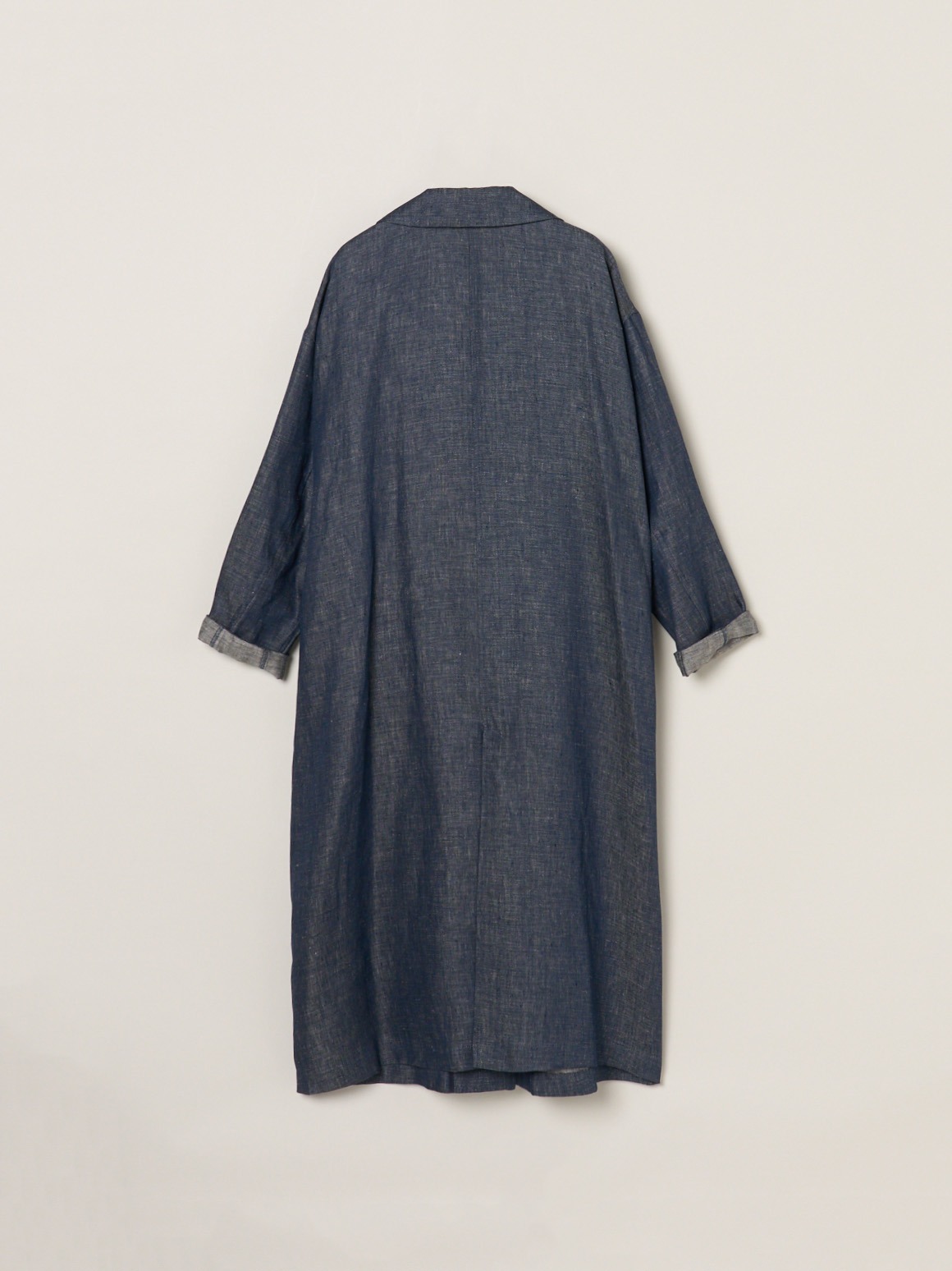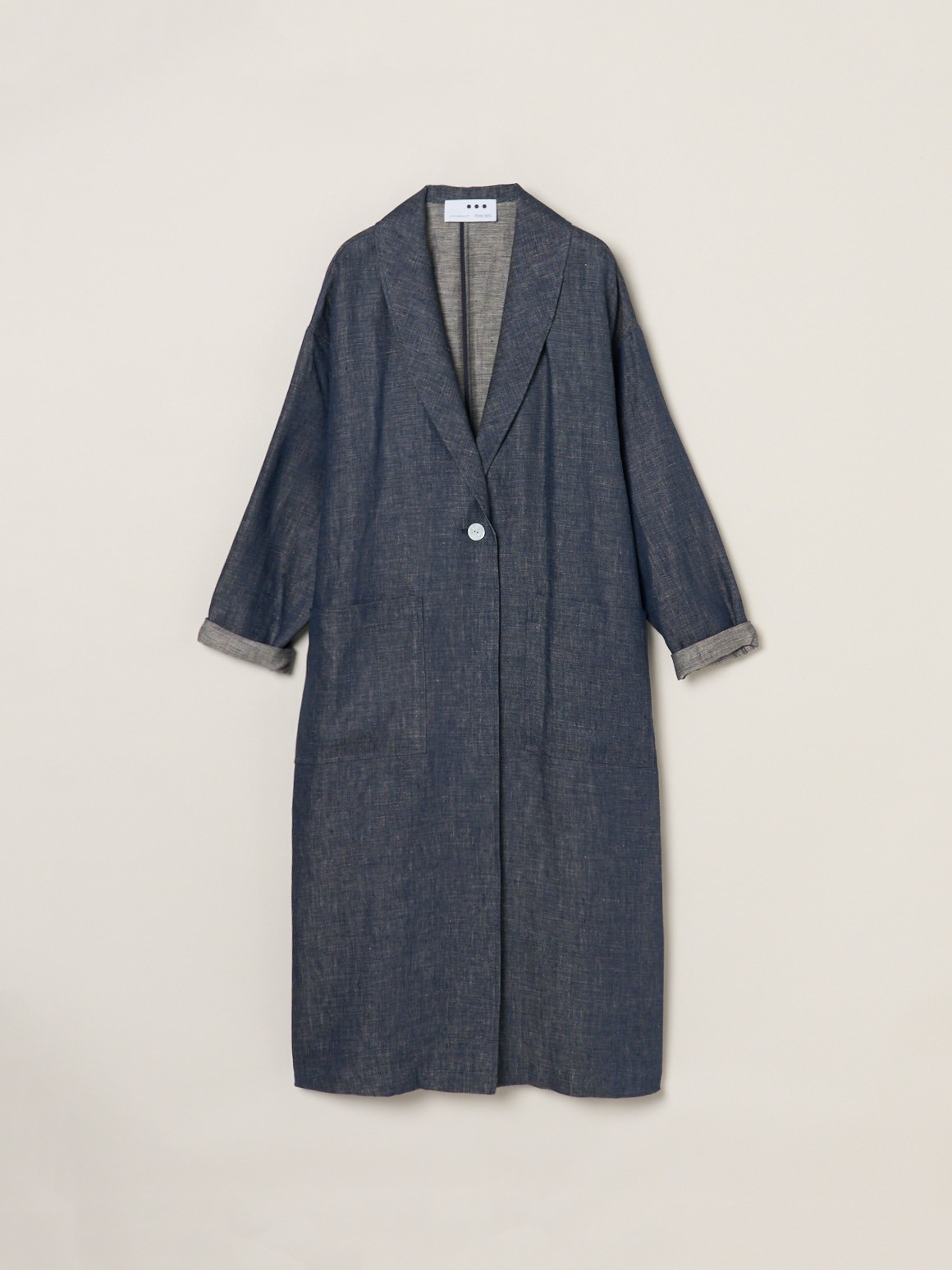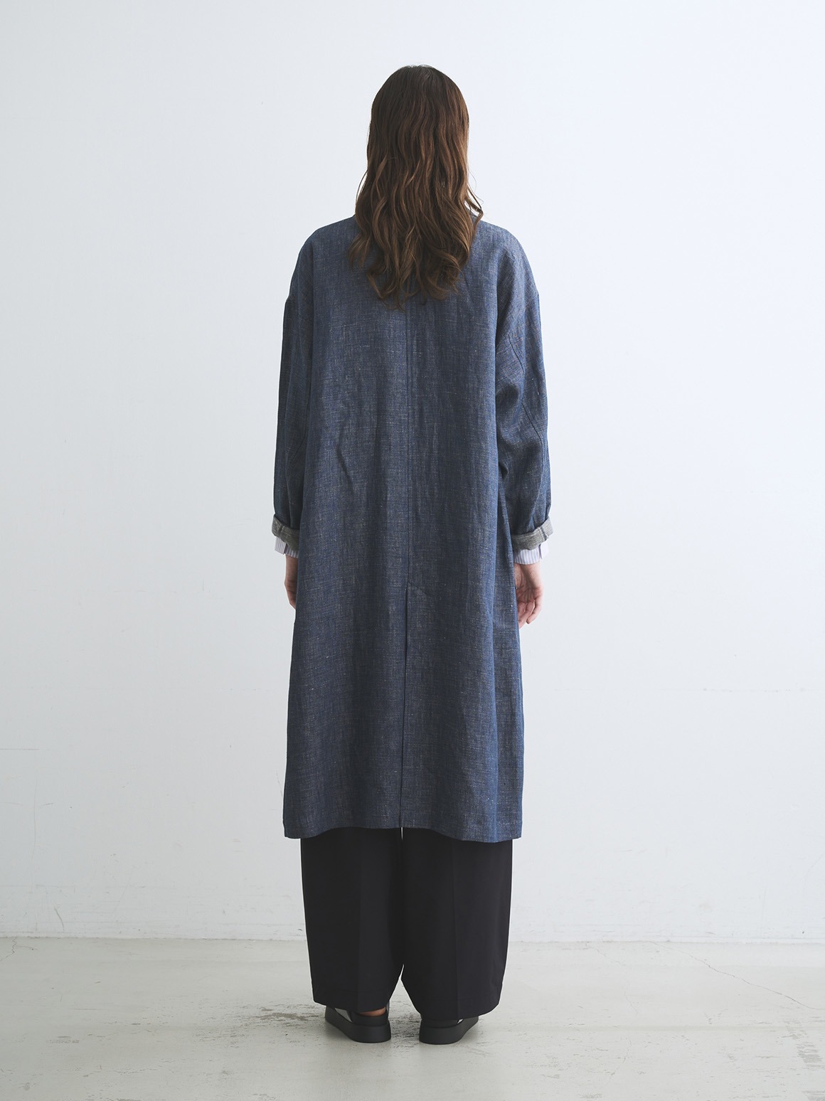 リネンのロングコートはこなれ感がありながら、がさつきを抑えたなめらかな生地で上質さを感じられる一枚。