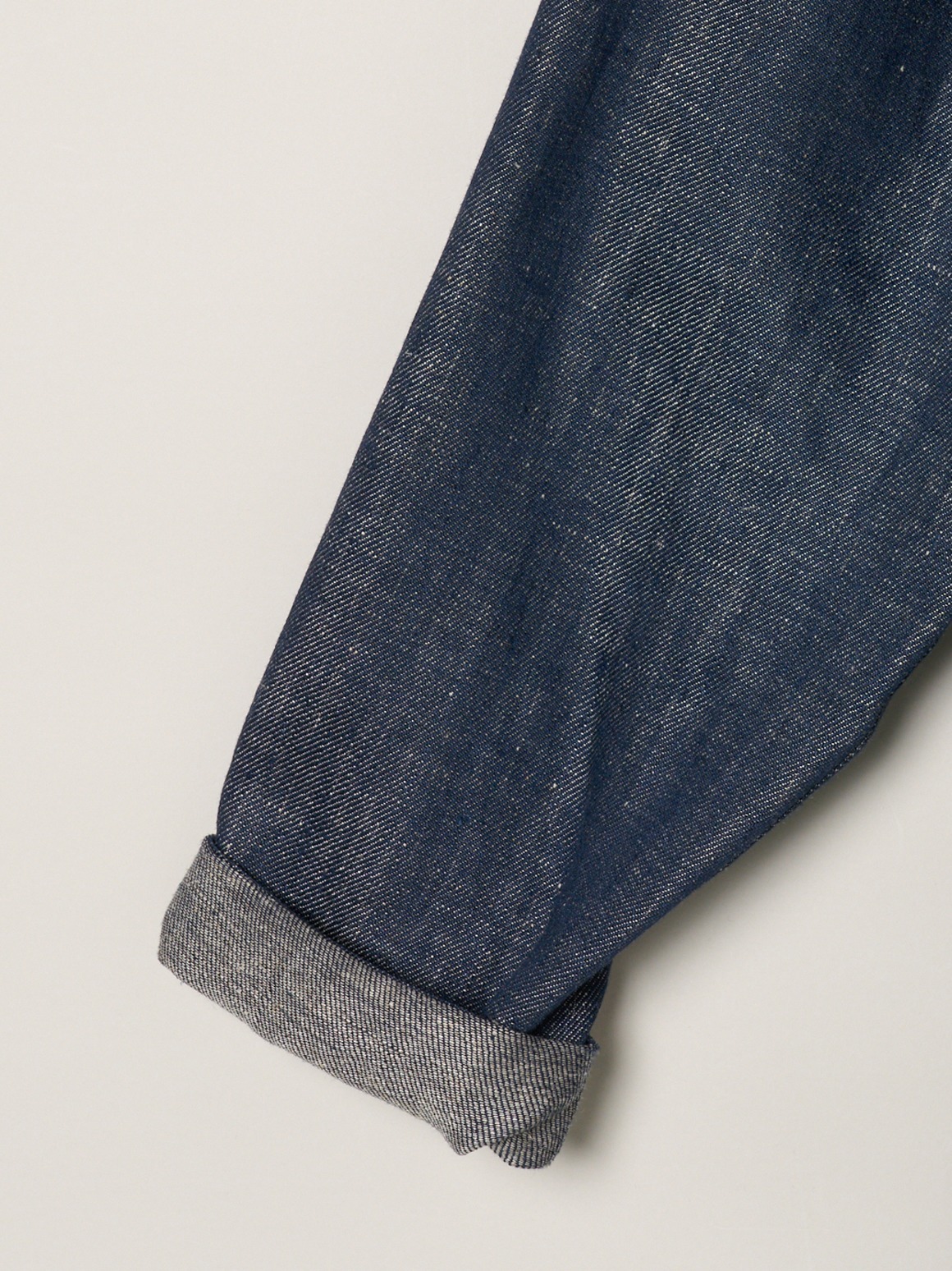 アウトポケットがポイントとなって存在感を放ち、シンプルさの中にニュアンスがオン。