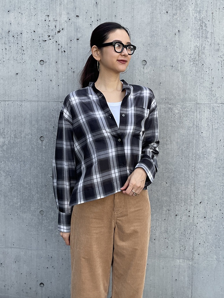 さらりとした肌離れの良い質感で、湿度の高い季節でも快適な着心地をキープ。ミニマルなバンドカラーが上品さを添え、ボタンを開けて羽織としても活躍します。