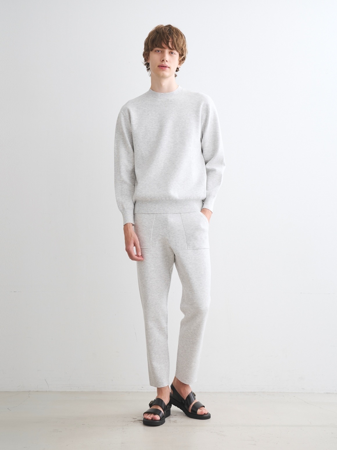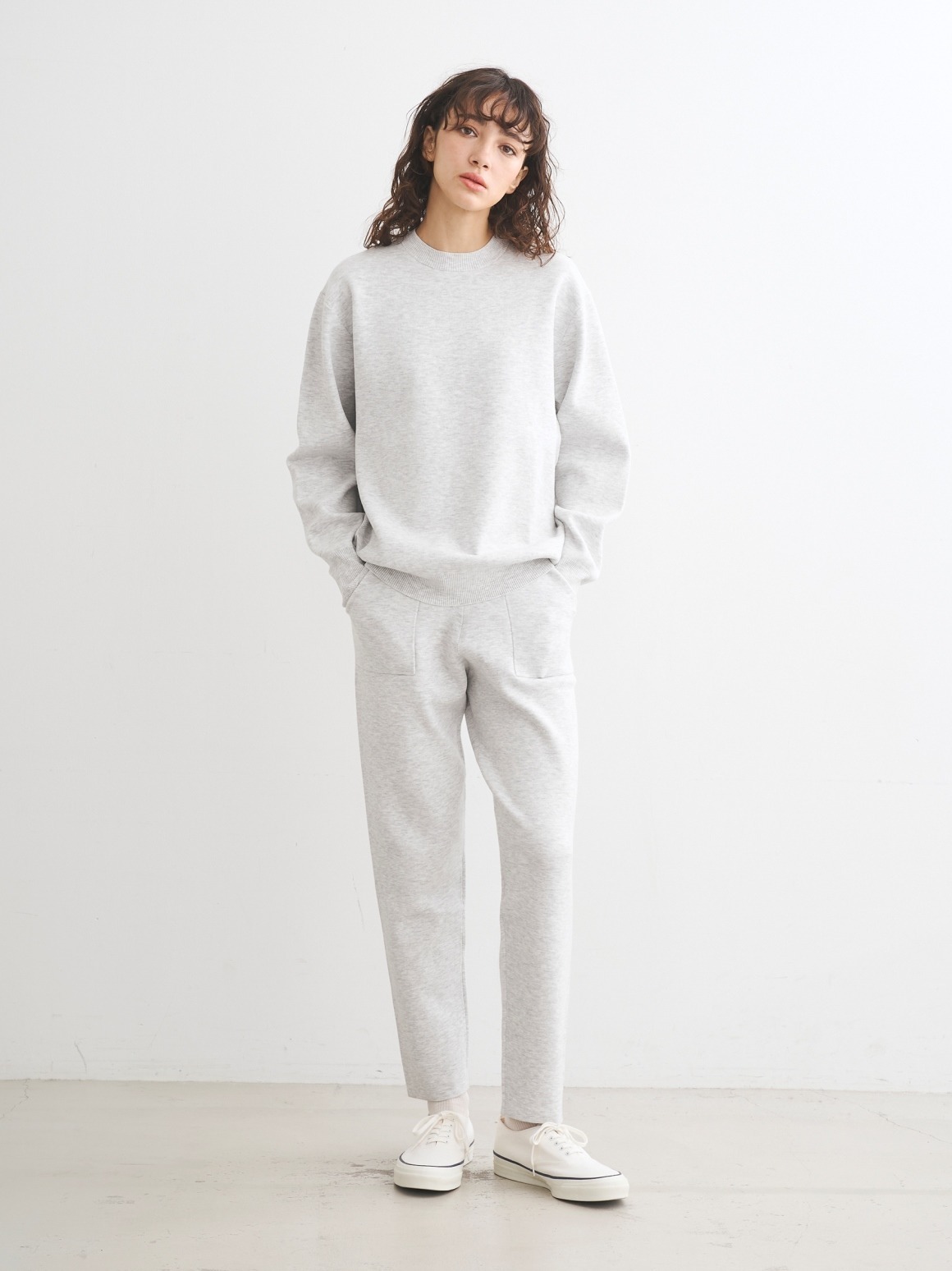 スウェットには出しづらい高級感があり、カジュアルでも大人らしくまとまります。しっとり、もっちりとした抜群の肌触りで、心から寛げるなめらかな着心地。