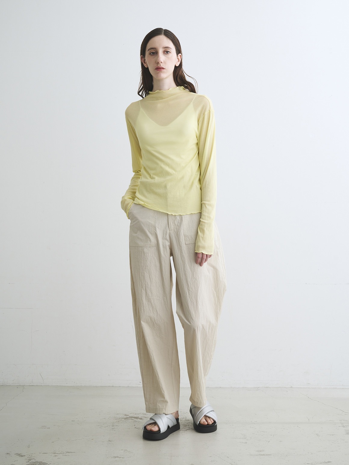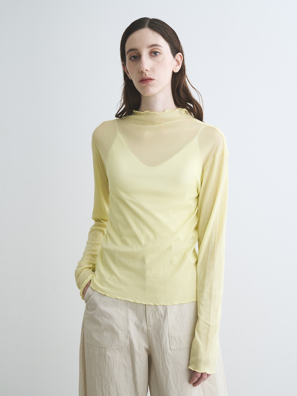 人気のソフトシースルーコットン素材のハイネックバージョン。