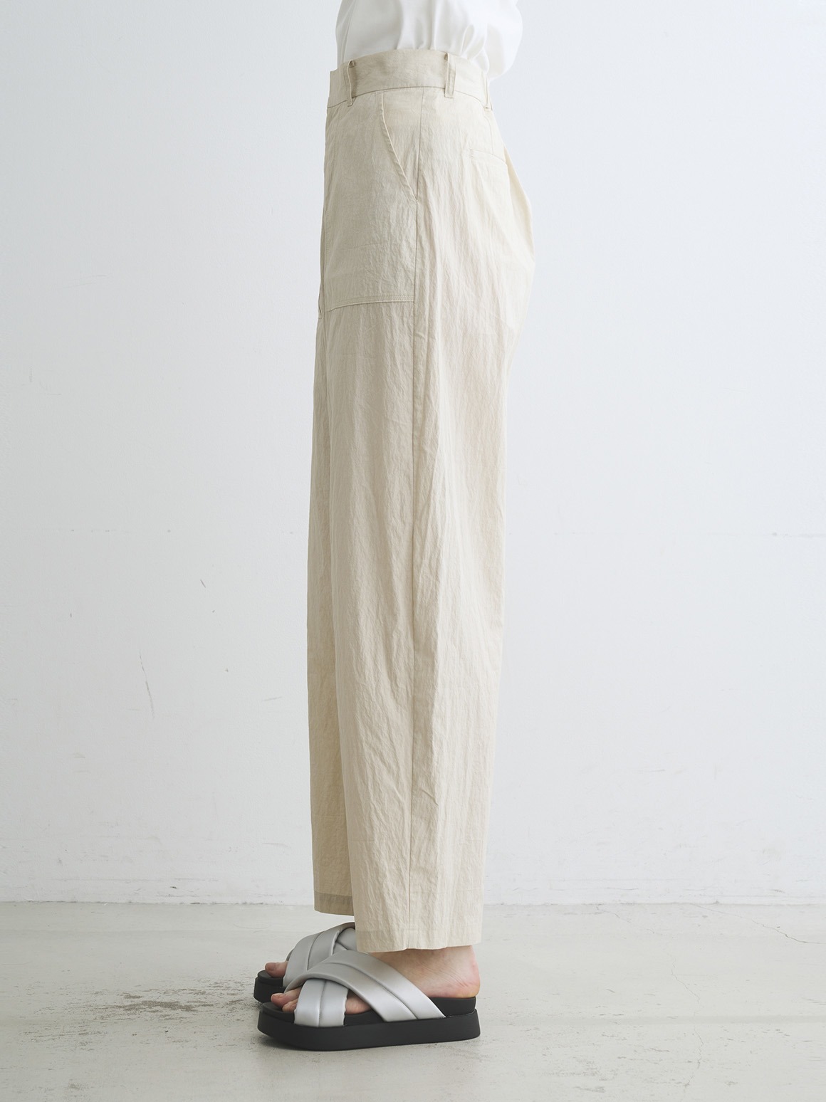 バランスの取れたシルエットのファティーグパンツは、単品ではもちろん、ジレやMA-1風ジャケットと組み合わせでも着用可能。