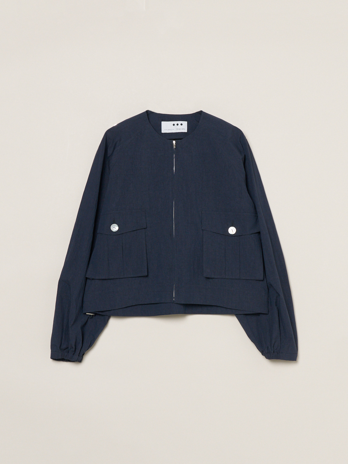 ジャケットはドローストリングで裾を絞れる旬のアイテム。短めの着丈も合わせやすい。同素材のパンツと合わせればセットアップに。さらに同素材にてトップスの展開もあるので3ピースで着こなすことも可能です。